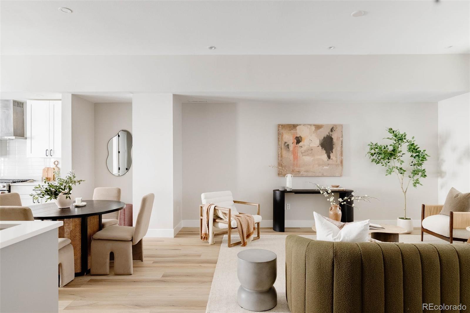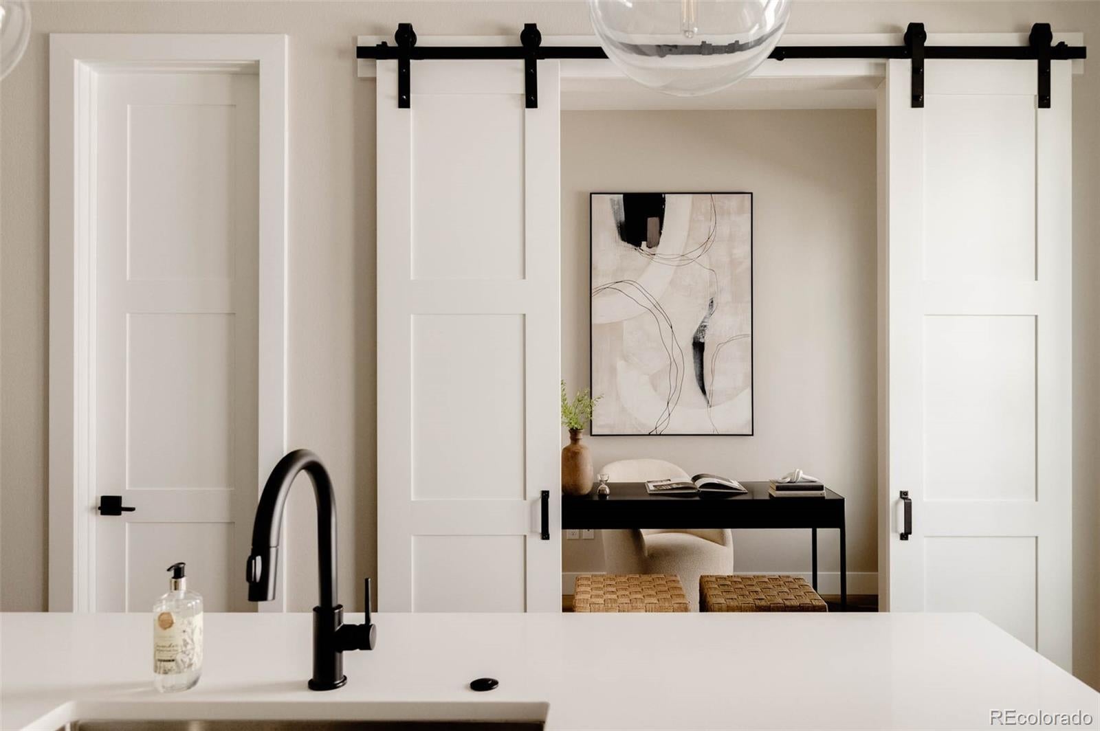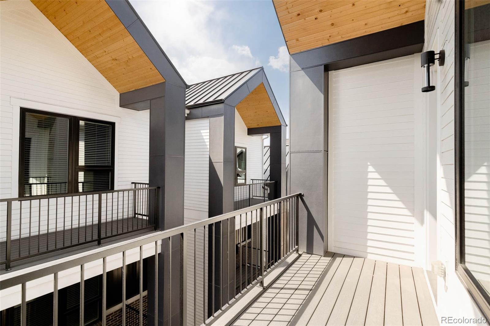 Discover the best of form and function at ALINE in Central Park - where striking design, thoughtful layout, and unbeatable walkability come together in one of Denver’s most dynamic neighborhoods. The eye-catching A-frame architecture makes a bold statement with its sleek black-and-white color scheme and warm wood accents for added charm. Inside the sought-after Birch 3 bedroom floor plan, every level is thoughtfully designed for style and flexibility. The entry level of this brand new home offers a private bedroom, full bath, and access to the attached two-car garage - perfect for guests, a home office, or workout space. Head upstairs to the bright and airy main level, where natural light floods the open-concept kitchen, dining, and living areas. The kitchen impresses with quartz countertops, a large center island, designer tile backsplash, and high-end stainless appliances. Love to entertain? You’ll appreciate the custom wet bar with floating white oak shelves, sink, and space for a wine fridge just off the dining area. A sliding barn door conceals a bonus office or flex space, ideal for working from home or getting creative. The adjacent living room opens to a sunny deck—perfect for morning coffee or evening cocktails. Contemporary finishes like matte black railings add modern edge throughout the home. On the third floor, you’ll find side-by-side laundry and two ensuite bedrooms—each with walk-in closets and bathrooms featuring elevated finishes. The third-floor balcony adds another private outdoor retreat. Live just steps from the light rail (16 minutes to downtown, 22 to DIA), and a short stroll to Sprouts, 29th Ave Town Center, weekend farmers markets, concerts, and Central Park’s endless trails and green spaces. With low-maintenance living and exceptional design, this is lock-and-leave living at its best.