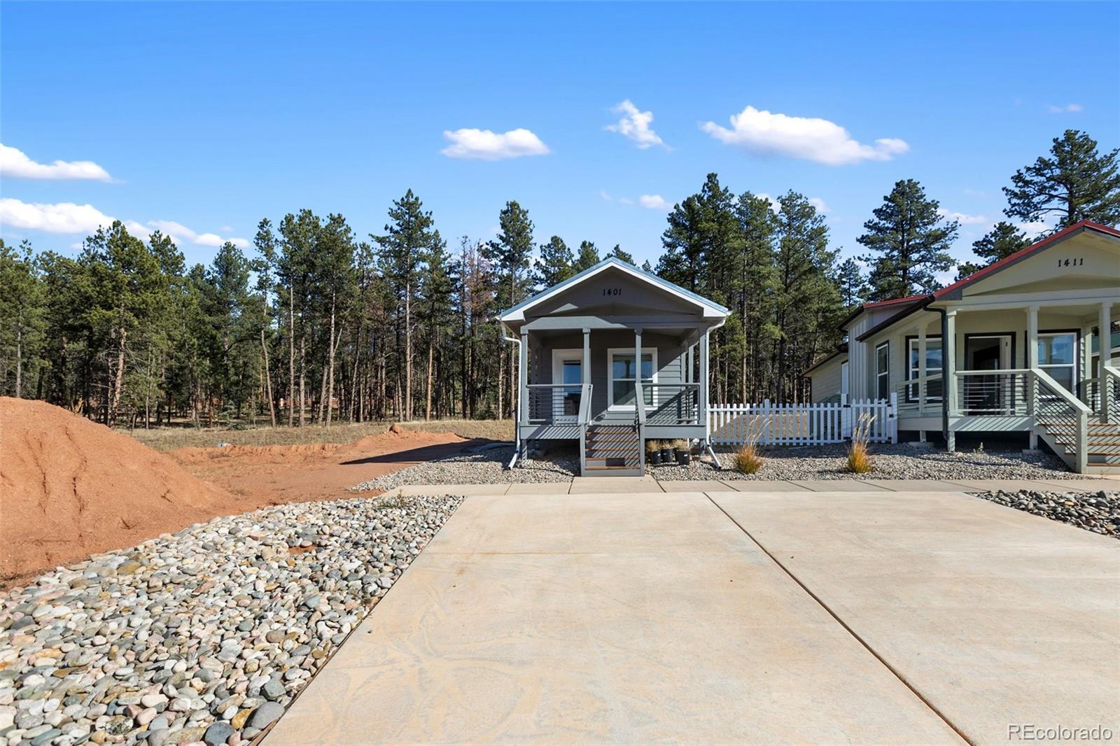 New Tiny Home in Woodland Park – Mountain Living Made Simple! Brand-new 500 sq. ft. IBC modular home located in a quiet, well-planned community just five minutes from downtown Woodland Park. This thoughtfully designed home features an open-concept kitchen, living room, bedroom, and full bath, plus a 10x12 composite deck perfect for relaxing or entertaining. Beneath the home is a 500 sq. ft. conditioned storage area, 5ft ceiling to easily walk in and a concrete floor and secure outside entrance—ideal for gear, hobbies, or extra space. Two off-street parking spaces are included. The monthly lot lease covers snow removal, and trash service, making this an easy, low-maintenance lifestyle. Enjoy direct access to a nearby walking and biking path, a 24-hour fitness center, and a golf course within walking distance. Perfect for downsizing, a summer getaway, or a peaceful full-time retreat surrounded by the beauty of the mountains. See agent remarks for lot fee's.
