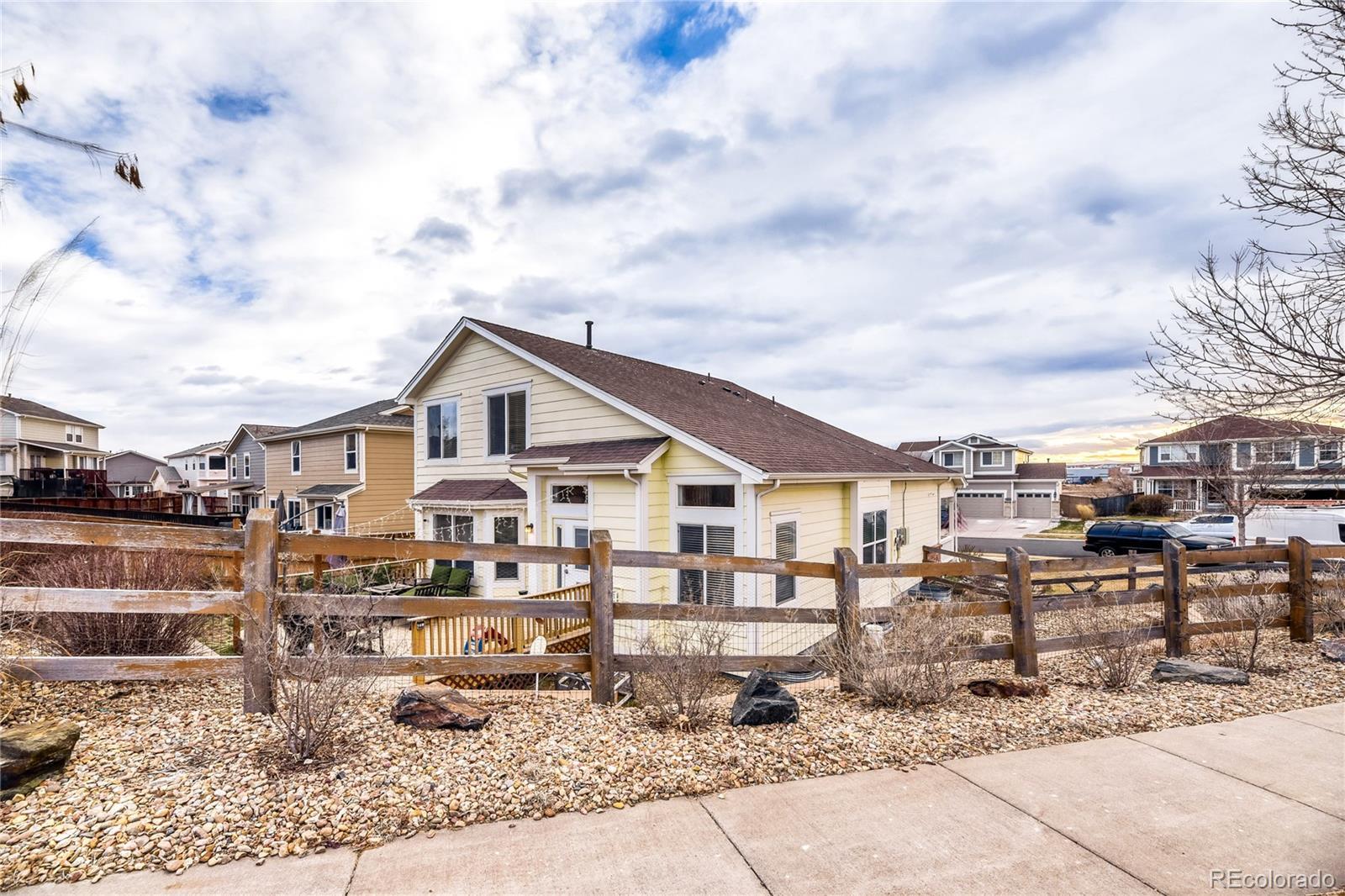 SELLER OFFERING $2500 ALLOWANCE FOR CARPET, KITCHEN, WHATEVER YOU WANT!! Main Floor Primary Bed & Bath, Main floor Laundry, 3 Car Garage, Open Floorplan, Largest Lot in the Neighborhood, Pool, Volleyball, Playground, Trails, this one has it all!! Welcome to this stunning corner-lot home— a 3-bed, 3-bath residence boasting comfort, & endless potential! Step inside to discover vaulted ceilings & abundant natural light illuminating the main level, featuring sleek LVP flooring that flows effortlessly throughout. The inviting layout includes a main-floor primary suite complete with a 5 piece bath & newly updated sinks. The living spaces create an ideal environment for both everyday living & entertaining. The heart of the home offers space to grow, & the basement presents a fantastic opportunity to customize & expand your living area exactly the way you’ve always envisioned. Outdoors, enjoy your fully fenced corner lot with a relaxing back deck perfect for morning coffee or summer BBQs. Across the street, access to the local trail system invites you to walk, jog, or bike while taking in Colorado’s beautiful open skies. Other features include a 3-car garage with garage heater, new furnace & AC, solar panels — every detail thoughtfully upgraded for comfort & convenience. Nestled in Commerce City, this home offers easy access to a variety of parks and outdoor spaces including Sand Creek Regional Greenway — a scenic network of trails connecting to the South Platte River Greenway — & nearby parks with athletic fields and recreational amenities. Minutes away you’ll find local destinations such as Dick’s Sporting Goods Park, the Shops at Northfield Stapleton, & the Rocky Mountain Arsenal National Wildlife Refuge — a remarkable urban nature preserve with wildlife viewing & miles of trails. With convenient access to commuter routes, excellent outdoor recreation, & amenities for every lifestyle, this home is perfectly positioned for those seeking Colorado living at its best.