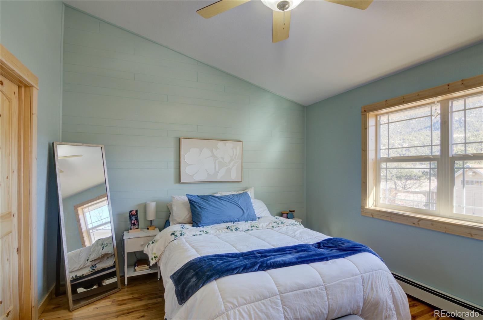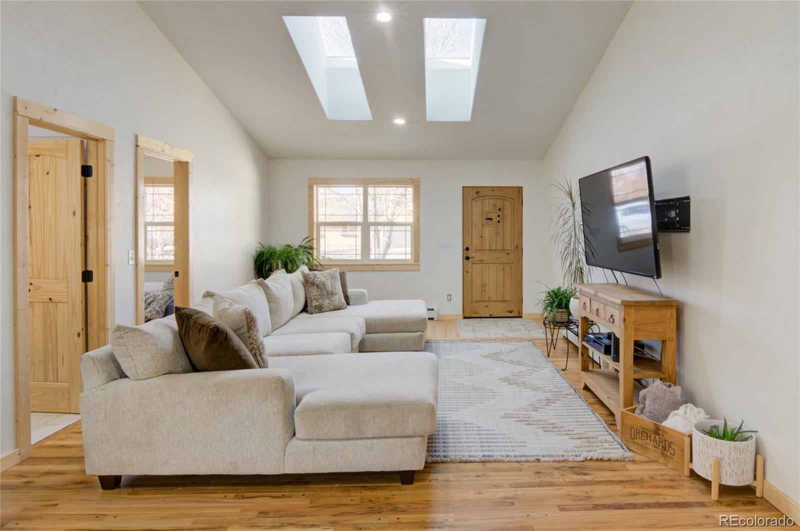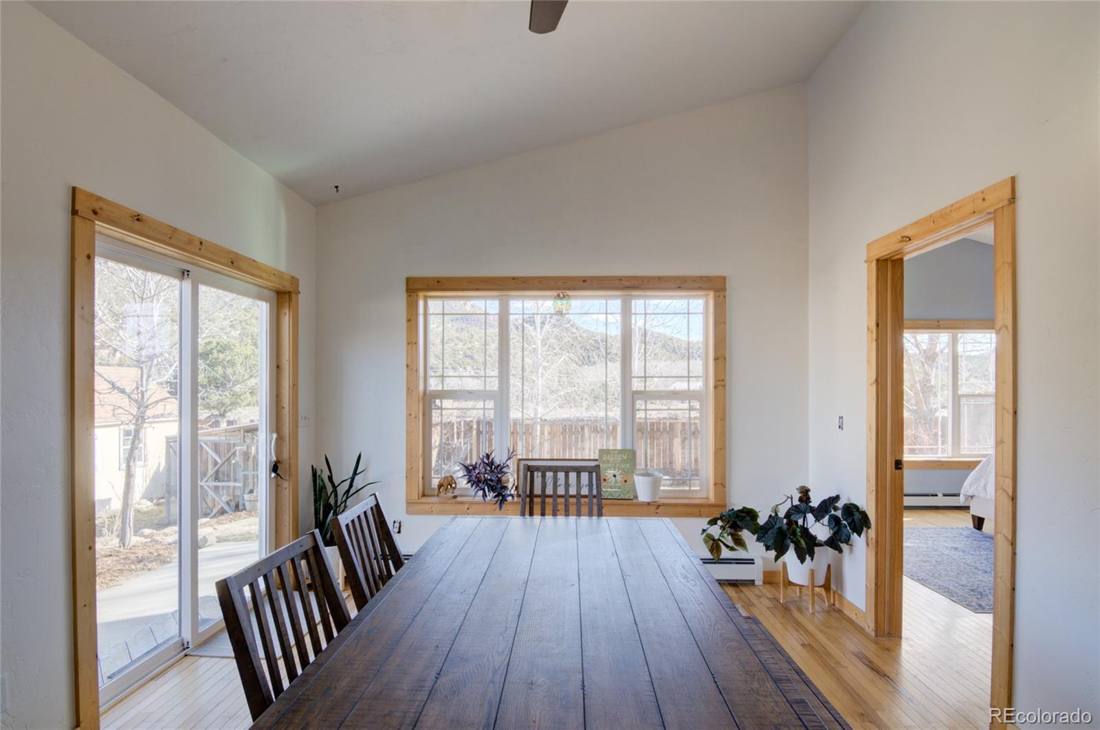 Light, bright, and wonderfully spacious! This beautifully remodeled 3-bedroom, 3-bathroom home features a thoughtful addition that includes a generous dining/sunroom with a cozy wood-burning stove, creating an inviting space for everyday living and entertaining. From the moment you enter, you’ll appreciate the open-concept design, filled with natural light, warm hardwood floors, skylights, and an abundance of windows that enhance the cheerful, airy feel throughout. The kitchen is spectacular, offering newer appliances, a pot-filler faucet, double ovens with a smooth cooktop, and a dual farmhouse sink. Crisp white and soft gray tones flow seamlessly through the home, while large windows and glass doors in the dining area make mornings especially enjoyable. Each bedroom includes its own ensuite bathroom, providing comfort and privacy for everyone. A spacious utility room with slate tile offers ample storage for coats, shoes, and daily essentials. Step outside to a fully fenced backyard that feels like a private garden retreat. Mature trees, flowering bushes, wildflowers, and thoughtfully designed landscaping create a lush extension of the living space. A sprinkler system is in place, along with a chicken coop and fenced run, a storage shed for gardening tools, and flagstone walkways in both the front and backyard. Additional features include newer Pella windows, a basketball hoop, and a prime east-side location, just a short walk to the Arkansas River, South and East Main, and all the vibrant activities Buena Vista has to offer. Call today to schedule your private showing. This one is a true gem!
