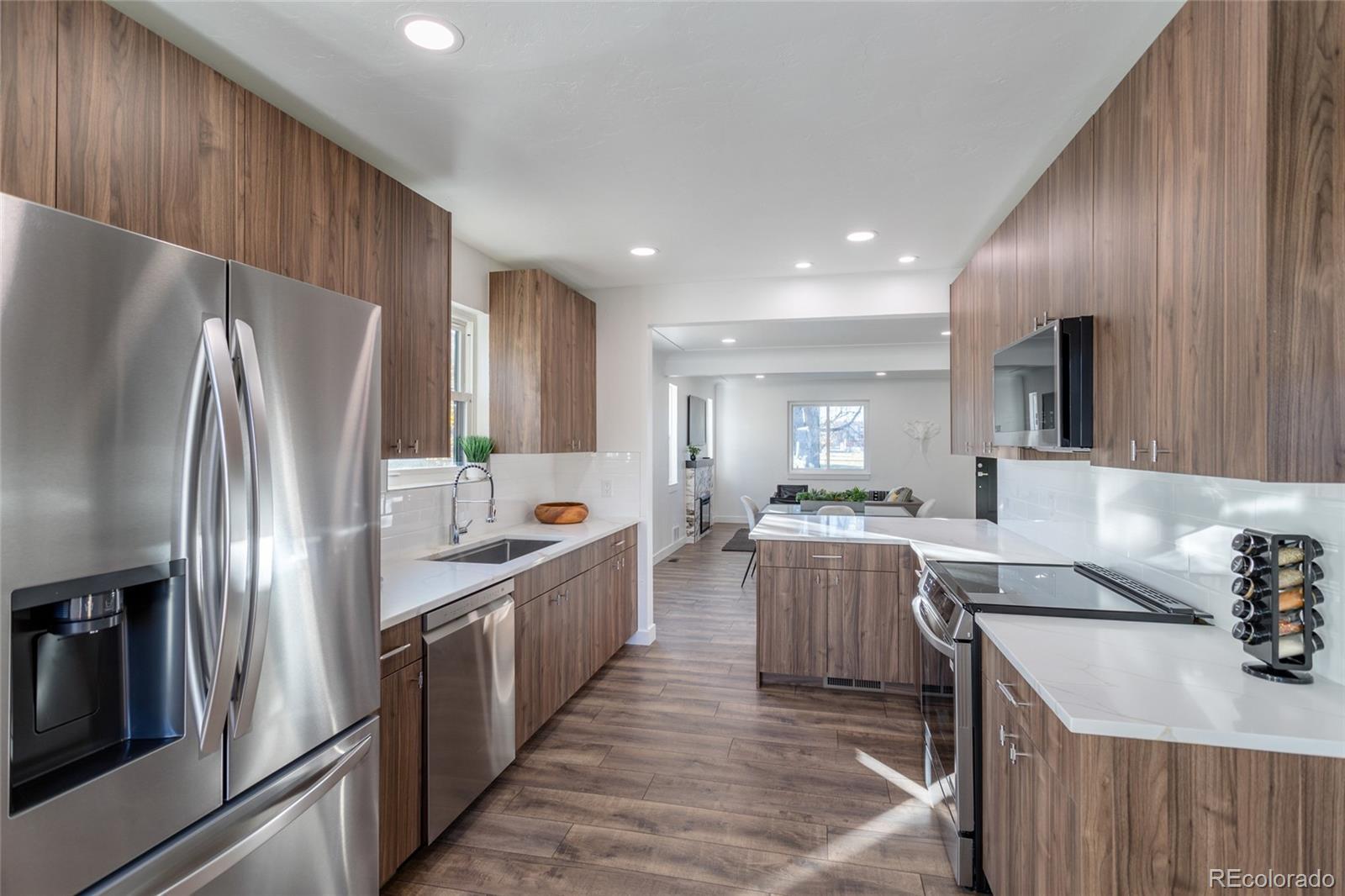 Welcome to 2518 Kearney Street — a stunning, fully remodeled home in South Park Hill - one of Denver’s most desirable neighborhoods! This house has the perfect walkable location with the Kearney Street neighborhood block featuring the renowned classic french Bistro Vendome, Oblio's Pizza, Lucina Eatery and Bar and Neighbor's Wine Bar, Scoop's ice cream, Cake Crumbs bakery, all just 2 blocks away. Every detail has been thoughtfully designed, blending modern style with comfort and functionality. This 4-bedroom, 3-bathroom home features an entirely new interior, with numerous exterior upgrades as well, including a new roof, new doors, HVAC, electrical, plumbing, air ducting, water heater, radon mitigation, windows — offering true peace of mind for years to come. Step inside to discover beautiful new flooring, fresh paint, and a designer kitchen with brand-new stainless steel appliances, wine refrigerator, sleek cabinetry, and stylish finishes. All bathrooms have been completely reimagined with modern tile work and fixtures. You’ll love the large backyard with it's large secluded garden to the rear, new pergola - perfect for relaxing or entertaining, new sprinkler system, and a detached 2-car garage with a new extended concrete driveway for ample parking. The home sits on a generous lot with views of lush grass fields right out front, and offers plenty of room for gardening or outdoor gatherings.This turn-key home combines modern updates with classic Denver charm. All the hard work has been done—move in and enjoy your beautiful new home! And be sure to check out the hidden jem Kearney St. neighborhood just 2 walkable blocks to the south.