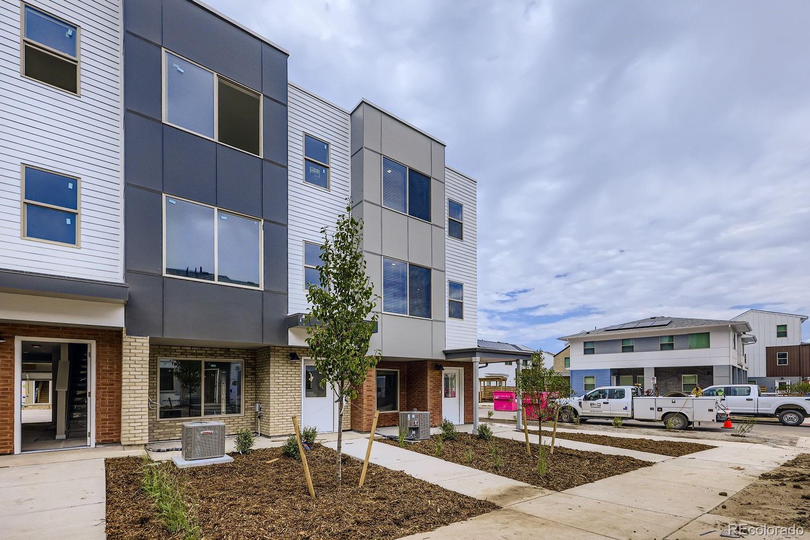 Wake up to mountain views and trailside living in this sun-filled end-unit townhome in the heart of GEOS. Perfectly positioned along the Ralston trail with unobstructed mountain vistas, this three-story home offers 3 bedrooms, 3.5 baths, and a versatile first-floor flex room ideal for a home office, gym, or guest space. The oversized one-car garage provides extra storage and everyday convenience with EV charging already installed. The main living level features an upgraded Chef’s kitchen with a 30” fume hood over a gas range, stainless steel Whirlpool appliances, sleek quartz countertops, and stylish LVP flooring - perfect for entertaining or everyday living. Each bedroom has its own full bath, including two private ensuites, offering comfort and privacy for everyone. As an end unit, this home is flooded with natural light throughout the day, creating a bright and inviting atmosphere. Enjoy low-maintenance living with premium finishes, stunning views, and direct trail access—all in one of GEOS’ most desirable locations. Ask about special financing when using preferred lender!