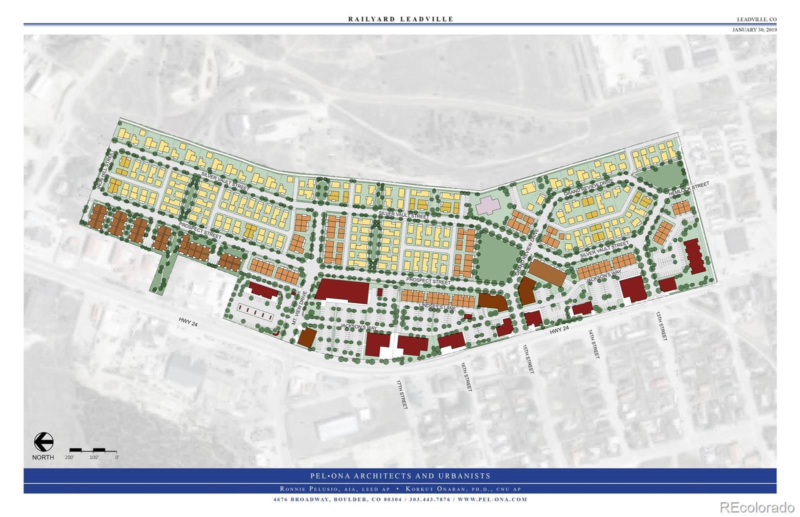 Block 2, Lot 3 – 23,917 sq. ft. (0.55 acres). With frontage on Hwy 24 and 13th Street, this is a great location for businesses looking to connect to the new Railyard Leadville neighborhood, as well as historic downtown Leadville! Plans show ample sidewalks that are large enough for outdoor seating, an excellent opportunity for a restaurant, retail shop and businesses that benefit from pedestrian activity. Multiple commercial, retail, mixed use, live-work possibilities in the new Railyard Leadville neighborhood! Please see www.RailyardLeadville.com for more information, photographs, and video. See other Railyard Leadville listings for additional Commercial Lots ranging in size from 12,040 sq. ft. to 66,513 sq. ft. Uses governed by the approved Planned Unit Development (PUD) and Final Plat. Commercial Lots subject to the Railyard Commercial Park Association. This listing is for the land only. Building footprints and supplements are provided for informational and illustrative purposes only.