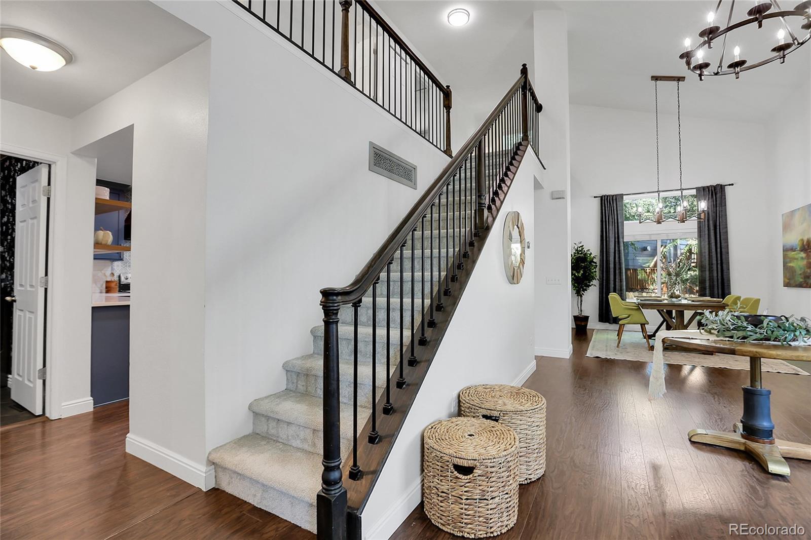 Step into this updated 5-bedroom, 4-bath home in the sought-after Clarke Farms neighborhood of Parker. Boasting vaulted ceilings and an open, light-filled layout, the home features new flooring throughout and a perfect balance of formal and casual living spaces. The kitchen showcases quartz countertops, stainless steel appliances and a seamless connection to the family room with a cozy gas fireplace and TV, while a separate dining area accommodates more formal gatherings. The main-level, fully remodeled laundry room adds convenience for modern living. Upstairs, four bedrooms feature new carpet and LVP hardwoods, including a primary suite with vaulted ceilings, a walk-in closet and five-piece bath. The finished basement is designed for entertaining and relaxation, complete with a media area, built-in bar, bedroom with Murphy bed and an updated ¾ bath. Recent upgrades include a new roof, gutters, deck and exterior paint, reducing some of the home maintenance many homes require after moving in. Just a mile north, you’ll find Clarke Farms’ fantastic community amenities, including a pool, tennis courts, multiple parks and scenic trails. Even closer, the Foxton Tot Lot offers a perfect neighborhood park designed just for the little ones. Located within the Douglas County school district and just minutes from downtown Parker for shopping, dining and recreation! This home offers the perfect blend of comfort, style and convenience.