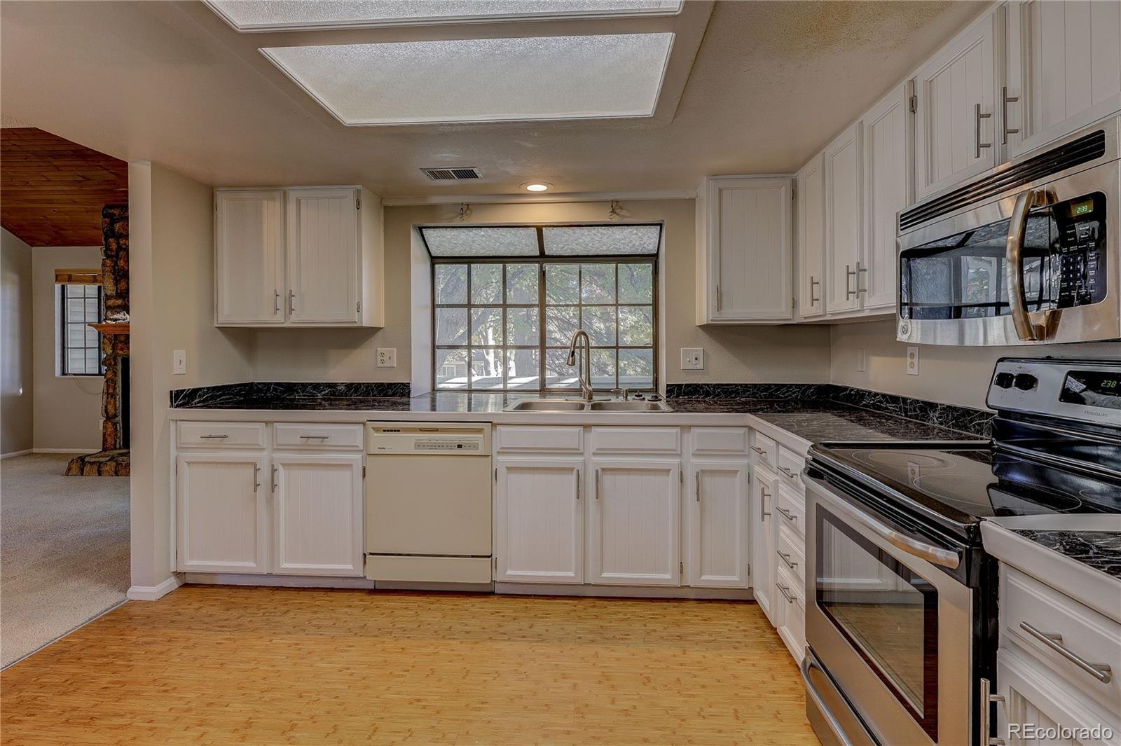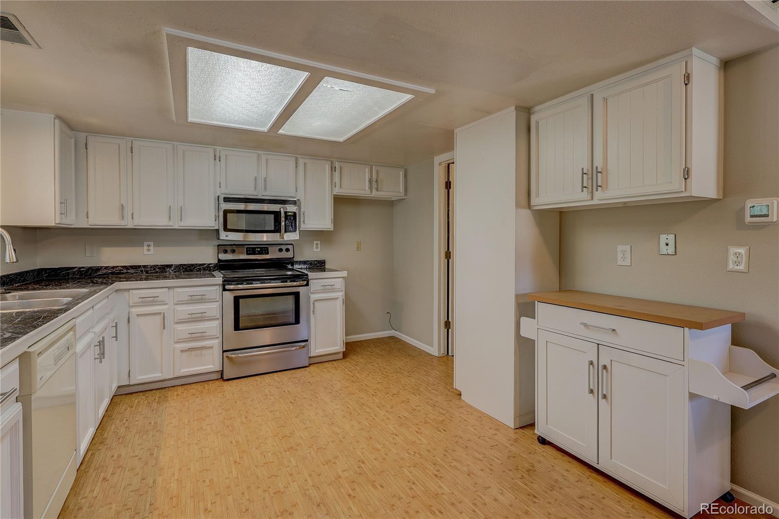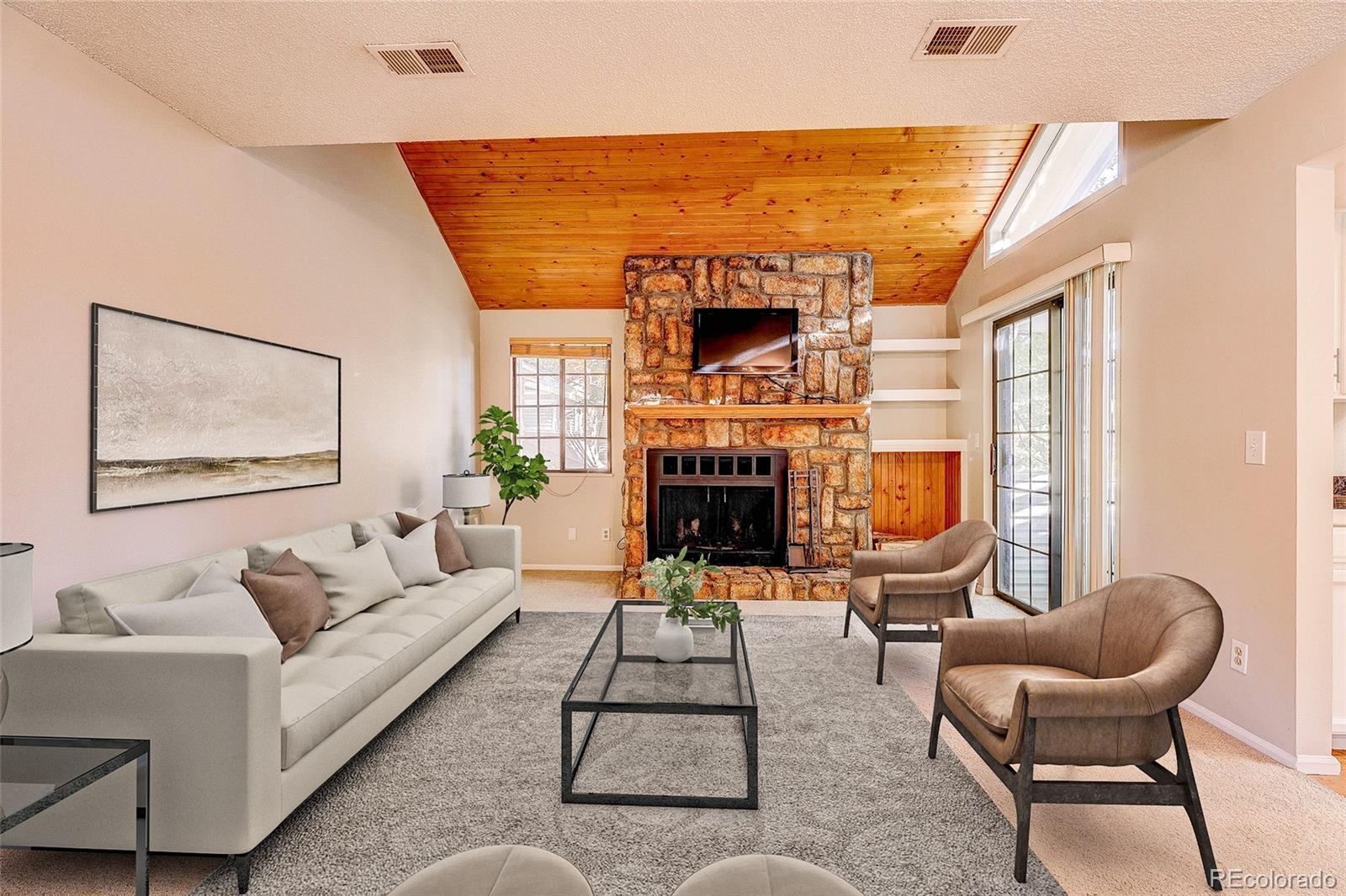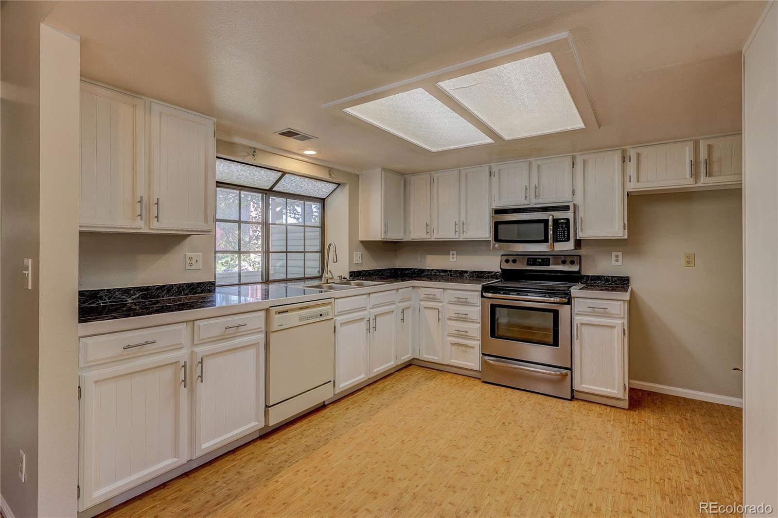 Welcome to 12622 E Warren Dr #E, a beautifully maintained end-unit condo in the sought-after Champagne at Willowridge community! This bright and open 2-bedroom, 2-bath home offers 1,282 sq ft of comfortable living with vaulted ceilings, skylights, and a cozy wood-burning fireplace that anchors the spacious family room. The layout flows seamlessly into a well-appointed kitchen, a pantry, and a convenient in-unit laundry area with washer and dryer included. The private primary suite features a large closet, a full bath with jetted soaking tub, and access to a quiet patio—perfect for morning coffee or evening relaxation. The secondary bedroom has its own updated bath with granite counters, ideal for guests or a home office. Recent updates include a newer furnace, hot water heater, and central A/C, ensuring year-round comfort. You’ll also appreciate the attached one-car garage, an additional reserved parking space, and plenty of guest parking nearby. Champagne at Willowridge residents enjoy a peaceful community with mature landscaping, a clubhouse, pool, and tennis courts. Conveniently located near I-225, Iliff, shopping, dining, parks, and light rail, this home offers easy access to everything you need. Stylish, move-in ready, and ideally located—this is the perfect place to call home!