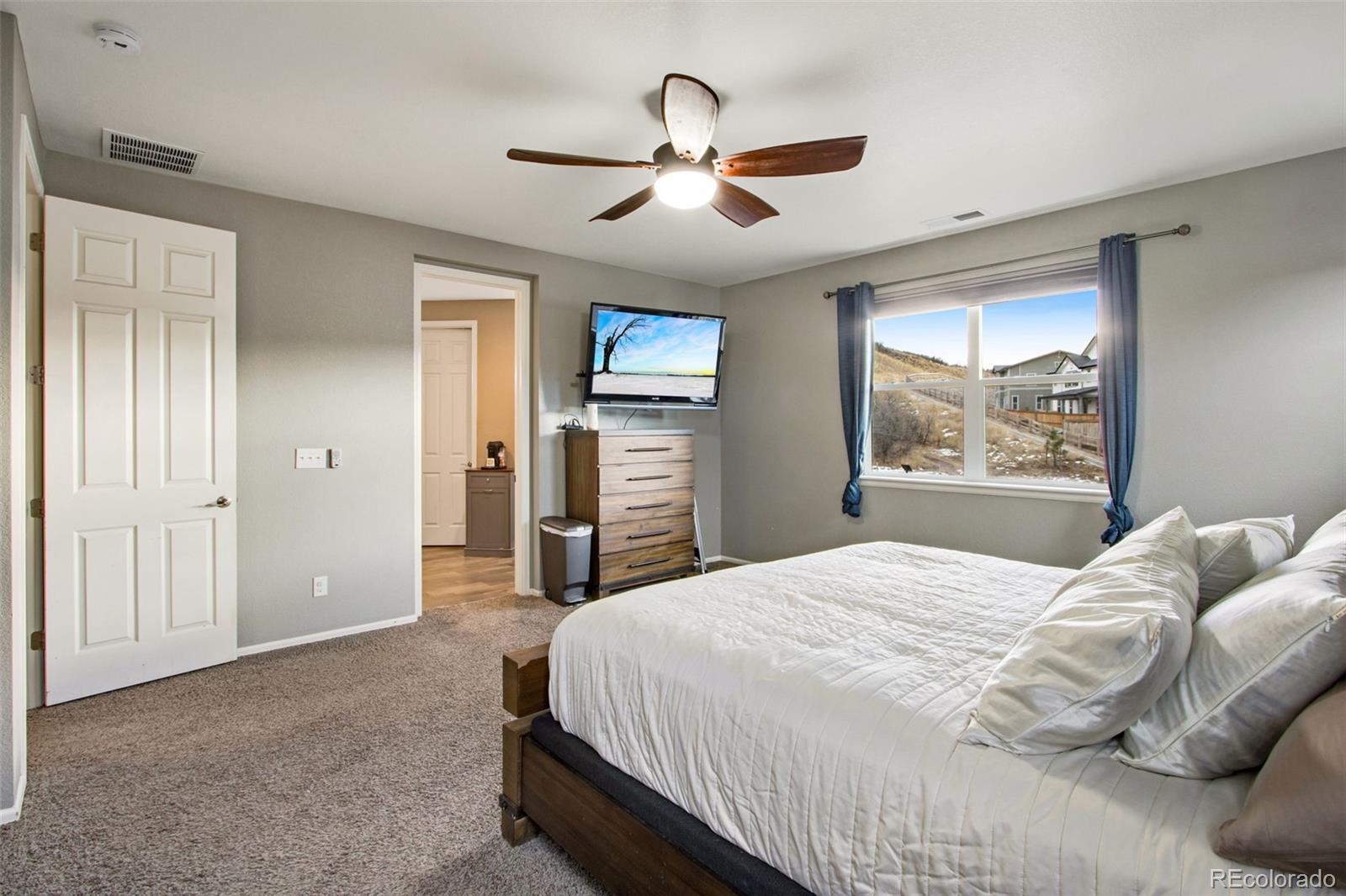 Welcome to this exceptional 4-bedroom home tucked into a charming, small community in Castle Rock, offering space, privacy, and stunning views! Thoughtfully designed, this home features a main-level bedroom and a dedicated office, perfect for guests, multigenerational living, or working from home. The open floor plan showcases a spacious family room and a beautiful kitchen with granite countertops, stainless steel gourmet appliances, and custom cabinetry with abundant storage. Just off the kitchen is a versatile den...ideal for a second office, homework space, or even a butler’s pantry extension. Upstairs, you’ll find three additional bedrooms, including a large primary suite with breathtaking views and a spa-like bathroom designed for relaxation. One of the true highlights of this home is the backyard...situated on one of the largest lots in the community and backing to open space. Enjoy quiet Colorado evenings on the covered deck with a two-sided fireplace, taking in the peaceful surroundings and scenic views. Ideally located near downtown Castle Rock, top-rated schools, trails, and parks—including Philip S. Miller Park, known for the Incline, zip line, and endless activities—this home offers the perfect blend of comfort, convenience, and Colorado lifestyle. Don’t miss the opportunity to call this remarkable property home!