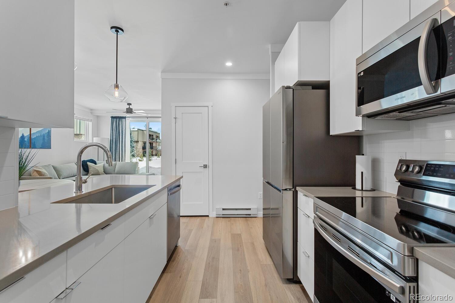 *Turnkey - full furnishings and hot tub included* This price is for 1/3 co-ownership interest. 100% ownership also available at $735,000. Welcome to mountain living at its finest. Proudly situated in the heart of Fraser, this mountain condo features coveted direct access to the heated and attached garage. Professionally and thoughtfully upgraded and designed. Fully furnished with high end furnishings and accents. The bright and open layout seamlessly connects the living, dining and kitchen areas, creating the perfect space for entertaining guests and family. Enjoy the mountain views while sitting in front of the upgraded fireplace with wood mantle. The family room includes a West Elm pullout queen sofa with chaise lounge. The fully equipped kitchen features quartz countertops, stainless appliances, subway tile and ample fully stocked cabinetry. Enjoy bar seating adjacent to the dining room, both featuring upgraded and statement light fixtures. The expansive primary suite adds convenience and potential with a breakfast bar with microwave and fridge and a private entrance. Adorned with a king size bed, West Elm night stands and dresser, a dinette set and a kitchenette. The large primary bathroom features quartz countertops, large closets and walk-in shower with subway tile surround. The second bedroom boasts a twin xl over king adult steel bunkbed, night stands and West Elm console. All rooms offer smart TVs, duvets and covers, pillows and shams. Storage closets throughout including the laundry closet with stackable full size washer/dryer. The heated and attached garage has direct access to the unit and offers a ski rack and storage space. Additional features include window coverings, professionally painted with accent walls, artwork and accents. Just two minutes to the bus stop to Winter Park. Close to shopping, restaurants, breweries, ski areas, Grand Lake and much more. The setting offers incredible views of Colorado’s most majestic mountains.