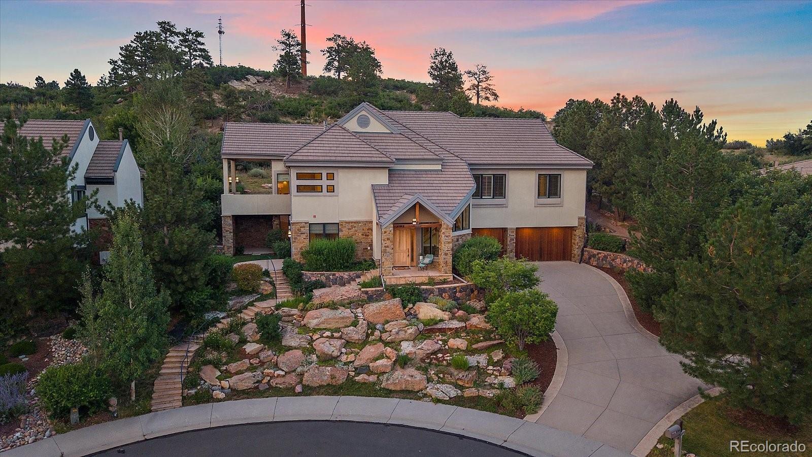 Nestled atop a scenic ridge in the heart of Castle Rock, this gorgeous custom home offers timeless elegance and breathtaking panoramic views of the Rocky Mountains. Boasting old-world charm with modern sophistication and updates, the estate features exquisite stonework and grand windows that flood the home with natural light and stunning views. Inside, soaring ceilings and updated finishes create a luxurious yet inviting ambiance. The expansive floor plan includes multiple living and entertaining spaces, a chef’s kitchen with Viking appliances, eat-in kitchen nook, 4 stunning en-suite bedrooms, 5 bathrooms, 4 fire places, a formal dining hall, a private wine cellar, craft or game room, and a large storage space. The primary suite is a true retreat, complete with a fireplace, spa-like bath, custom closet and a private terrace overlooking the mountains. Outside, meticulously landscaped gardens, a three car over-sized garage, a fire place and multiple balconies and patios that offer serene settings to enjoy Colorado’s natural beauty. With it's blend of custom craftsmanship and an unmatched location, this one-of-a-kind estate is a rare opportunity for refined mountain living right here in Timber Canyon, and just minutes from the fabulous shops and restaurants of downtown Castle Rock. This house is priced to sell and is ready to be seen. Set a showing today!