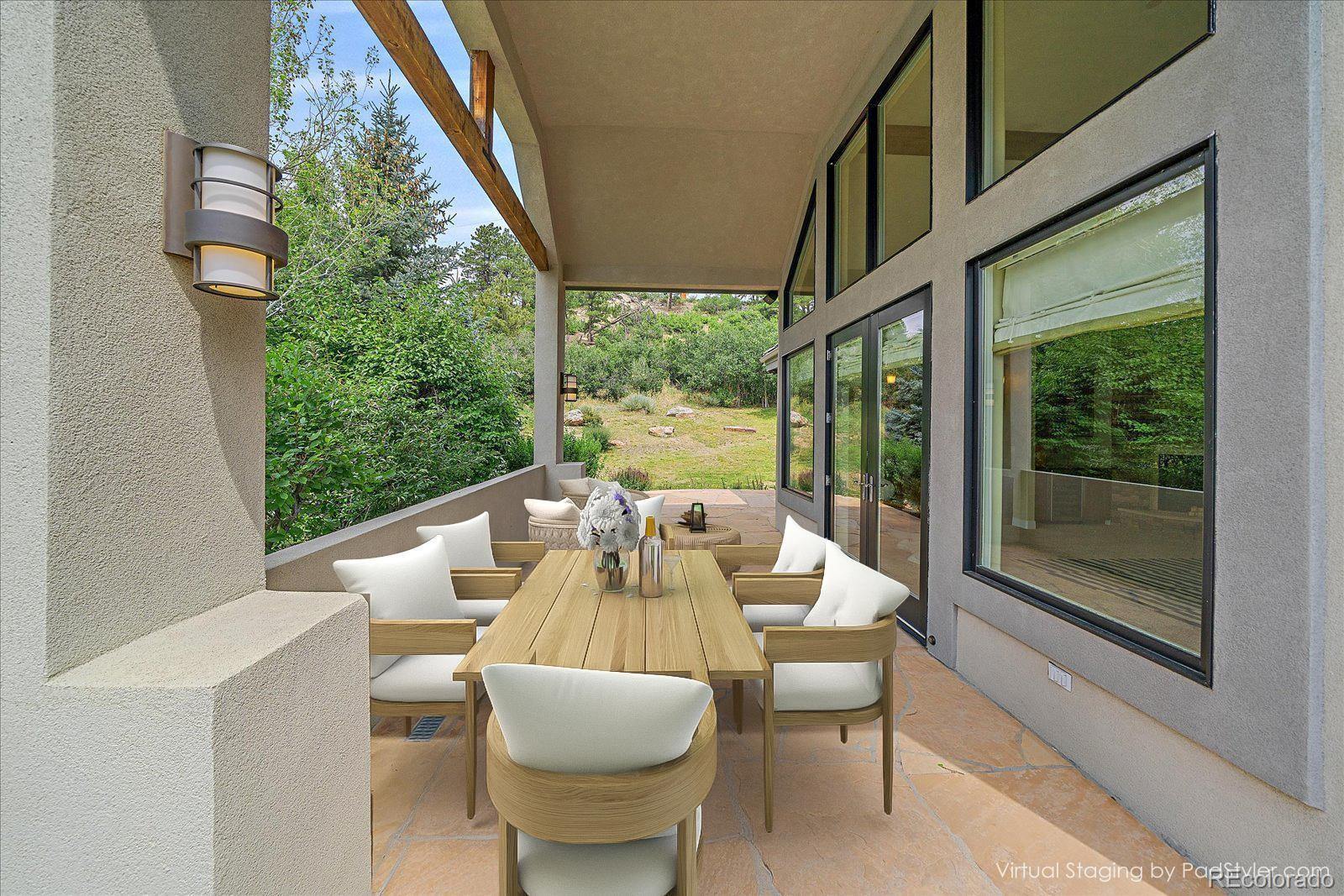 Nestled atop a scenic ridge in the heart of Castle Rock, this gorgeous custom home offers timeless elegance and breathtaking panoramic views of the Rocky Mountains. Boasting old-world charm with modern sophistication and updates, the estate features exquisite stonework and grand windows that flood the home with natural light and stunning views. Inside, soaring ceilings and updated finishes create a luxurious yet inviting ambiance. The expansive floor plan includes multiple living and entertaining spaces, a chef’s kitchen with Viking appliances, eat-in kitchen nook, 4 stunning en-suite bedrooms, 5 bathrooms, 4 fire places, a formal dining hall, a private wine cellar, craft or game room, a large storage space and an elevator. The primary suite is a true retreat, complete with a fireplace, spa-like bath, custom closet and a private terrace overlooking the mountains. Outside, meticulously landscaped gardens, a three car over-sized garage, a fire place and multiple balconies and patios that offer serene settings to enjoy Colorado’s natural beauty. With it's blend of custom craftsmanship and an unmatched location, this one-of-a-kind estate is a rare opportunity for refined mountain living right here in Timber Canyon, and just minutes from the fabulous shops and restaurants of downtown Castle Rock. This house is priced to sell and is ready to be seen. Set a showing today!