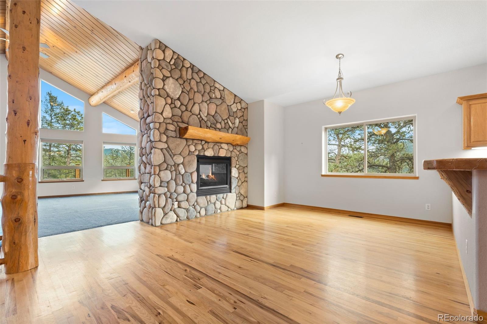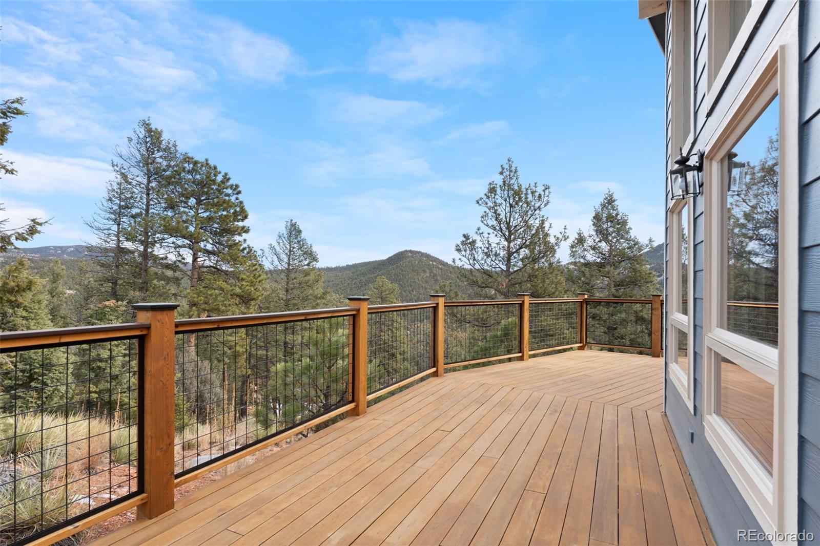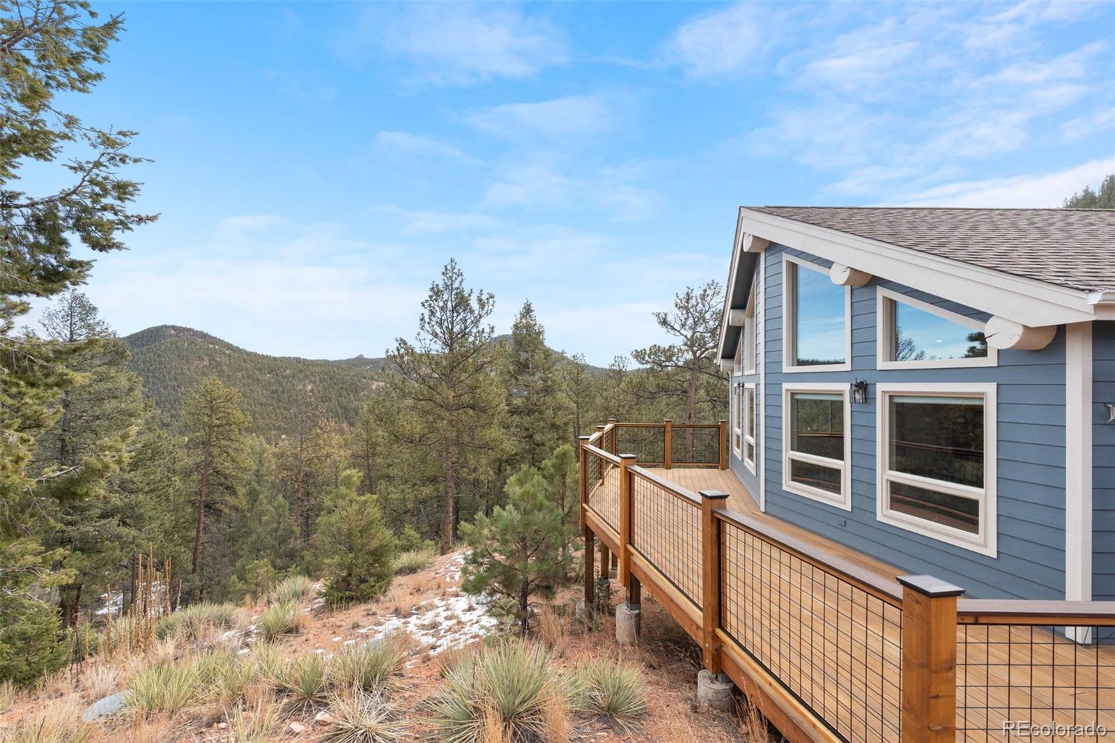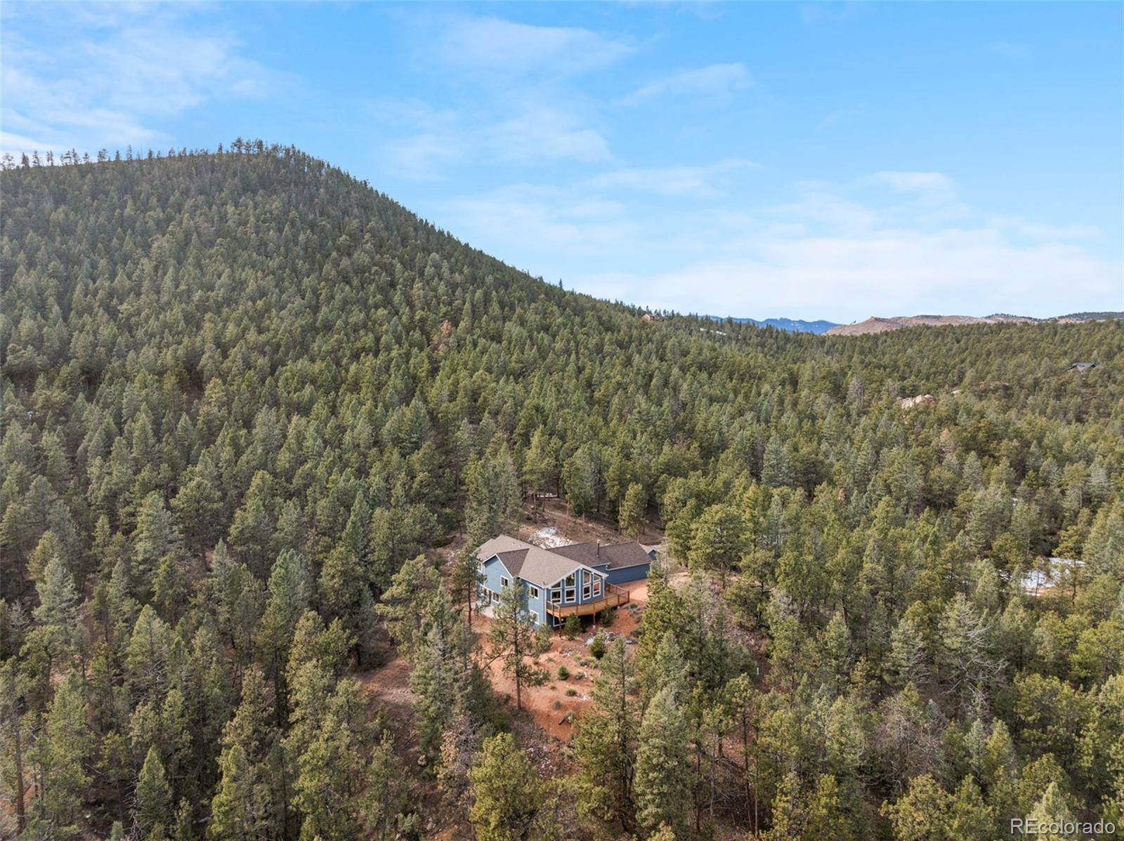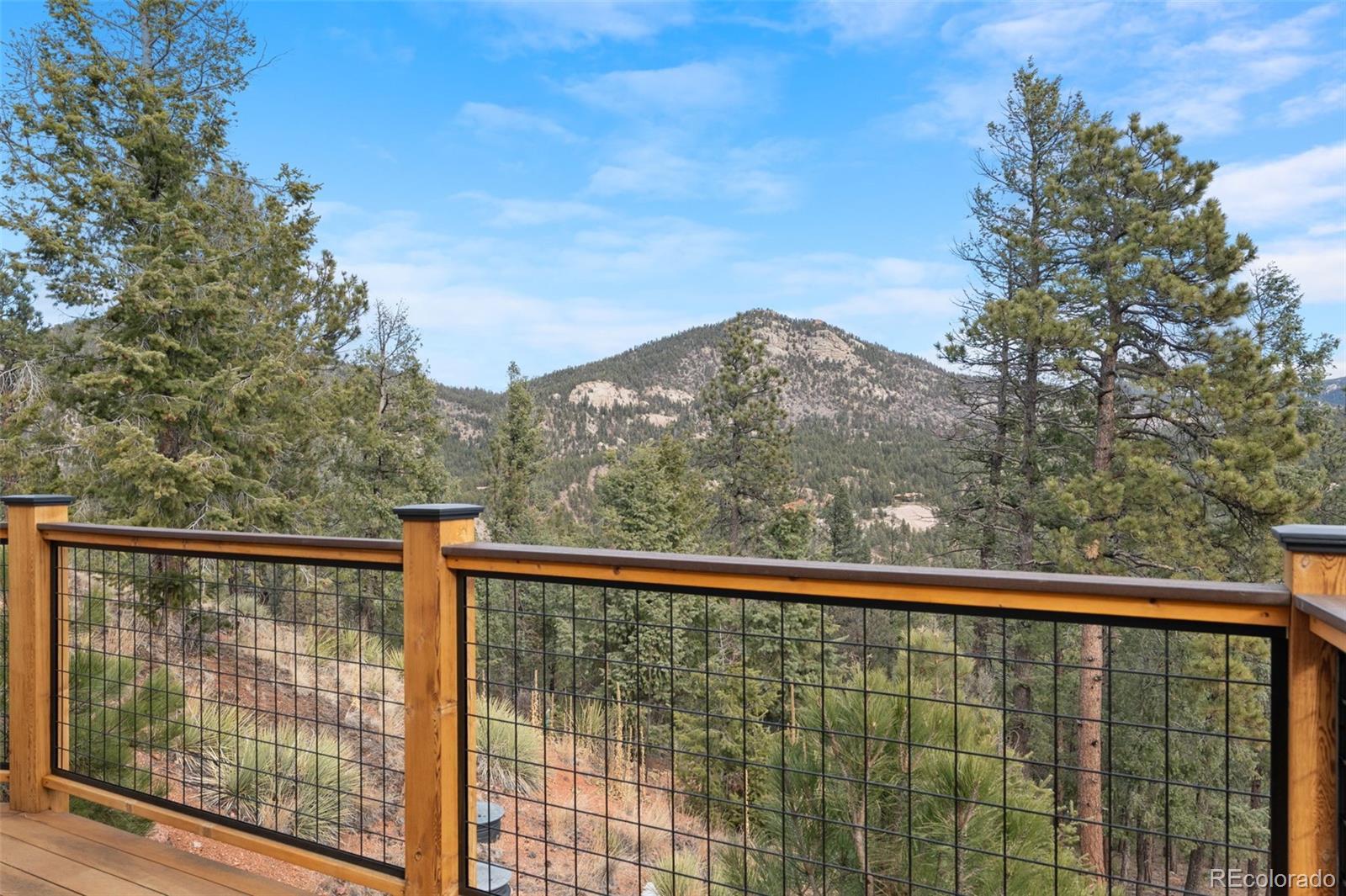 Come home to your own private, secluded mountain retreat on a sweeping 35-ACRE parcel in beautiful Pine. Updated and move-in ready, this mountain contemporary home captures stunning mountain views from the oversized, sunny deck & expansive floor-to-ceiling windows. This is true Colorado living with unrestricted hunting, endless hiking, and backcountry recreation on your private 35 acres. Open floor plan with a vaulted great room showcasing big hickory timber beams, abundant natural light & 2 fireplaces, creating a warm yet dramatic gathering space. Enjoy the ease of main-level living, w/ the primary suite, kitchen & great room all located on one floor. Gently rolling sloped parcel offers exceptional privacy, while the flat, sunny driveway entrance allows for easy year-round access. Step from the walk-out lower level onto a private patio, which is plumbed to be hot tub–ready, and ideal for taking in the vast sky and bright stars. The home reflects superior craftsmanship, featuring beetle-kill pine details and a grand locally sourced stone fireplace. An additional 12 x 12' shed provides space for a workshop, gear or storage. Create a private outdoor playground with your own custom trail system for hiking & mountain biking, snowmobiling, dirt biking, or an exclusive gun range. Ideally located near Buffalo Creek Rec Area & Staunton State Park w/ access to world-class mtn biking, hiking, fly fishing & outdoor trails. This home has been fully refreshed with a new roof, Hardie® siding, new carpet, and a new wood deck accented by durable Trex railing. Quick access to Hwy 285 (@15 min) & conveniently just over an hour of DIA & many world-class ski resorts. A rare opportunity to own a 35-acre Colorado luxury ranch lifestyle property!