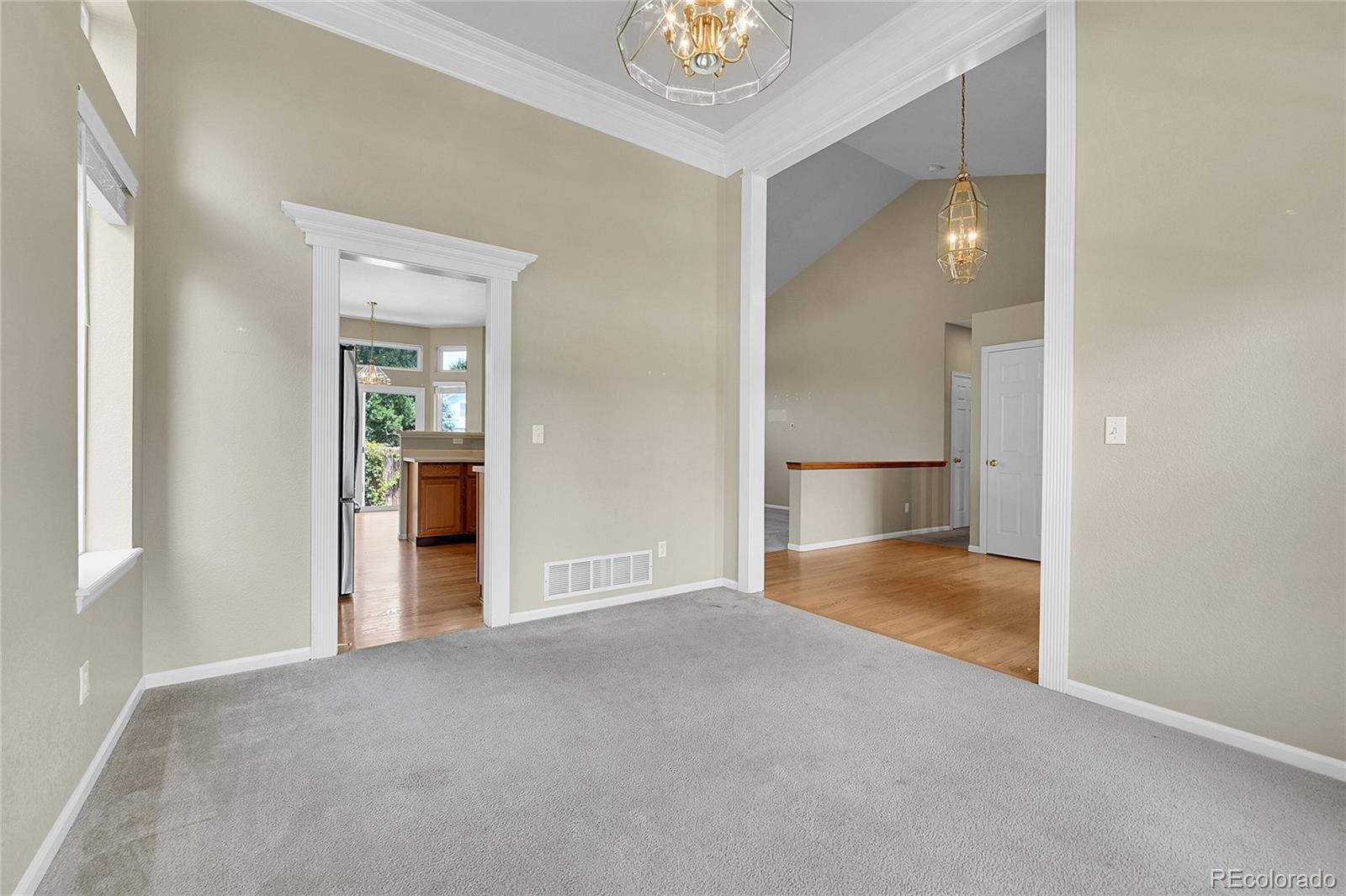 Location, Location, Location!! Sprawling ranch floorplan is open & inviting! An across from the walking/biking trails & backing to a greenbelt home, is a rare find! Welcoming front porch with great curb appeal! Through the front door, enter into your large foyer with high ceilings, hardwood flooring, which opens to the main floor living space. Oversized, sunny & bright dining room/living room could easily be converted to another bedroom!! The kitchen is the hub of this charming home which boasts of terrific storage, counter space, and a custom coffee bar! Opening to the great room & large patio, this home is an Entertainers dream home! Enjoy your cozy fireplace in your light & bright great room, with vaulted ceilings and ceiling fan! The kitchen features hardwood floors, an oversized breakfast nook and lots of windows to let the morning sunshine come in! Walk outside 2 the private patio, backing to the greenbelt to enjoy Al fresco dining at its finest, complete with some mountain views! Private & quiet- incredible ambience! You will enjoy the raised garden beds to grow your vegetables in! Terrific, oversized main floor primary bedroom with large window & ensuite primary bathroom with newer flooring, expanded shower, complete with subway tile, large soaking tub, separate vanities and walk-in closet There are 2 additional bedrooms and a full hall bathroom with granite countertops, new flooring and subway tile on the bath surround. Main floor laundry room.The full basement is awaiting your finishing touches! This home has been lovingly maintained by the original owners and family!! Walk to the park & the fantastic Cherry Creek elementary school! Jackson Farms is a planned community in the Cherry Creek School District. With incredibly low HOA’s - a rare find these days! Walking distance to The Smoky Hill Library! This home is close to Marina Park, Fox Hill Park, Quincy Reservoir, Southlands Mall, Cherry Creek State Park, Trails Recreation Center, & 25 minutes 2 DIA!