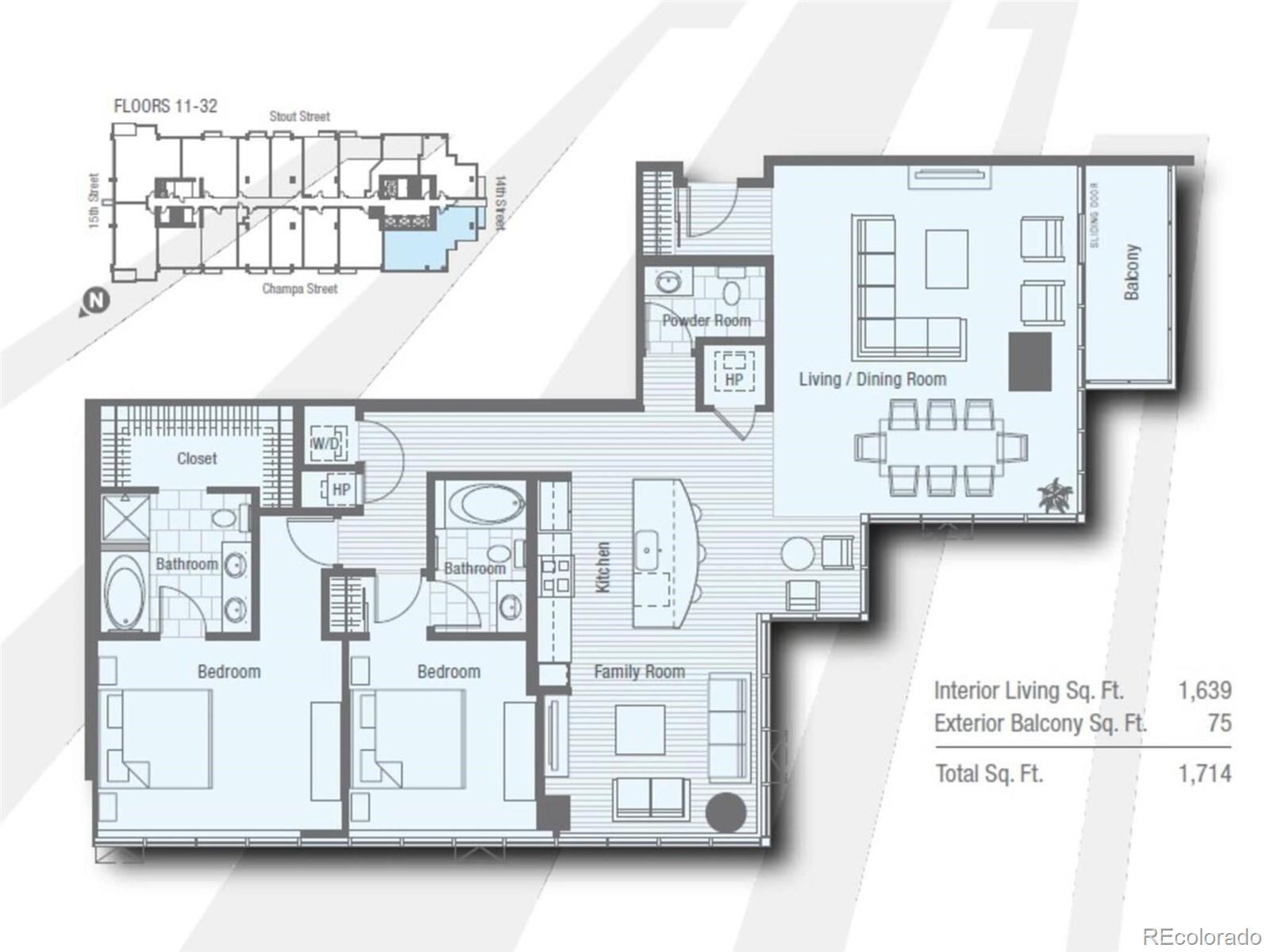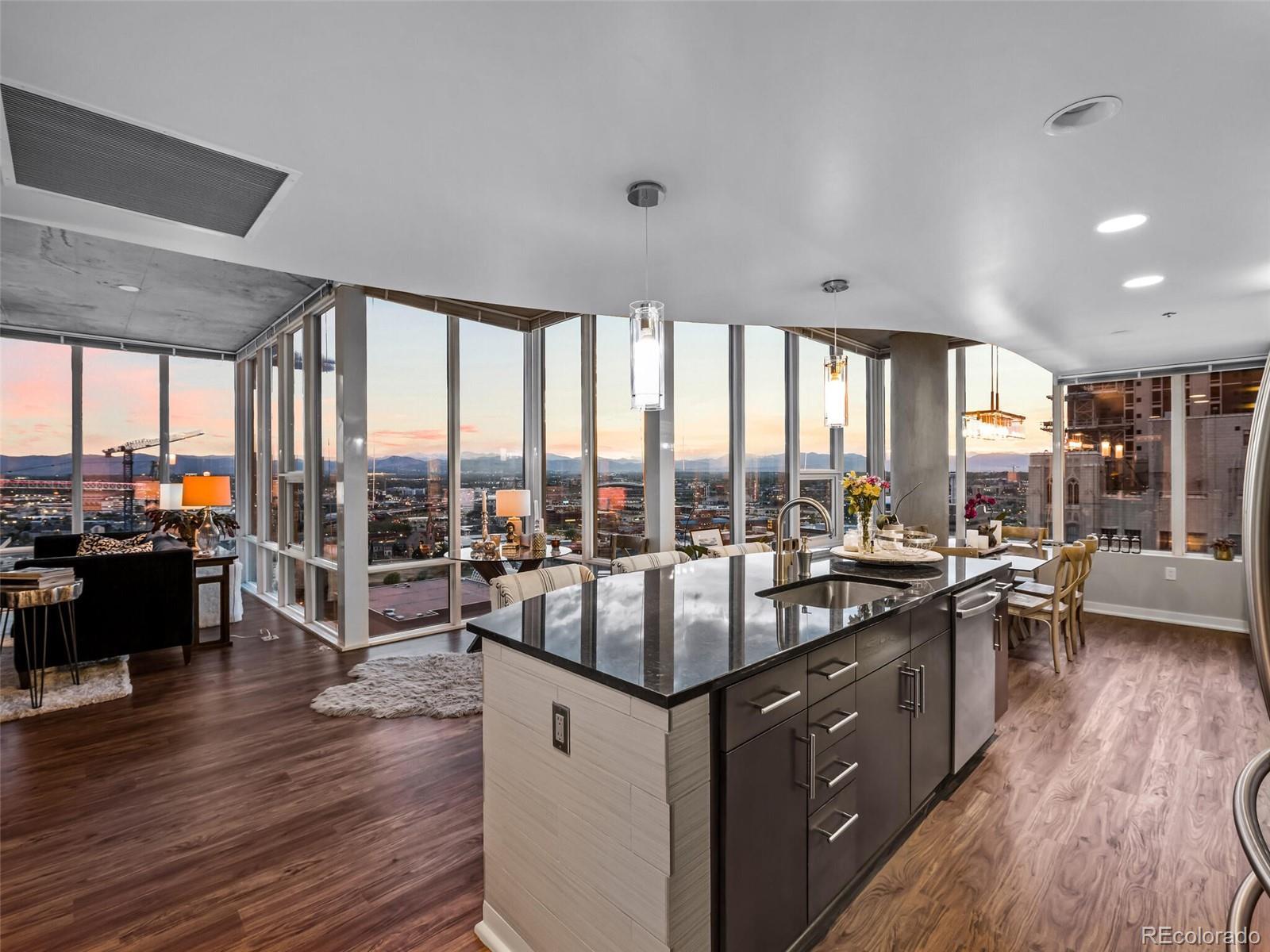 SPIRE CORNER RESIDENCE WITH SPECTACULAR VIEWS! Come home to this contemporary condo perched 23 stories above Downtown Denver and be greeted by floor-to-ceiling windows that wrap around the residence and frame jaw-dropping views of the majestic Rocky Mountains, Mile High Stadium, the Downtown Denver skyline, Elitch Gardens, and beyond! Those floor-to-ceiling windows drench this home in cheerful natural light! The loft-style wide-open floor plan includes 1,639 square feet of living area with 2 bedrooms, each with its own ensuite bathroom, newer cozy carpeting & motorized shades throughout. Primary bedroom features a custom closet system. The 2nd bedroom has a its own en-suite bathroom. The chef’s kitchen boasts granite countertops, sleek stainless steel appliances, and a large island. Adjacent to the kitchen is a bonus room that works well as a media room, dining room, den, or a work-from-home space. After a long day, unwind with a glass of prosecco on your private balcony and take advantage of our Colorado climate as the sun sets behind the Rocky Mountains and the weather moves in from the West. View this home again at night to appreciate the views! Also included: 1 parking space & 1 storage space in the attached garage. Immerse yourself in the vibrant SPIRE community, complete with LEED certification, a pool, hot tub, health club, multimedia lounge, and theater. Your dog will love the dedicated dog park, and the grilling area is perfect for entertaining. Benefit from 24-hour courtesy desk service, guest suites, and a modern access control system. SPIRE has super-fast internet-1 gig dedicated to each condo, along with DirecTV HD-DVR with HBO, Showtime + Cinemax. Very well-maintained building. SPIRE is in the heart of downtown, surrounded by the very best restaurants and a mere stroll to the performance venues and sports arenas. Embrace the downtown lifestyle and make this SPIRE residence your own.