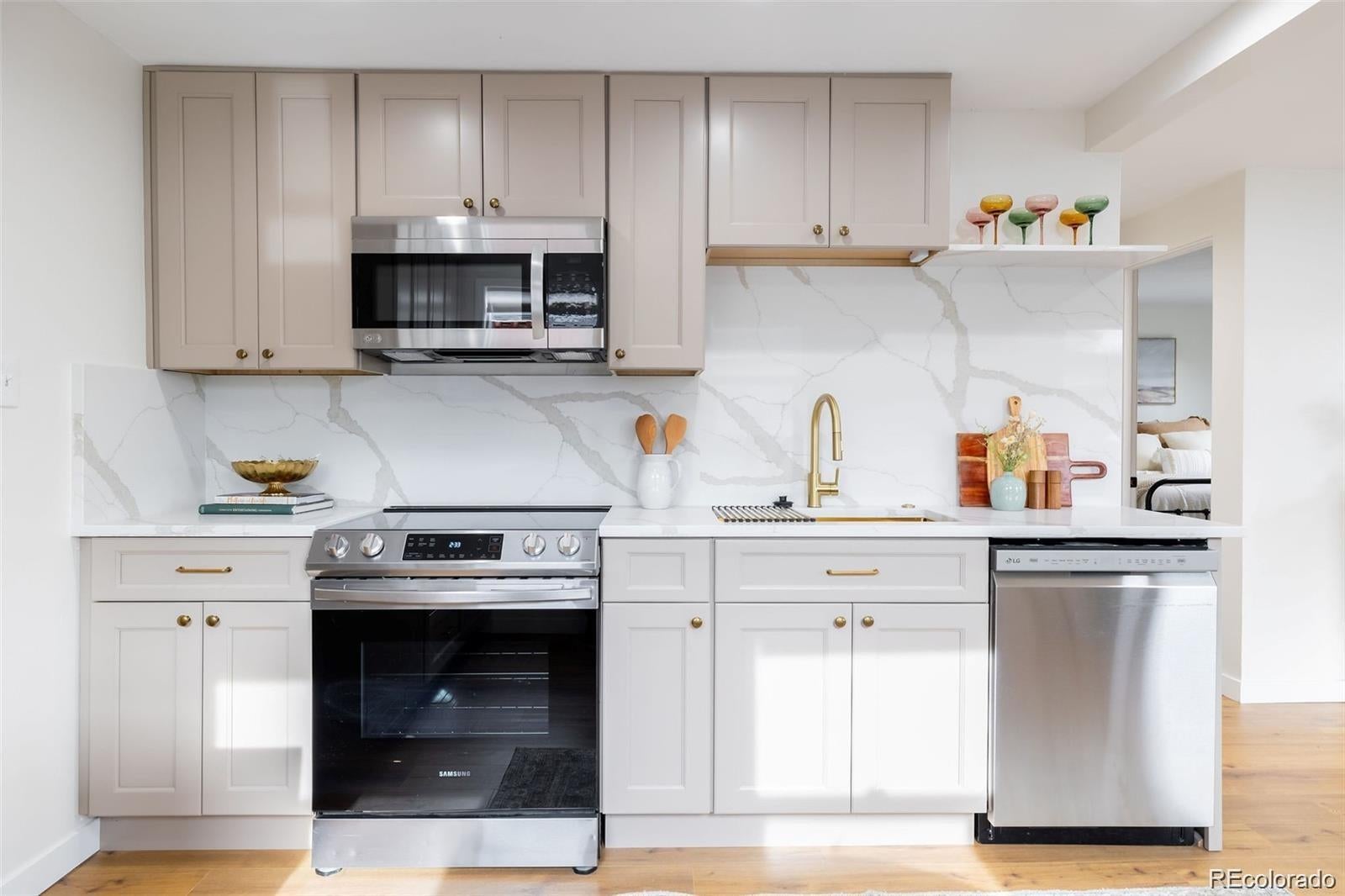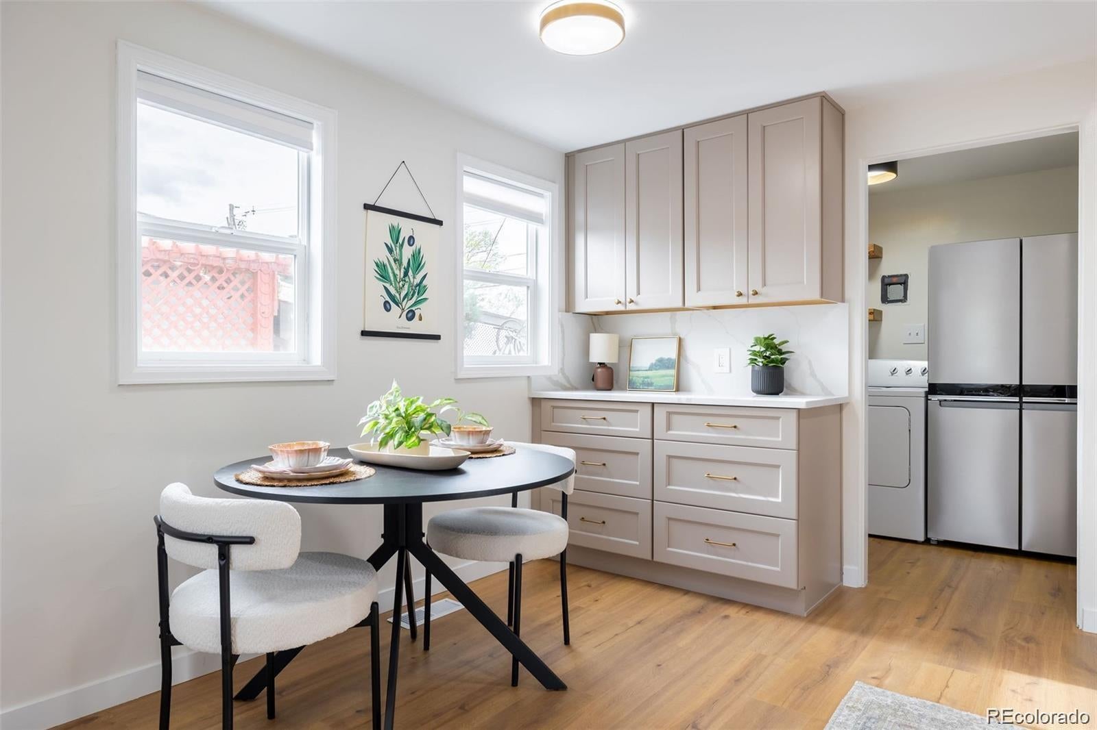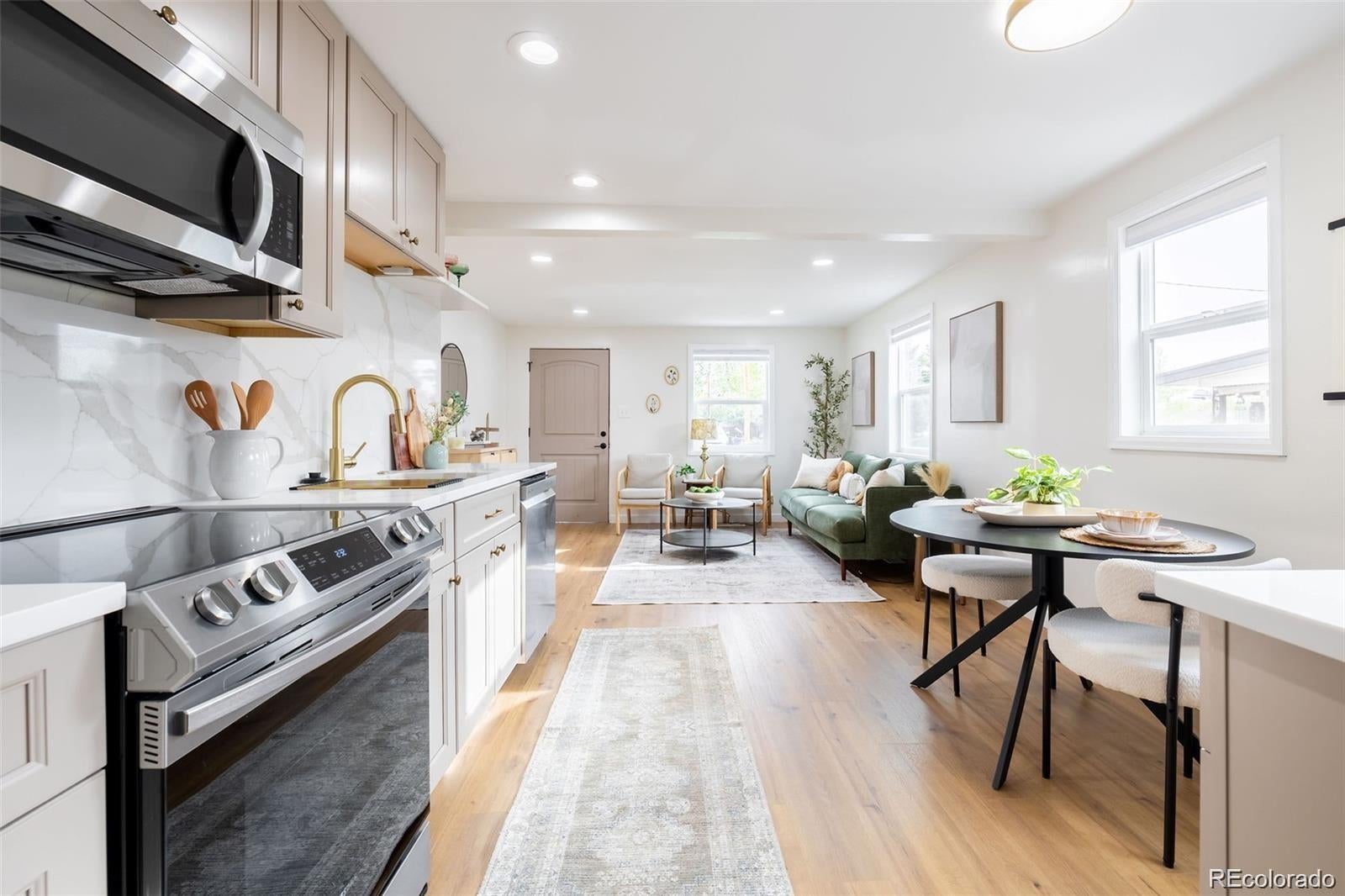 Welcome to your fully remodeled, move-in ready Arvada home with a detached finished garage! This turnkey property has been meticulously renovated from top to bottom, offering buyers peace of mind with all 2024 appliances, HVAC (furnace & AC), tankless water heater, siding, interior paint, fixtures, and garage door. Enjoy a completely remodeled kitchen and bathroom featuring soft-close cabinetry, quartz countertops with waterfall backsplash, and not-to-be missed walk-in shower. The backyard is an entertainer’s retreat with a covered patio and two storage sheds for added storage! A rare highlight is the finished 300 sq ft detached garage, complete with a mini-split system for heating and cooling—perfect for a home office, gym, studio, or temperature-controlled garage. And—location, location, location! This home is just minutes from the charming Olde Town district, with quick access to I-70, dining, shopping, and everyday conveniences just 5–10 minutes away. Don’t miss your rare chance to get into a fully remodeled, worry-free single-family home in a prime location! ***This home qualifies for the community reinvestment act providing 1.75% of the loan amount with a cap of $7,000 as a credit towards buyer’s closing costs, pre-paids and discount points. Contact listing agent for more details.