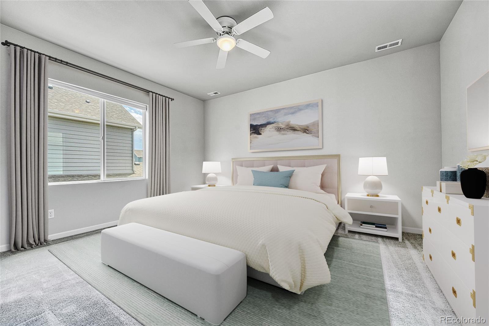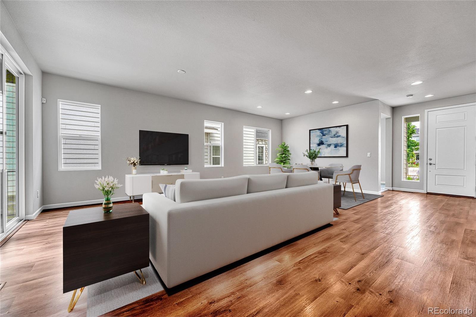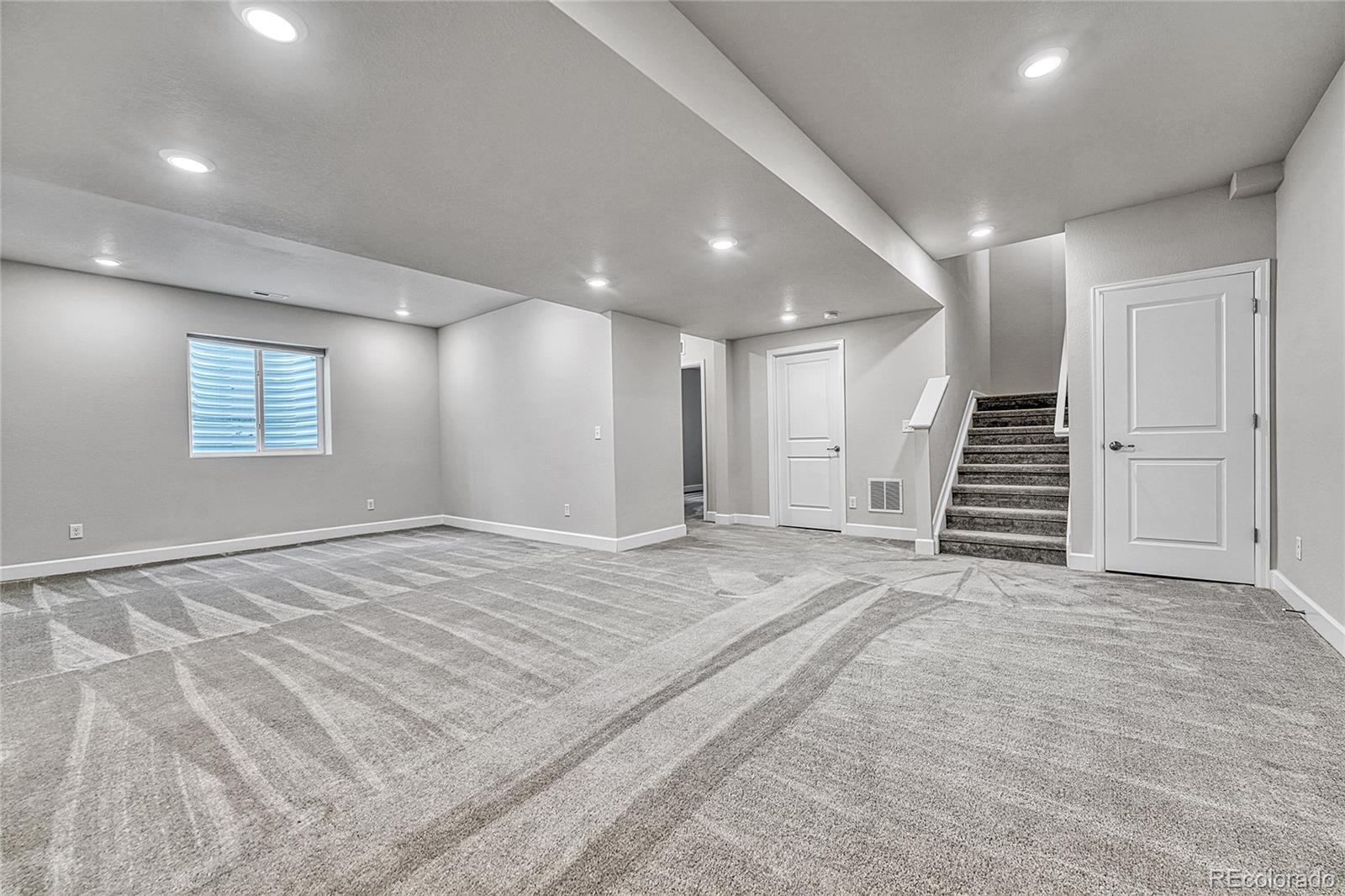 Welcome to this stunning two-story home in the vibrant community of Sterling Ranch! This property offers 4 bedrooms, 3.5 bathrooms, and 3,092 square feet of living space, ensuring ample room for relaxation and entertainment. From the moment you arrive, you'll be captivated by the modern exterior and the inviting xeriscaped front lawn, which sets the tone for the beauty that awaits inside. Step through the front door, and you'll be greeted by an abundance of natural light streaming through large windows, enhancing the open and airy atmosphere. The open floor plan seamlessly connects the living room, dining room, & kitchen, making it the ideal space for hosting gatherings. The kitchen is a chef's dream, boasting modern cabinetry, extensive countertop space, stainless steel appliances, and a large pantry, providing both style and functionality. The main level also includes a versatile office/flex space, offering privacy and convenience. Retreat upstairs to the spacious primary bedroom, which features an en suite bathroom with dual vanities, a custom tile shower with a poured shower pan, and a generous walk-in closet. Two additional bedrooms; one with a walk-in closet and a full bathroom complete the upper level, along with a conveniently located laundry room. The finished basement provides an additional bonus space, perfect for unwinding in the large family room. This level also includes a bedroom and a full bathroom, adding to the home's versatility. Security/smart home system ring camera for peace of mind. The 2-car attached garage offers alley access and an EV charging station for added convenience. Outside, the backyard is your own private oasis, featuring a covered patio that is perfect for enjoying summer evenings. Sterling Ranch is a welcoming, family-friendly community with parks, trails, and community pool & gym , all nestled against the breathtaking Colorado Foothills. With easy access to Santa Fe and C470. This is so much more than a home; it's a lifestyle!