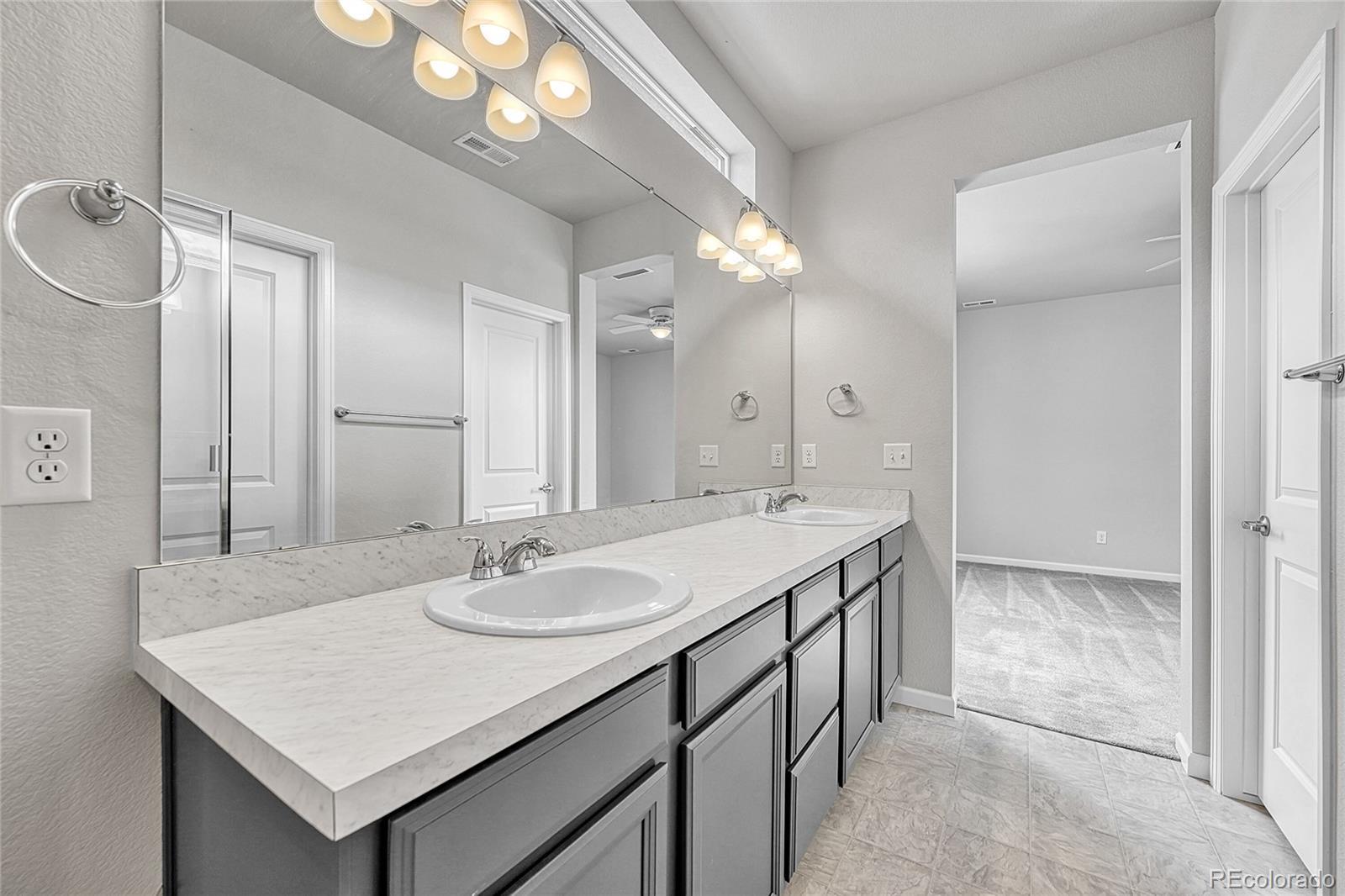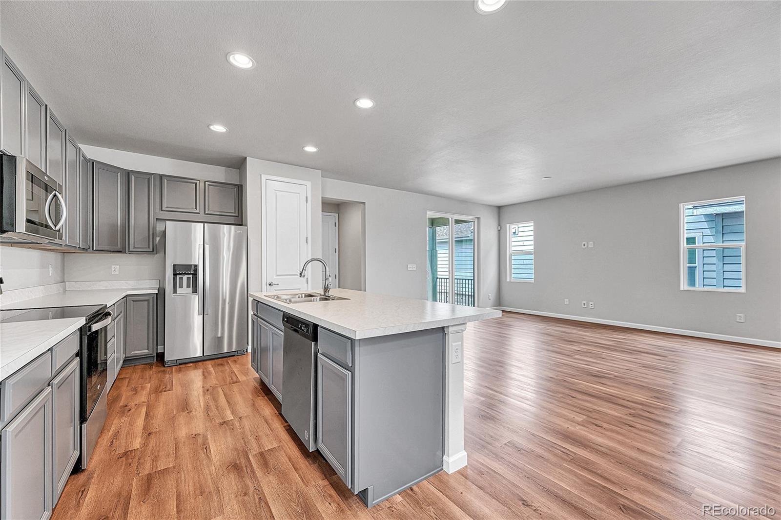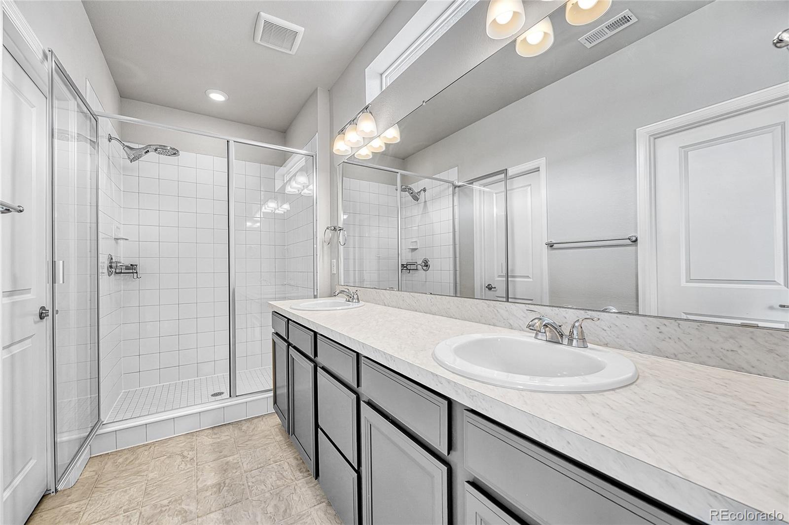 Welcome to this stunning two-story home in the vibrant community of Sterling Ranch! This property offers 4 bedrooms, 3.5 bathrooms, and 3,092 square feet of living space, ensuring ample room for relaxation and entertainment. From the moment you arrive, you'll be captivated by the modern exterior and the inviting xeriscaped front lawn, which sets the tone for the beauty that awaits inside. Step through the front door, and you'll be greeted by an abundance of natural light streaming through large windows, enhancing the open and airy atmosphere. The open floor plan seamlessly connects the living room, dining room, & kitchen, making it the ideal space for hosting gatherings. The kitchen is a chef's dream, boasting modern cabinetry, extensive countertop space, stainless steel appliances, and a large pantry, providing both style and functionality. The main level also includes a versatile office/flex space, offering privacy and convenience. Retreat upstairs to the spacious primary bedroom, which features an en suite bathroom with dual vanities, a custom tile shower with a poured shower pan, and a generous walk-in closet. Two additional bedrooms; one with a walk-in closet and a full bathroom complete the upper level, along with a conveniently located laundry room. The finished basement provides an additional bonus space, perfect for unwinding in the large family room. This level also includes a bedroom and a full bathroom, adding to the home's versatility. Security/smart home system ring camera for peace of mind. The 2-car attached garage offers alley access and an EV charging station for added convenience. Outside, the backyard is your own private oasis, featuring a covered patio that is perfect for enjoying summer evenings. Sterling Ranch is a welcoming, family-friendly community with parks, trails, and community pool & gym , all nestled against the breathtaking Colorado Foothills. With easy access to Santa Fe and C470. This is so much more than a home; it's a lifestyle!