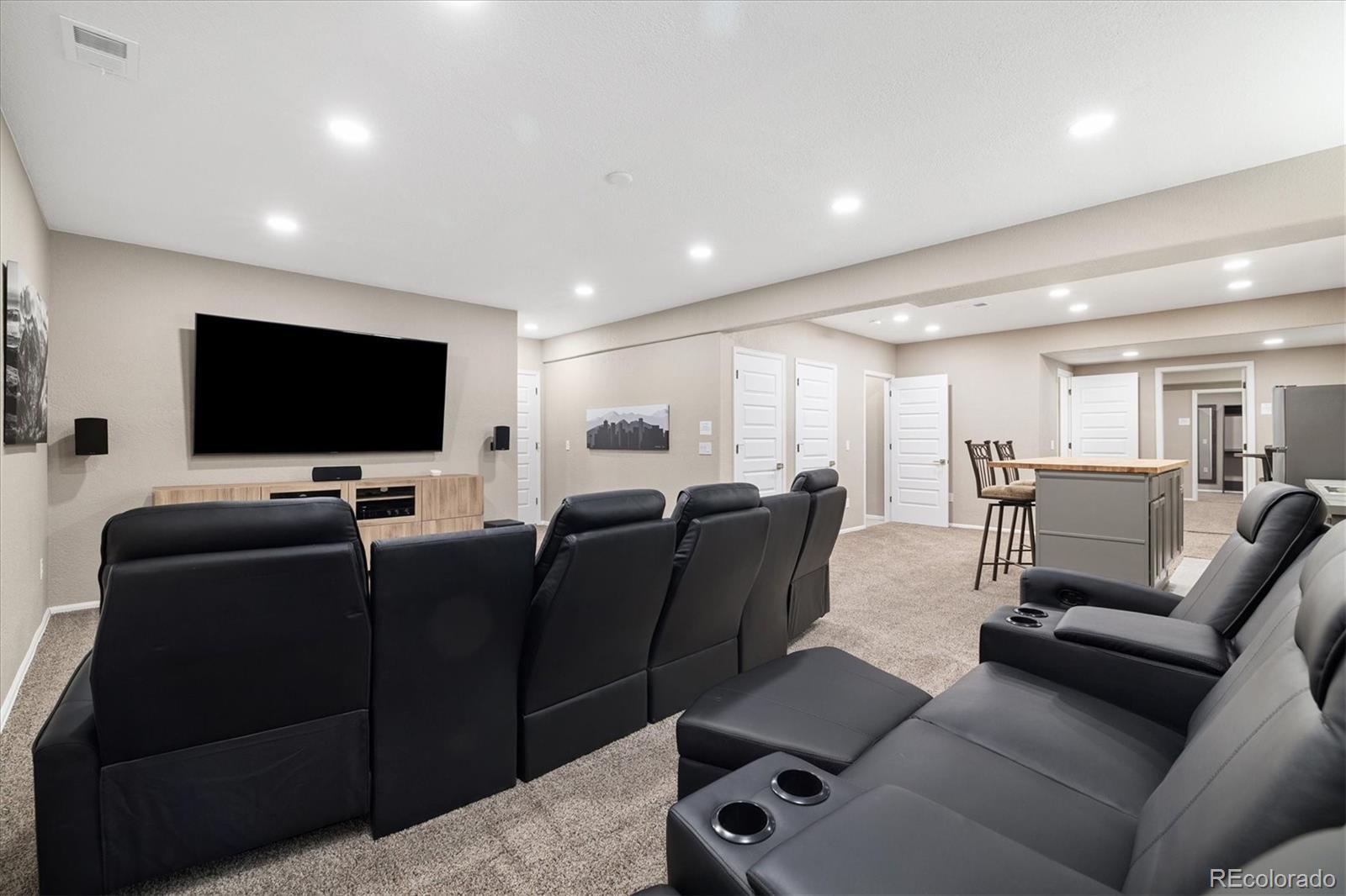 Welcome to your dream home at 6725 Mentha Drive in beautiful Castle Rock, CO! This stunning 4-bedroom, 5 bathroom residence offers 4,616 square feet of luxurious living space, perfectly situated on a spacious 9,714 square foot lot. Designed with a plethora of features, this home boasts an expansive open kitchen with granite counters, stainless steel appliances, and a convenient island for culinary adventures. The large living room offers a fireplace, plantation shutters, automatic remote window coverings, recessed lighting and 20ft glass window wall slider opening up to the private patio and open space. The main floor primary suite is a serene retreat, complete with a custom closet and an elegant ensuite featuring a separate shower and double sinks. Enjoy cozy evenings in the home theater and make entertaining a breeze with the finished basement, featuring a wet bar and media/recreation room. This home is equipped with modern conveniences like a smart thermostat, video security, and a sound system. The large 7 car, climate controlled garage offers RV parking with a custom loft, while the back yard opens to tranquil open space, providing a perfect blend of privacy and beauty. Location, Upgrades and Views make this one off home that was built and finished with so much attention to detail an absolute win for buyers. Additional features and upgrades. Built with all the structural add-ons from the builder increasing the main level ceiling height to 10ft and the basement to 9ft. 5.1 Surround sound. 20ft Glass window wall slider. Lot premium was around $80,000. Linear Gas fireplace. Oversized glass shower with both rain shower and standard shower head. Front steps and back porch cement has been sealed and coated. Main level office. Oversized pantry. Electric shades. TV's. Upgraded ceiling fans. Garage offers an epoxy coated floor, heating and cooling system, side entrance, custom loft, 220/110 hookups, RV parking, water spigot, insulated, overhead lighting.