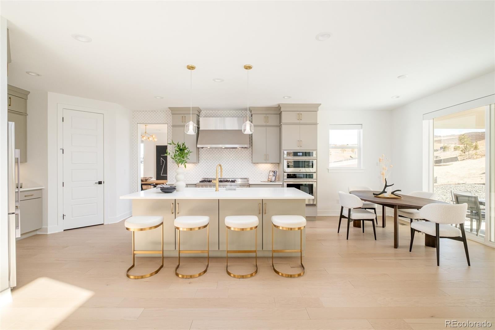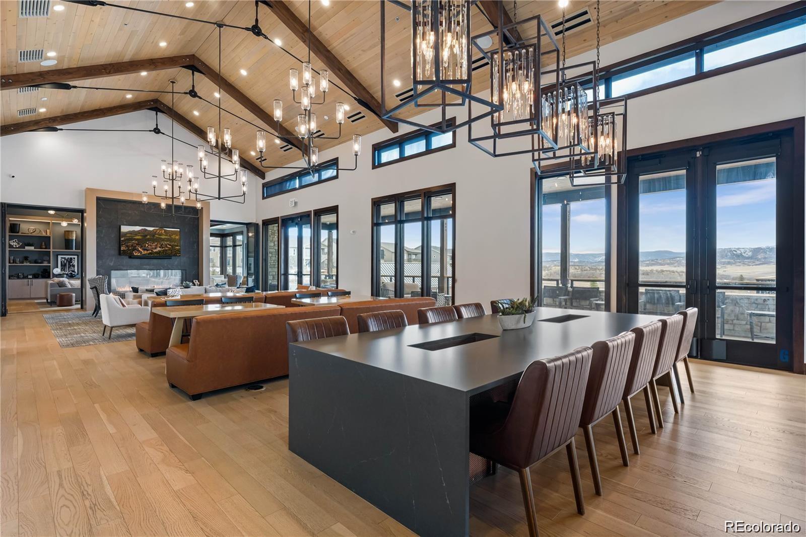 Architectural scale and thoughtful design converge in one of Montaine’s most refined residences. Perched on a sunny 10,498-square-foot corner lot, a striking entry showcases a warm two-story foyer leading to a private home office and formal dining room. The great room creates an immediate sense of grandeur, anchored by a sleek linear fireplace, soaring two-story windows, and over $400K in premium upgrades, including Lutron automatic blinds. At the heart of the home, the chef’s kitchen delivers both beauty and performance with the JennAir RISE professional appliance suite, upgraded MasterCraft stacked cabinetry with shaker crown molding, and elegant gold hardware. An expanded island offers generous prep space and seating, while the walk-in pantry and open breakfast Indoor and outdoor living blend effortlessly through a multi-panel stacking glass door opening to an extended covered patio, where you can enjoy the quiet backdrop of the open space and continued privacy year-round. Upstairs, the primary suite serves as a true retreat, complete with a private sitting area and a spa-inspired bath featuring a freestanding soaking tub, frameless glass shower with dual shower heads, and a custom Classy Closets system. Secondary bedrooms offer walk-in closets and a spacious loft for flexible living or media space. The unfinished basement spans over 1,400 square feet and is already outfitted with gym flooring and rough-in plumbing, primed for a wellness studio or entertainment wing. Located within an elevated master-planned community known for scenic trails, resort-style amenities, and a clubhouse with pool and fitness center, this home offers a balance of natural beauty and refined convenience just minutes from downtown Castle Rock dining, shopping, and I-25 access.