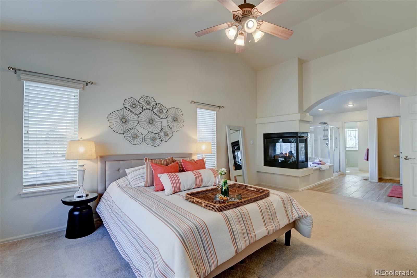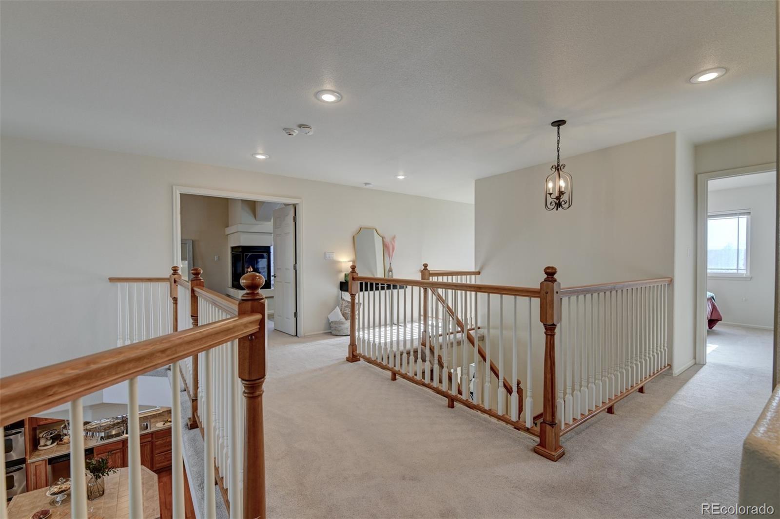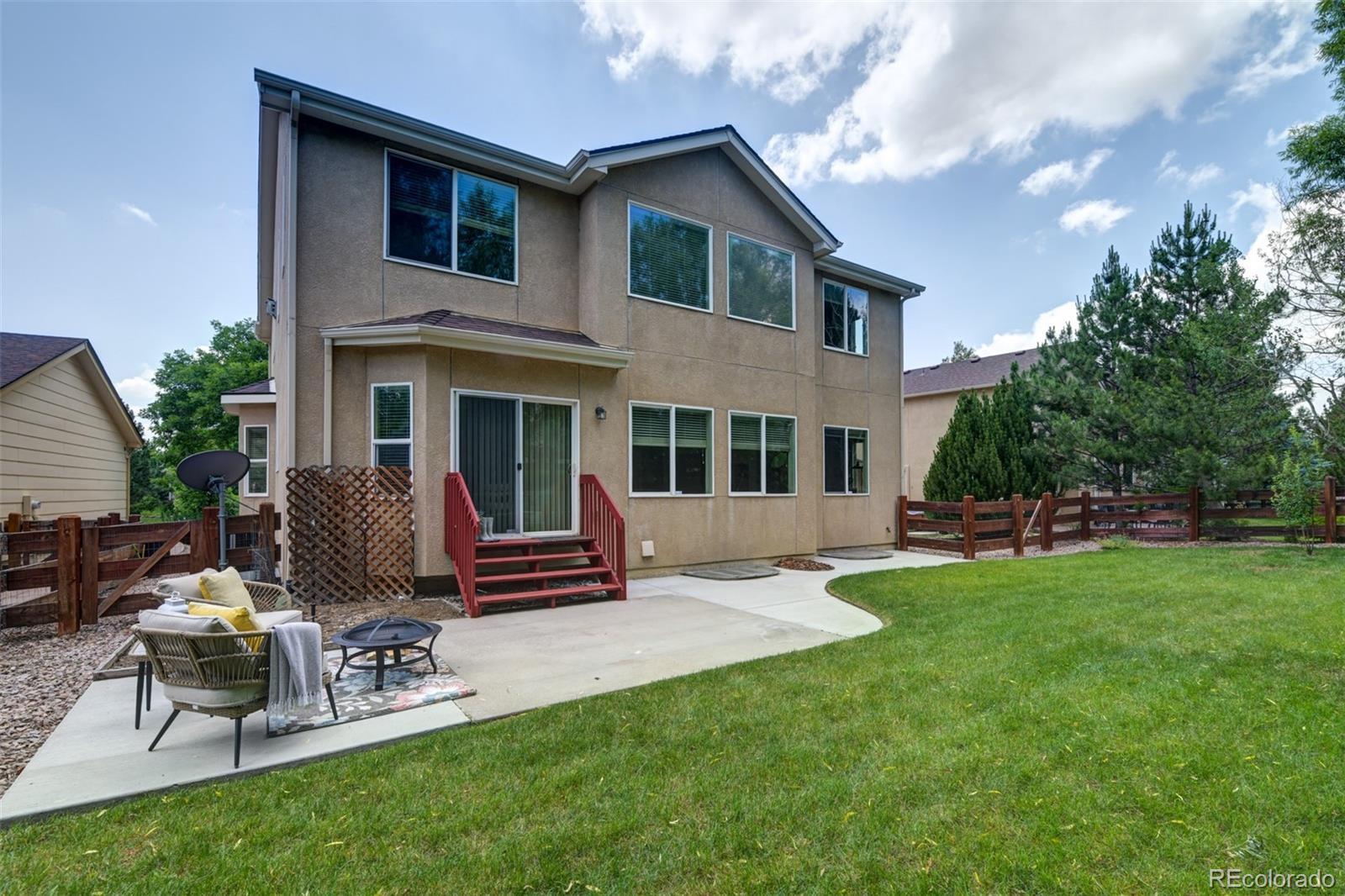 Step into this beautifully designed home and experience the perfect balance of comfort, functionality, and style. Upon entry, you're welcomed by a charming sitting area and a potential formal dining space. The great room boasts a soaring two-story wall of windows, flooding the space with natural light and showcasing breathtaking views. A cozy gas fireplace with custom built-ins anchors the living area, which flows effortlessly into the eat-in kitchen featuring a large island with new granite countertops, stainless steel appliances, double oven, and a spacious corner pantry. The main level also offers a dedicated office with a dual-sided fireplace shared with the living room, along with hardwood flooring and plush new carpet that add warmth throughout. Upstairs, the luxurious primary suite includes a walk-in closet and a spa-like 5-piece bath. Three additional bedrooms, a full bath, and mountain views complete the upper level. The finished basement offers endless possibilities with a large living area, wet bar, full bedroom with an adjoining bath, exercise room, and a custom wine cellar with humidifier. Located in the desirable Northgate area with easy access to I-25, top-rated D-20 schools, trails, shopping, dining, healthcare, and the U.S. Air Force Academy—this home truly has it all. Don’t miss your chance to make it yours!