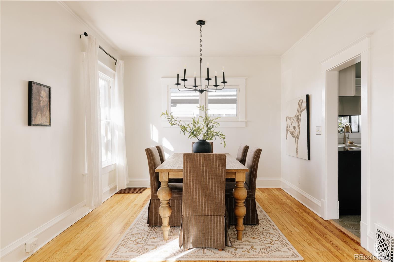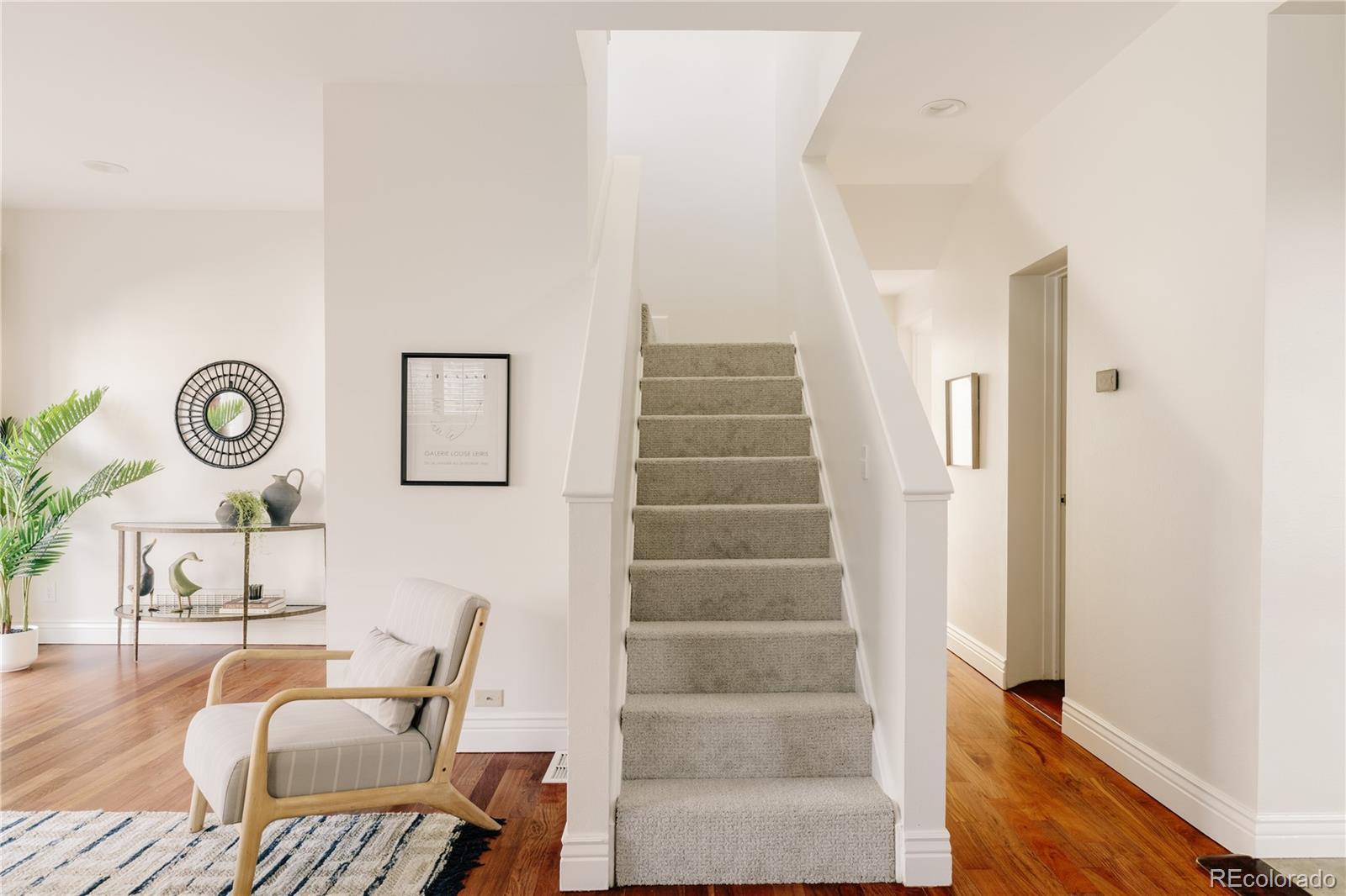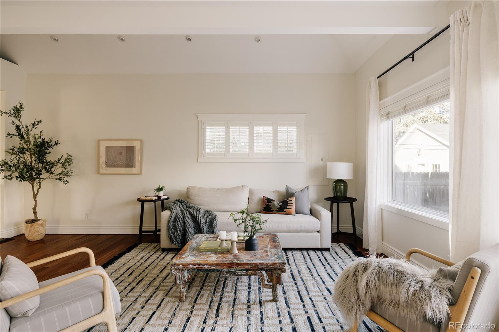 Welcome to this beautifully updated three-bedroom, three-bath home in the heart of coveted Cory-Merrill, perfectly positioned on a quiet, tree-lined street. From the moment you step inside, refinished original hardwood floors, a charming fireplace with custom built-ins, and abundant natural light create a warm, timeless feel. A dedicated dining space adds both character and functionality. The thoughtfully updated kitchen showcases white cabinetry, quartz countertops, and stainless steel appliances. Beyond the kitchen is a spacious family room with vaulted ceilings and expansive windows. This light-filled space offers a natural flow to the backyard, making it perfect for both effortless entertaining and everyday living. Two generously sized bedrooms with ample closet space and two bathrooms complete the main level. The upper-level primary suite serves as a private retreat, featuring a versatile sitting area or home office, en-suite bathroom, and abundant closet space. Outdoors, the expansive and private backyard with patio provides a tranquil setting for summer evenings and gatherings. Recent upgrades include updated kitchen and bathrooms, fresh interior paint, and HVAC system. This premier location offers unparalleled proximity to the boutiques and dining along Gaylord Street and Wash Park, with convenient access to Cherry Creek, I-25, and downtown Denver.
