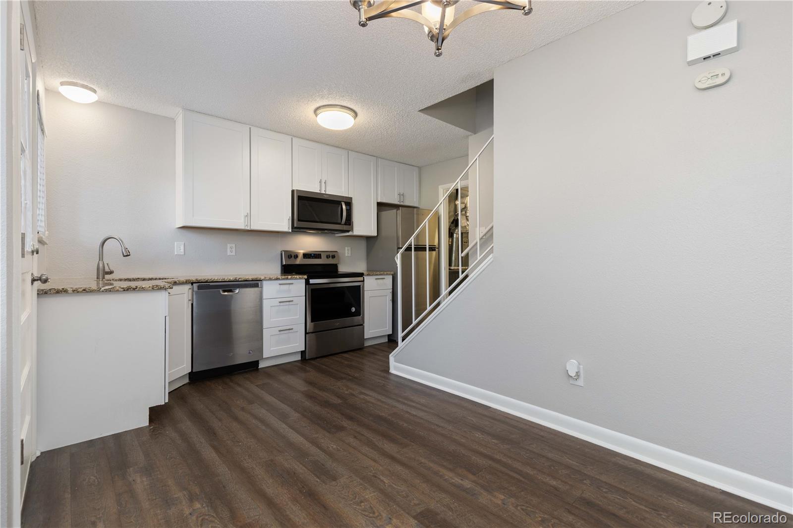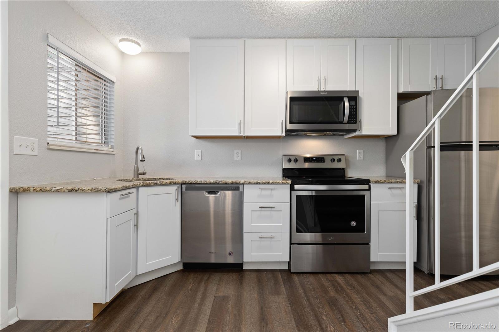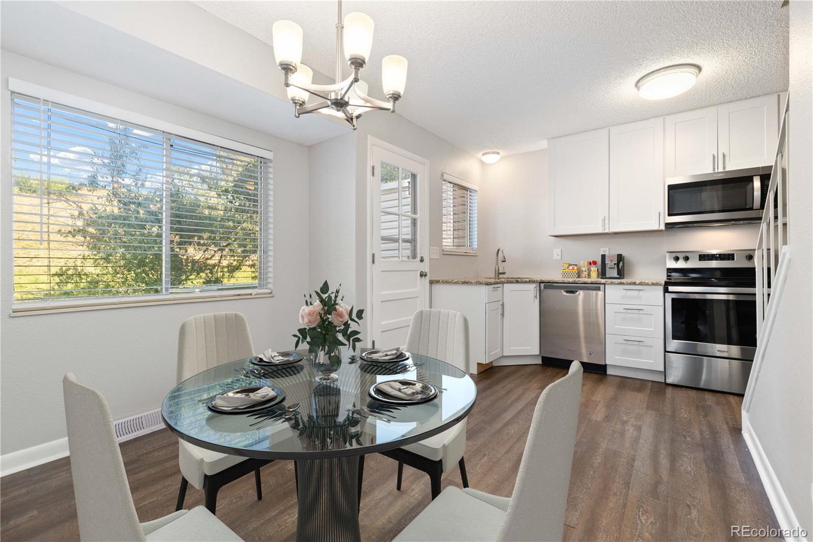 Completely remodeled corner-unit townhome in a quiet, tree-lined neighborhood! Enjoy peace of mind with a new roof (2024), fresh paint, new blinds, and updated window screens. Inside, you’ll find a bright and welcoming main level featuring new LVP flooring, a remodeled kitchen (2018) with granite counters and stainless steel appliances, plus an updated half bath. Upstairs offers two sizable bedrooms with brand-new carpet and a remodeled full bath with new tile flooring and vanity. Step outside to your private patio that backs to beautiful trails and open space with no neighbors behind. The community offers mature trees, walking paths, and easy access to two nearby lakes. Walk to Kendrick Lake, parks, and the popular Taste of Denmark bakery for morning coffee and pastries. Conveniently located near shops, restaurants, and schools with quick access to 6th Ave, Kipling, and Hampden. This move-in ready home also includes a 1-car attached garage and maintenance-free living with HOA covering lawn care. Truly the perfect blend of comfort, updates, and location!