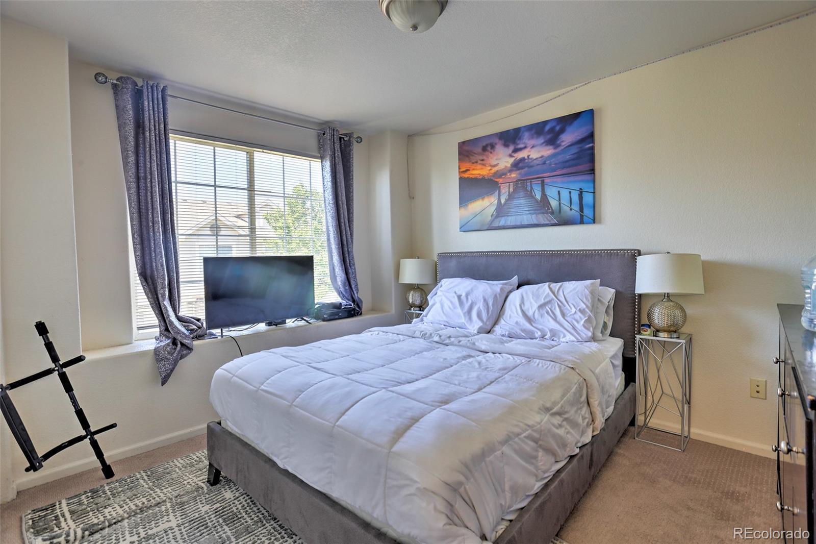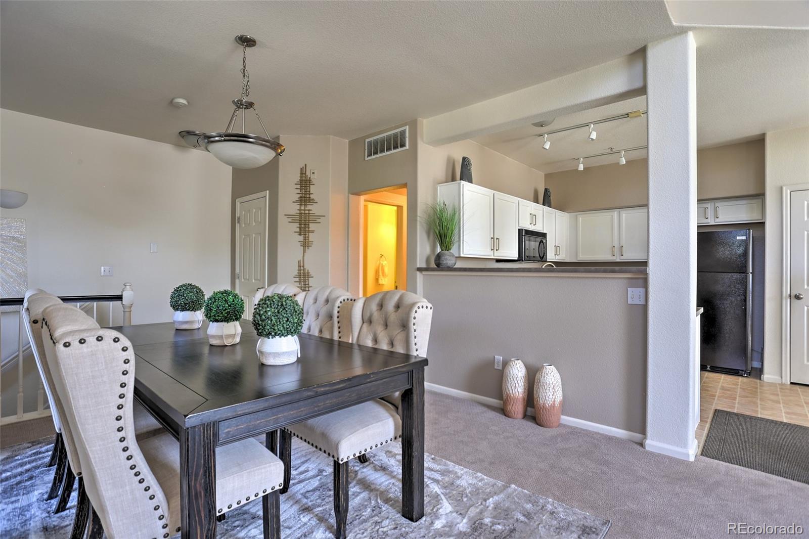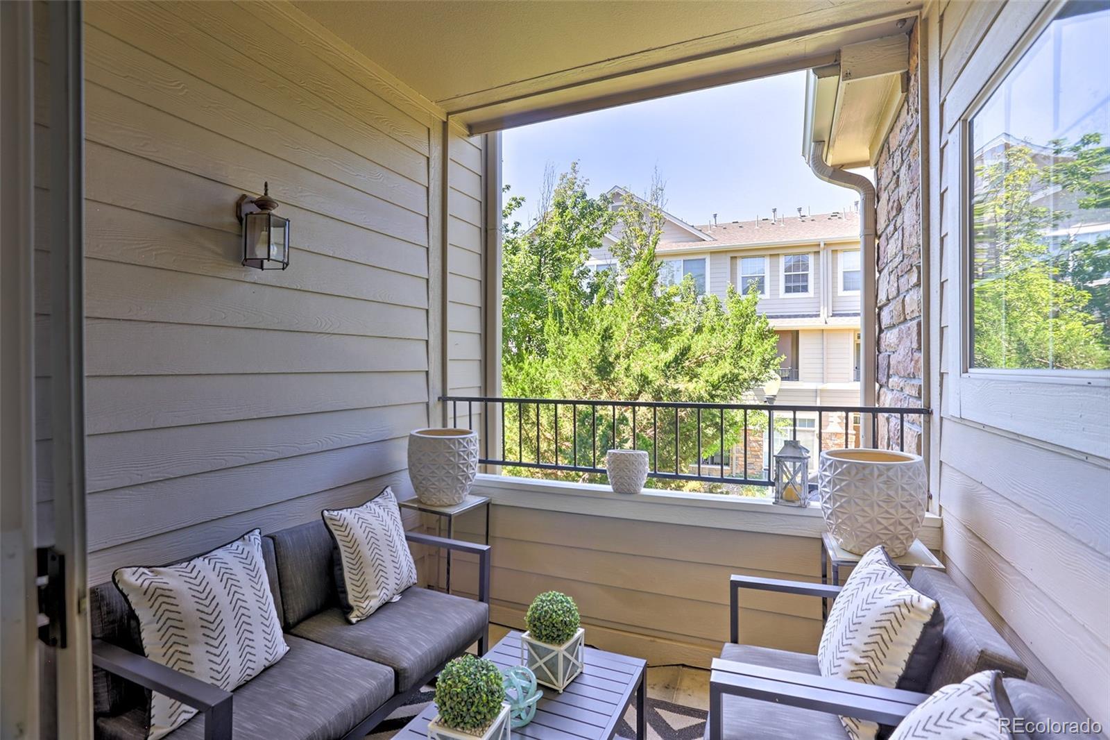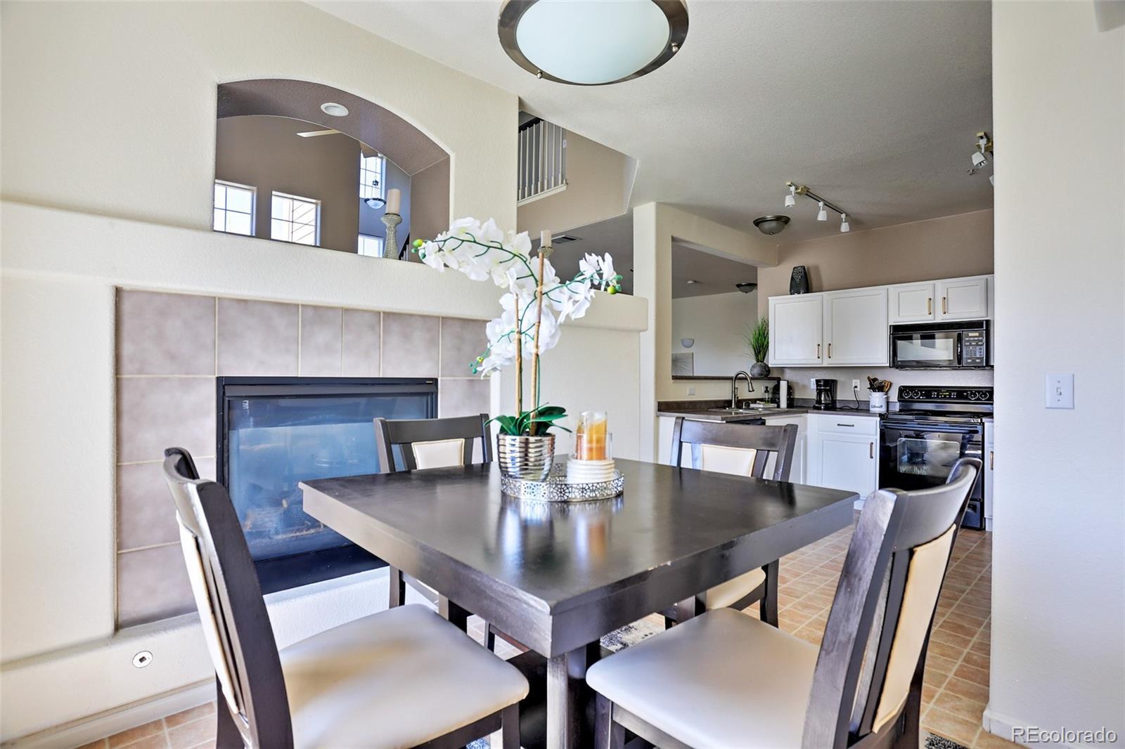 Welcome home to this show-stopping, top-floor unit in this well-maintained community zoned for the highly sought-after Cherry Creek school system. One quick flight of stairs welcomes you to the open-design living area with a gas fireplace for cozy Winter days, stunning high ceilings, a private covered patio, large windows with south-facing natural light flooding in, gorgeous and clean carpet, as well as a guest bath. The lofted second floor features two full baths and bedrooms including a primary suite with walk-in closet. Two reserved parking spots included, one in a private one-car garage and one uncovered outdoor. The community features a gorgeous outdoor pool and manicured green areas as well as the convenience of being close to Costco, Target, and numerous dining options, along with parks, playgrounds and easy access to highway 225 and public transportation. Well-behaved pets welcome. Contact us today to schedule your showing! The pictures don't do it justice, it's even better in person!