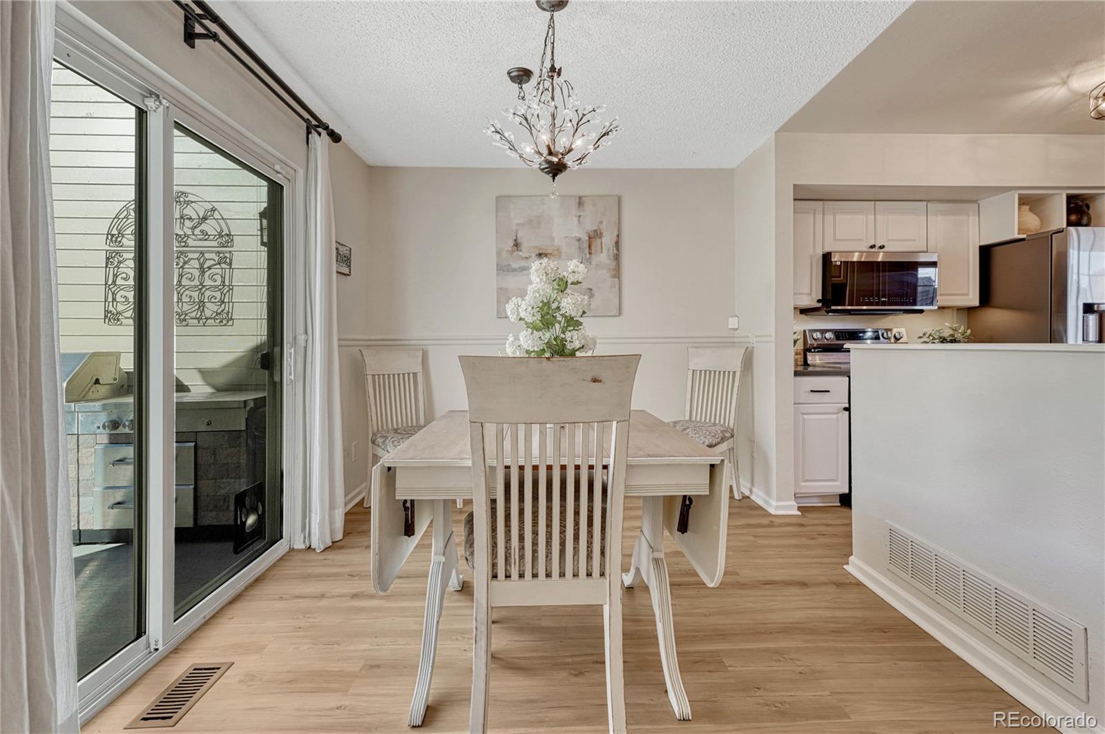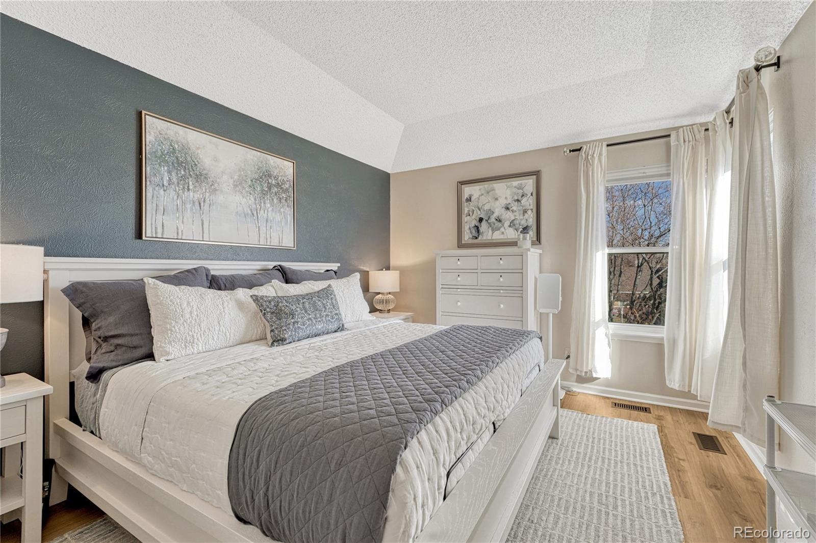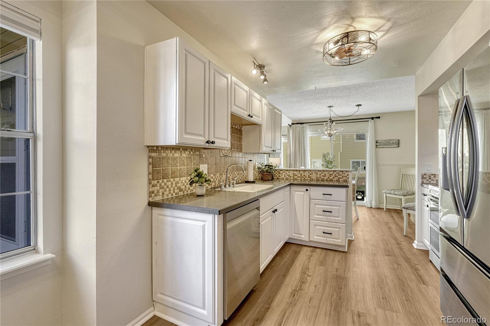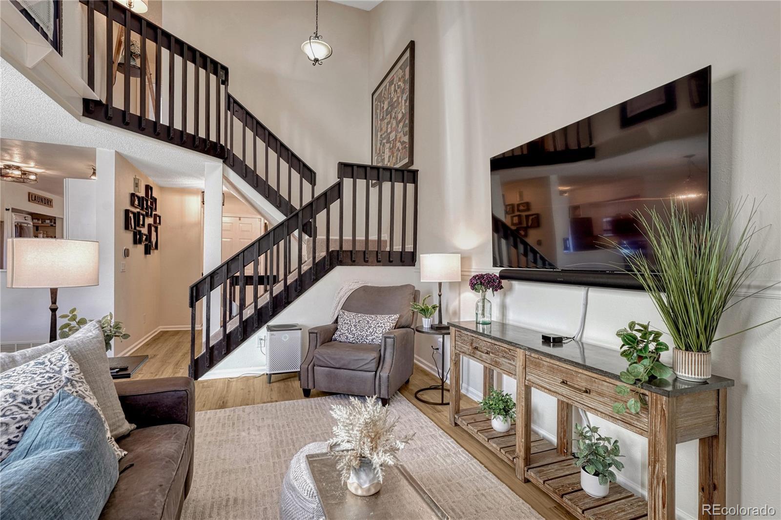 Refined elegance in this spacious townhome in sought after Littleton location. This light-filled 4 bedroom, 4 bath home with finished basement and attached garage has been thoughtfully renovated and upgraded from top to bottom. Luxury vinyl plank flooring throughout the entire home knits all the spaces together and offers a cohesive living space. KITCHEN: New stainless steel appliances, walk-in pantry area, custom backsplash, open to eat-in space. FAMILY ROOM: Vaulted-ceiling with skylights anchored by a wood-burning fireplace, creating an airy yet comfortable gathering space. Half bath located on the main floor. PRIVATE PRIMARY BEDROOM: Oversized bedroom with ensuite bath and 2 closets. Two additional bedrooms and bath complete the upstairs, one with an ensuite. FINISHED BASEMENT: 4th Bedroom, full bath, large rec area and convenient storage room. EXTERIOR: In 2025, the concrete patio fiber was reinforced. Private patio creates the perfect place for Colorado summer nights equipped with patio sail and pulley system. 2024 UPGRADES: The list is long! New Anderson Windows. New Roof, Gutters and Downspouts. Interior Paint in beautiful neutral colors. Upgraded Luxury Vinyl Plank throughout the entire home - only carpet is on the stairs. Furnace, AC and Humidifier. Interior Lighting/Ceiling Fans as well as Outlet and Wall Switches Replaced. All Kitchen Appliances and Washing Machine. Bath Faucets. Smoke and Carbon Detectors. HOA AMENITIES: Includes water, roof maintenance, exterior maintenance, trash and recycling. HOME EXTRAS: All window blinds and curtains stay. EcoBee Smart Thermostat. Attached garage with built-in storage with extra parking space available. Convenient access to C-470, foothills recreation, shopping, and dining, all while tucked away in this established and private community. If you are tired of looking at homes that need a ton of work, this one is move-in ready-extensive updates mean the work is complete and the home is ready to enjoy from day one