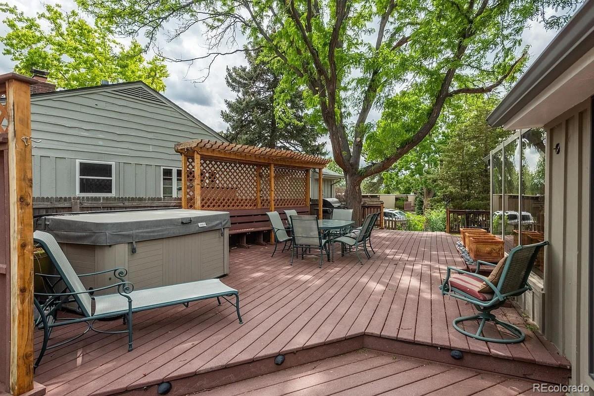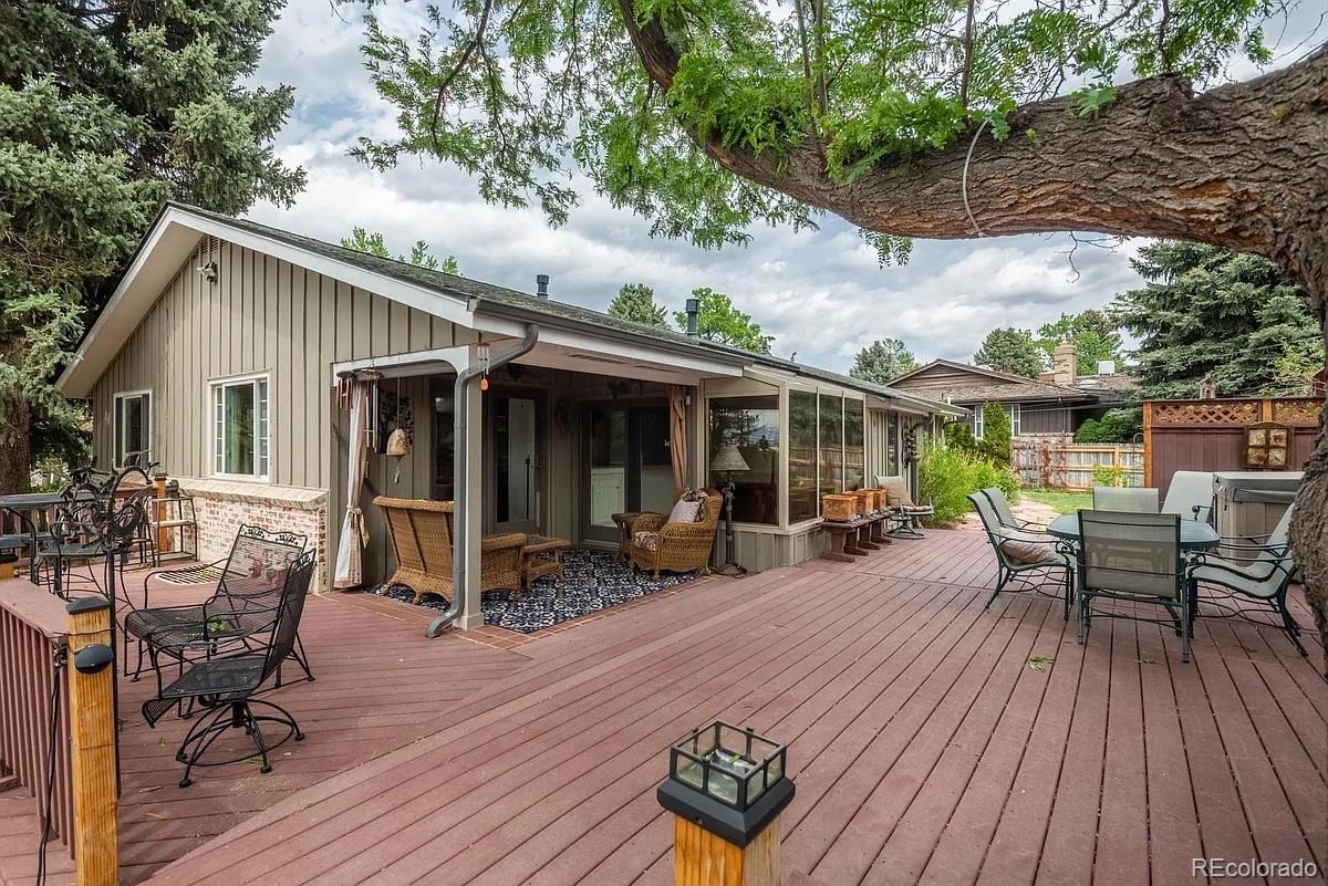 Conveniently located just blocks to shops and restaurants like Trader Joes, Whole Foods, Southglenn Mall, Starbucks, Sazza, Chook, and a stone's throw to the highly popular Highline Canal trail and Goodson rec center, this updated corner lot ranch in the desirable Crabtree neighborhood in Centennial/Greenwood Village offers breathtaking, unobstructed views of the Rocky Mountains while dining outdoors, entertaining, or quietly sipping a cup of coffee on the impressive outdoor deck. Enjoy gorgeous landscaping, garden beds, and shady trees on a 1/4 acre private yard. The home offers 2,230 finished sq.ft. On the main floor enjoy a spacious and comfortable living room adjacent to an elegant dining room with doors that open to the inviting back deck, round the corner to the thoughtfully updated kitchen complete with granite counters, kitchen island, stainless appliances and a pantry with a cozy sun room or eat-in kitchen space. Three bedrooms including a primary suite with an updated bath and additional 3/4 bath round out the main floor. The basement boasts more finished entertaining or living space with a family room another 3/4 bath, a study or non-conforming bedroom and a laundry room. This home has it all including a generously sized two car attached garage with more storage space. 12-month lease minimum Base Rent: $4,500 month Sewer, Water, Trash: Billed and set up by tenant Gas/Electricity: Billed and set up by tenant WIF/Cable: Billed and set up by tenant Yard Care: Responsibility of tenant