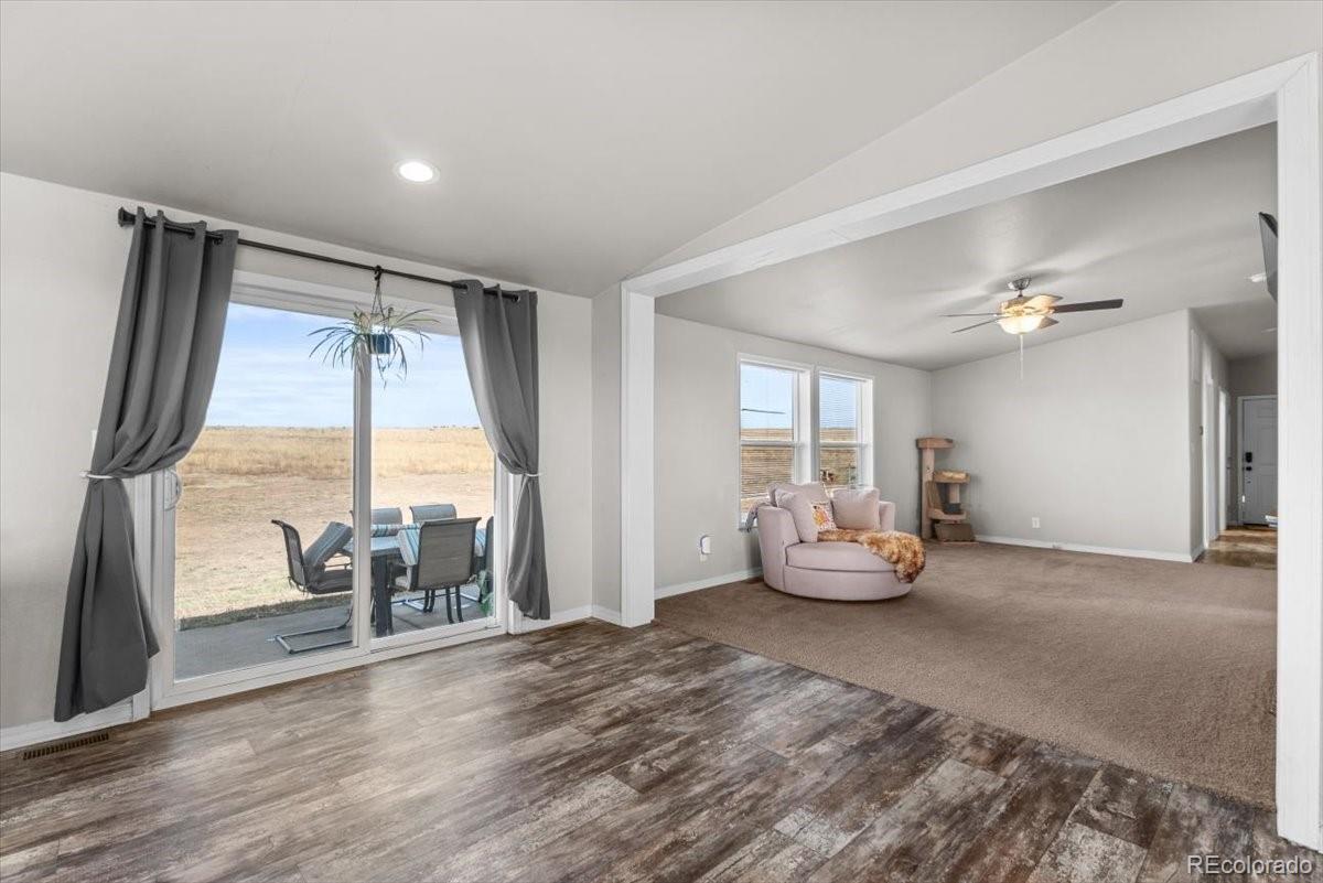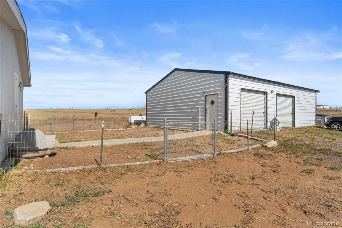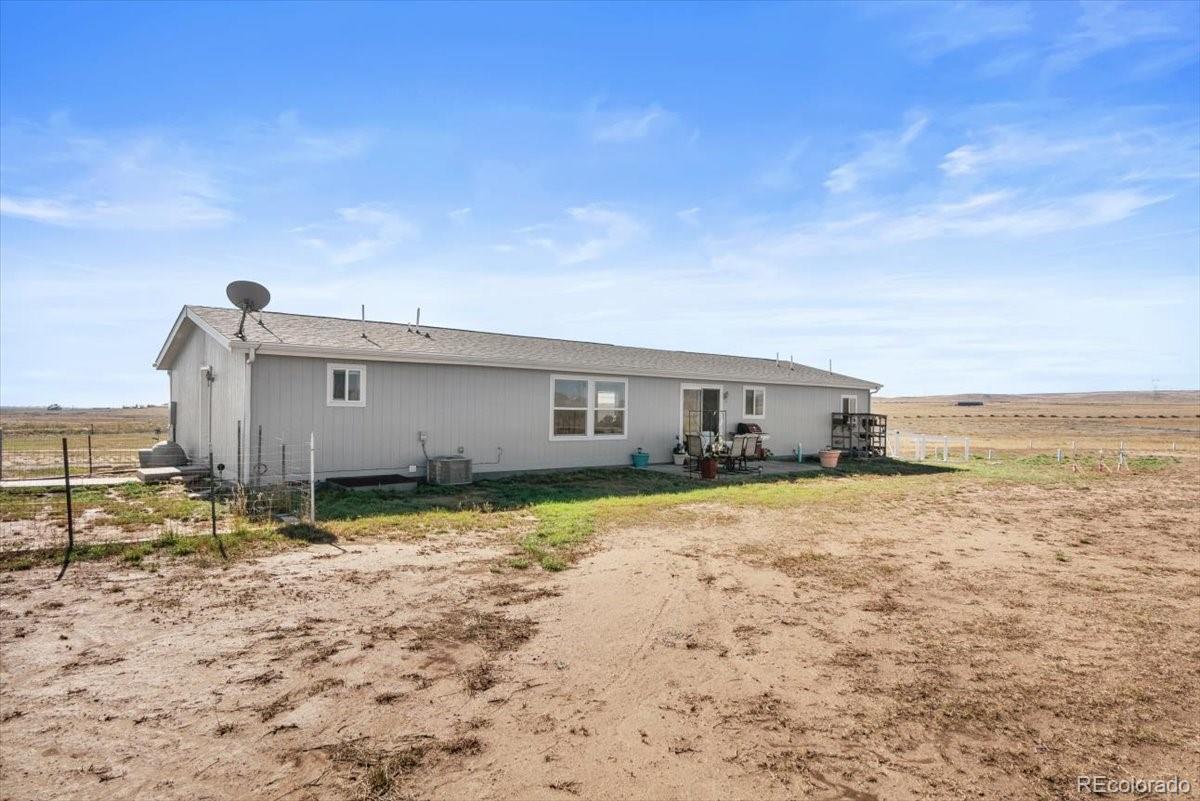 Welcome to your private retreat! This spacious 4-bedroom, 2-bathroom home sits on 20 acres in unincorporated Weld County, offering peace and privacy with no close neighbors. The wide-open lot provides endless possibilities and stunning views, including the unique sight of buffalo grazing in the neighboring field behind the home. Inside, you’ll find a bright, open floor plan featuring a large kitchen with a center island and a walk-in pantry, perfect for cooking and entertaining. The master suite is privately located on one side of the home and boasts high ceilings, a walk-in closet, and a luxurious master bath with a separate shower and soaking tub—where you can unwind while watching the buffalo roam. The opposite side of the home includes three additional bedrooms that can easily serve as guest rooms, offices, or hobby spaces. A huge living room provides plenty of space for gatherings, while the oversized dining room is large enough to double as a second living area. Outside, this property offers exceptional functionality with a 1,200 sq. ft. outbuilding featuring dual garage doors and power, ideal for projects, storage, or recreational vehicles. Between the home and the outbuilding is a convenient dog run, and a large, fenced garden area sits to the side of the home, keeping your plants safe from critters. The rear patio is the perfect spot to relax and take in the peaceful surroundings, with unobstructed views of the buffalo beyond. This home combines space, comfort, and country living, all just a short drive from town, making it a truly rare find.