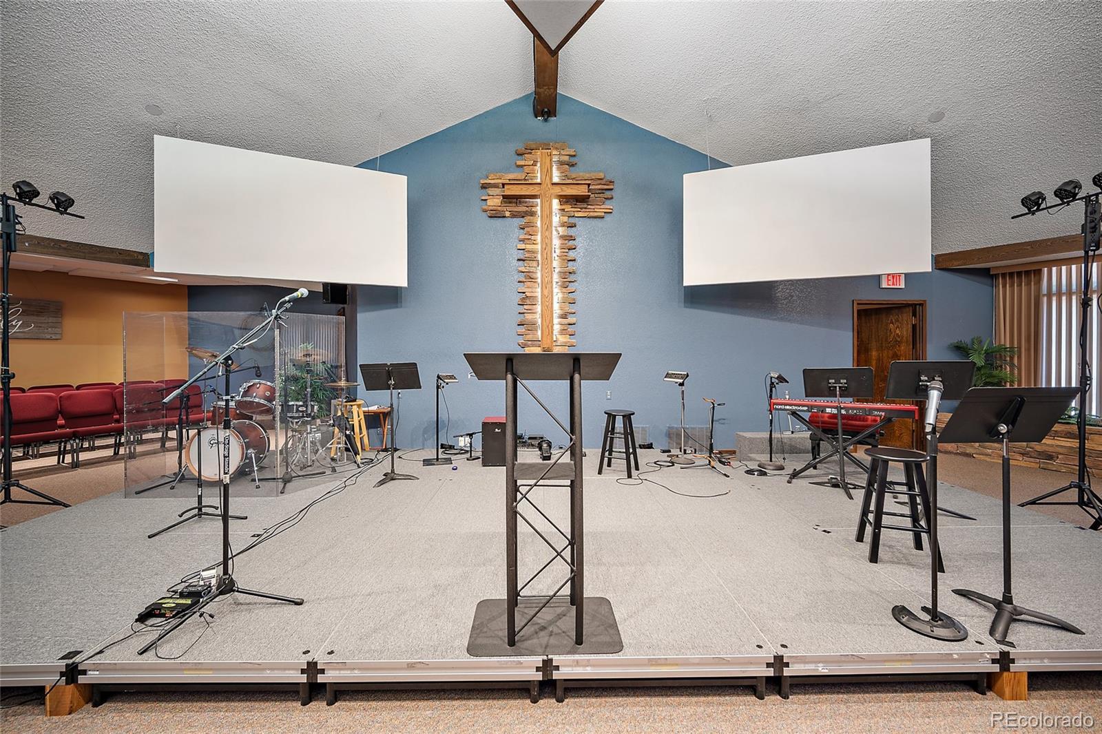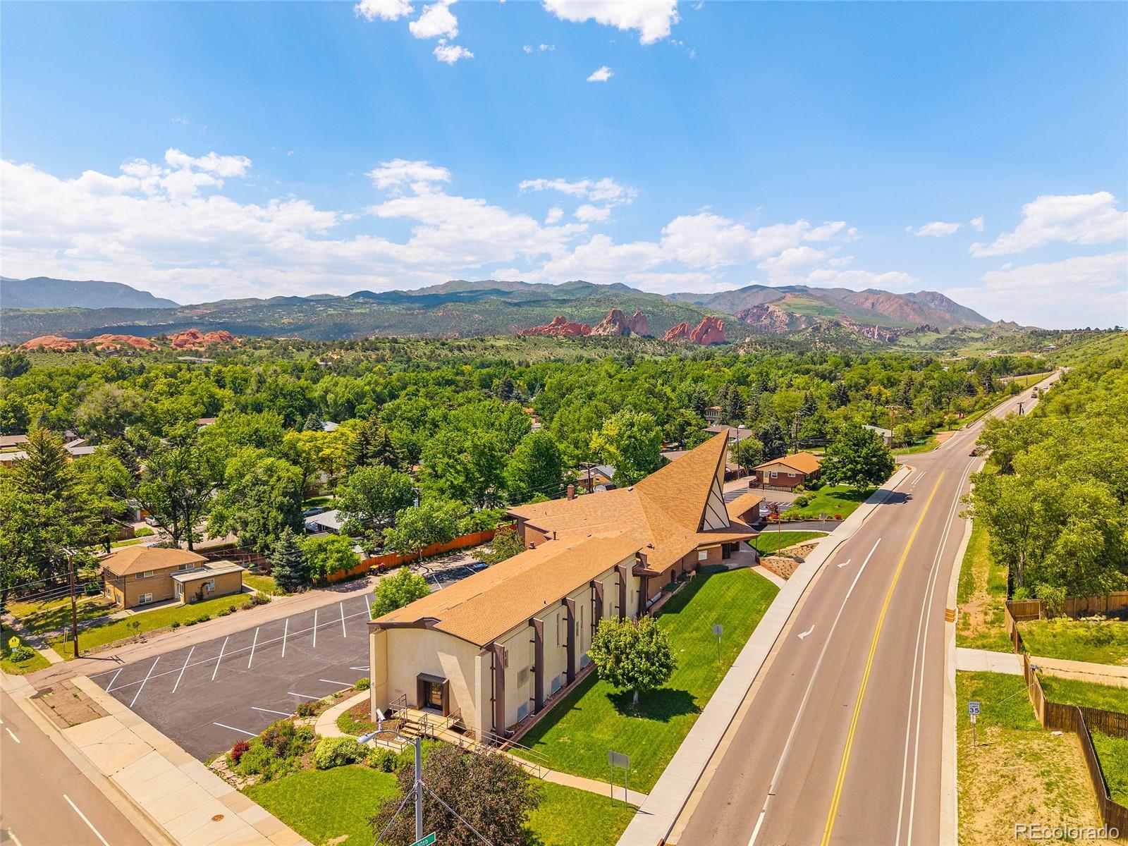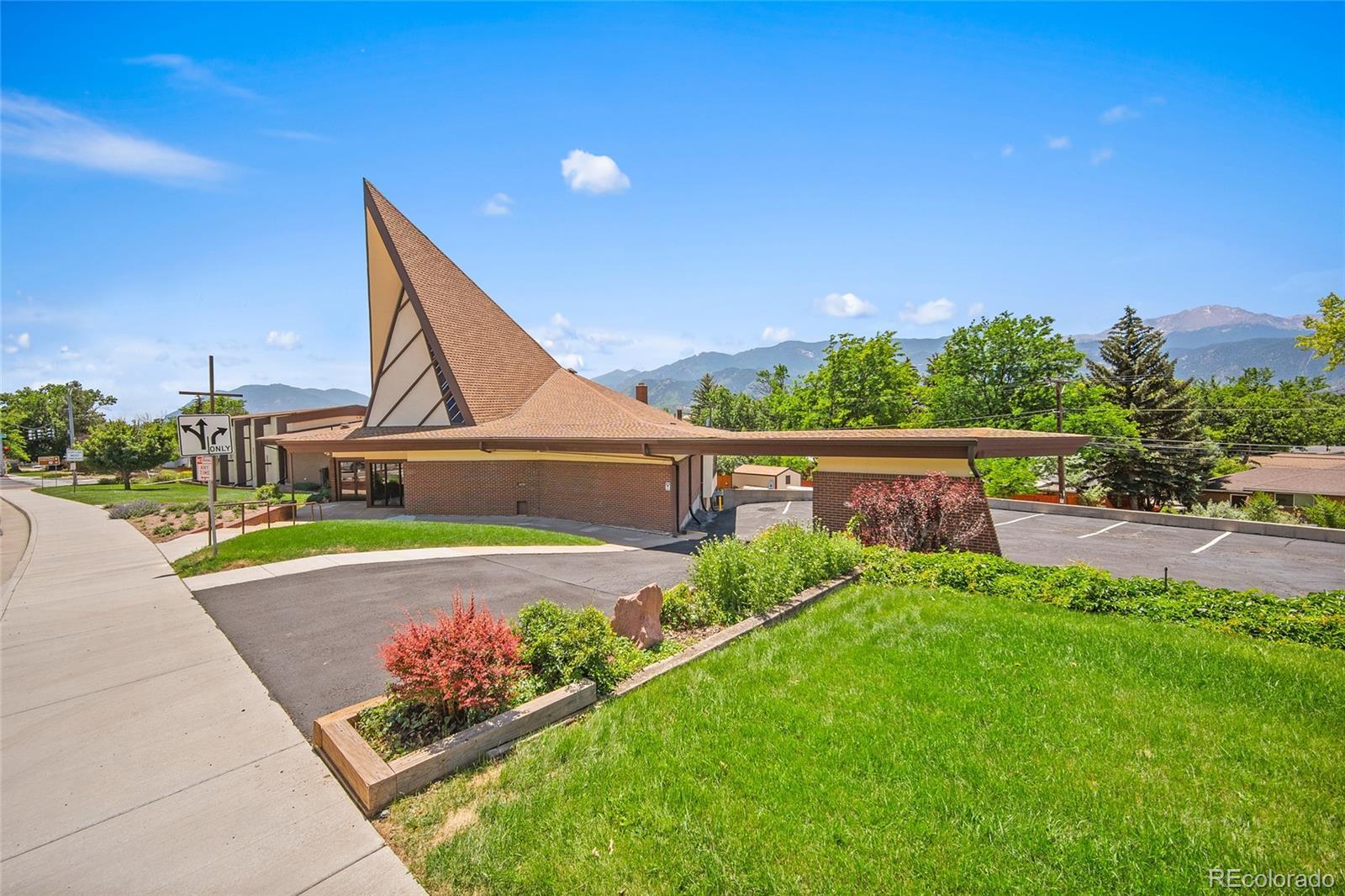 Highly visible church property with excellent architectural appeal just south of Garden of the Gods available for medium-sized or growing congregation seeking a new turn-key home anchored in a high-traffic West side location. Offering consists of a 16,000-sf three-level main building on almost one acre and a 2,000-sf residence/administrative building on a separate but contiguous quarter-acre. Fantastic 225-seat sanctuary with soaring ceilings, stained glass and decorative cross, along with large stage area and sound booth, combines with other large areas to provide enough space for multiple services for congregations needing versatility as they add members. Great visual appeal with cathedral-esque steeple set amid a panorama of the red rocks of Garden of the Gods just north of Old Colorado City offers distinctive and photogenic marketing/outreach options. Extremely usable floor plan and office arrangement includes a gym with large attached kitchen for congregational or community events, multiple large meeting rooms, secure area for children's ministry with rest rooms and kitchenette, classrooms, offices, libraries, upper and lower lobbies, a second kitchen, 9 rest rooms and massive amounts of storage. Separate building to the north could be used as a parsonage, storage, administrative offices or all three. Lots include 65 striped parking spaces, with ample street parking nearby for overflow needs. ADA features include an elevator, chair lift in the gym, ramps at the front entrance, and reserved parking spaces. Property zoned R 1-6 with conditional use for religious facility. Other conditional uses allowed by zoning designation include elementary or secondary school. Possible use also for non-profit or organizations needing office and a large meeting space, as well as rental income from gym, sanctuary or the home for outside groups. Large amount of frontage on 30th Street with well-known presence on way to Garden of the Gods makes this a unique opportunity.