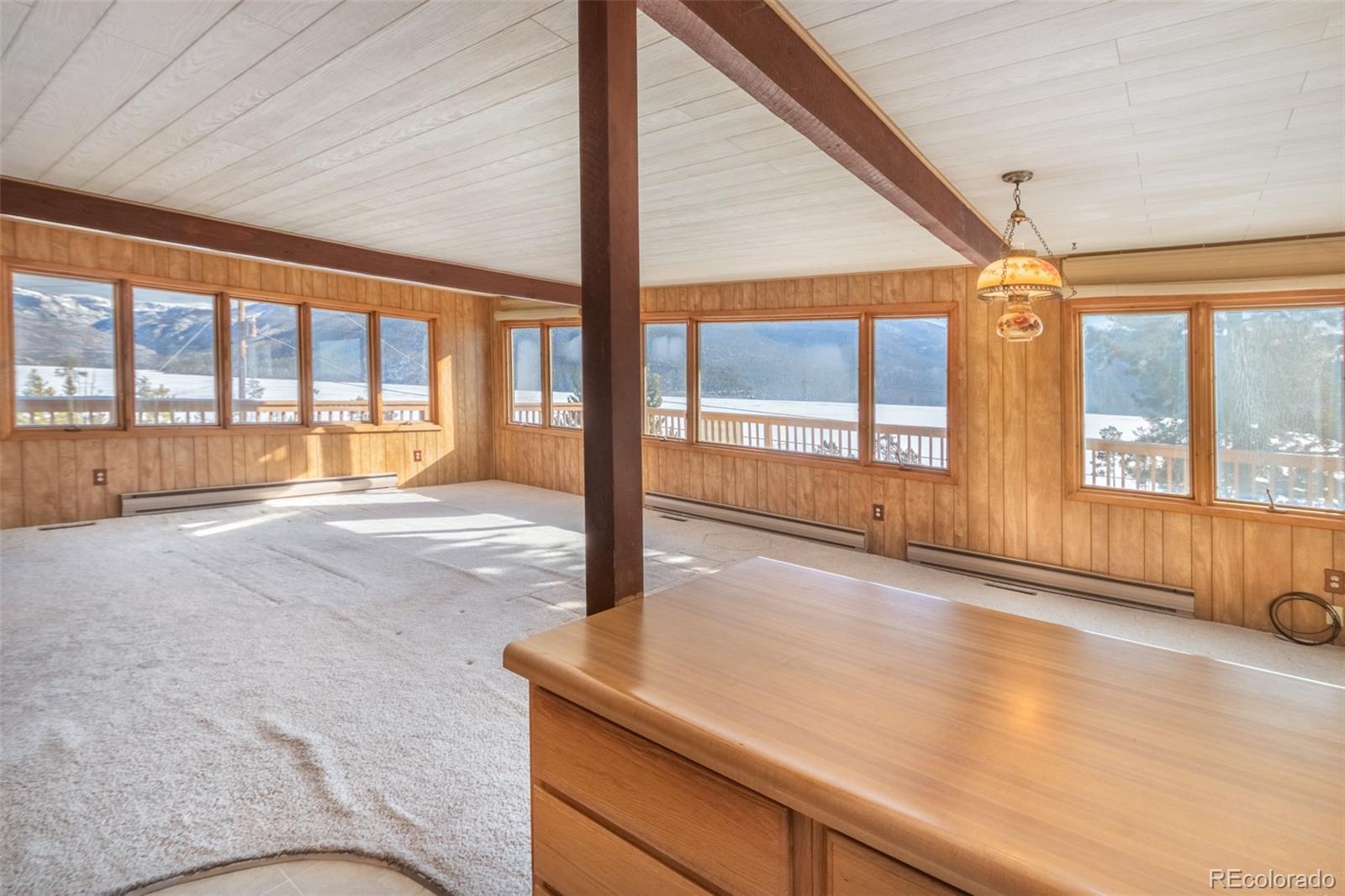 Lake access is right across the road! Breath-taking views across Shadow Mountain Lake towards the protected far shore which is Rocky Mountain National Park. Secluded on a hilltop, the home is on an acre and a quarter (3 lots on 3 acres) with a big circle driveway and lots of parking plus a big double garage. You can see everything; no one sees you. Great room with huge windows and large lake view deck. Also on the main level are the primary bedroom and bath with separate tub and shower. Upstairs is a giant sleeping loft which opens to a second private bedroom with bath. Views and privacy! Update to your own tastes R308557 Lyons Homestead: Lots K, L & M. # 12735 Highway 34. $1,045,000
