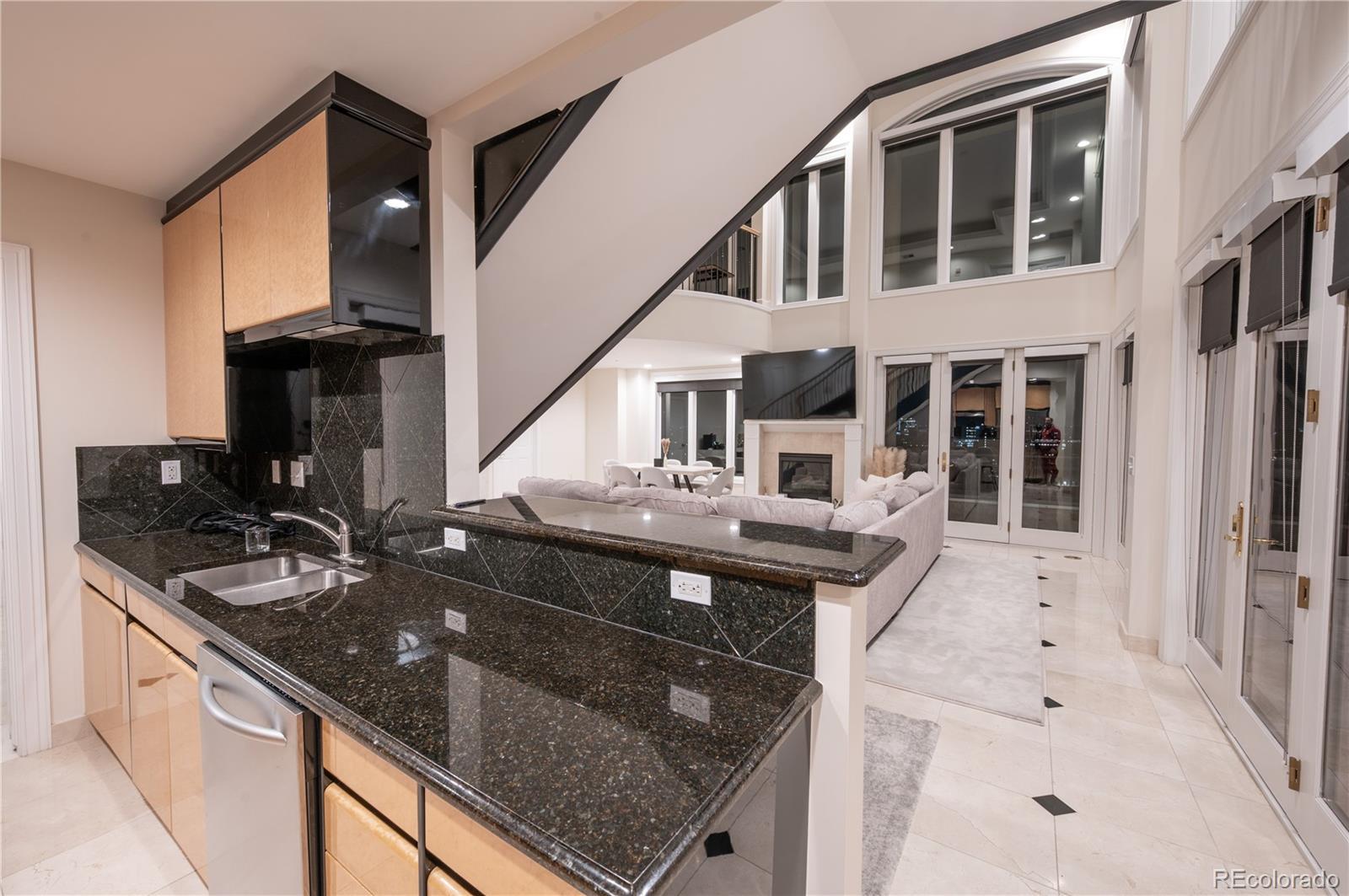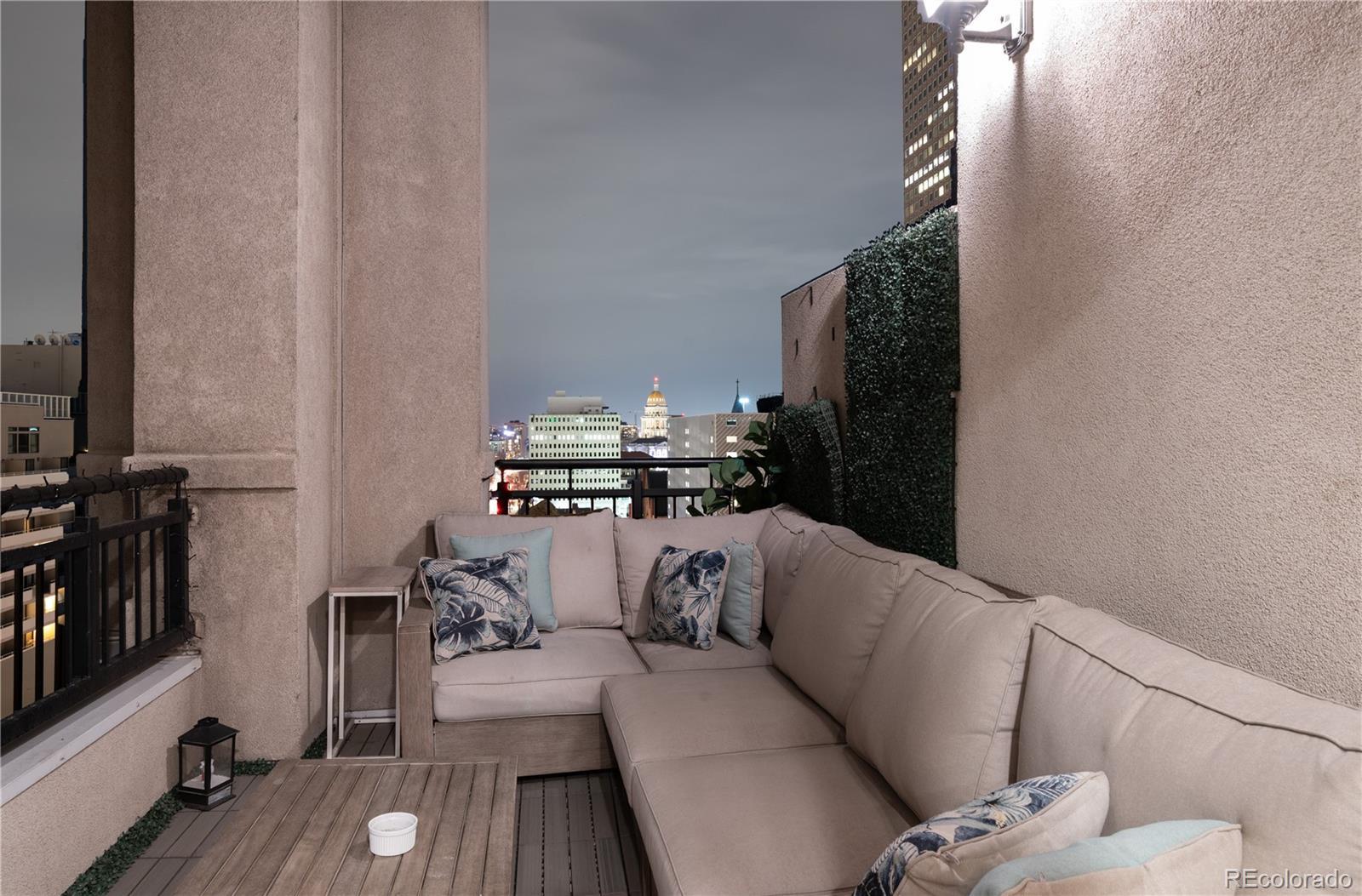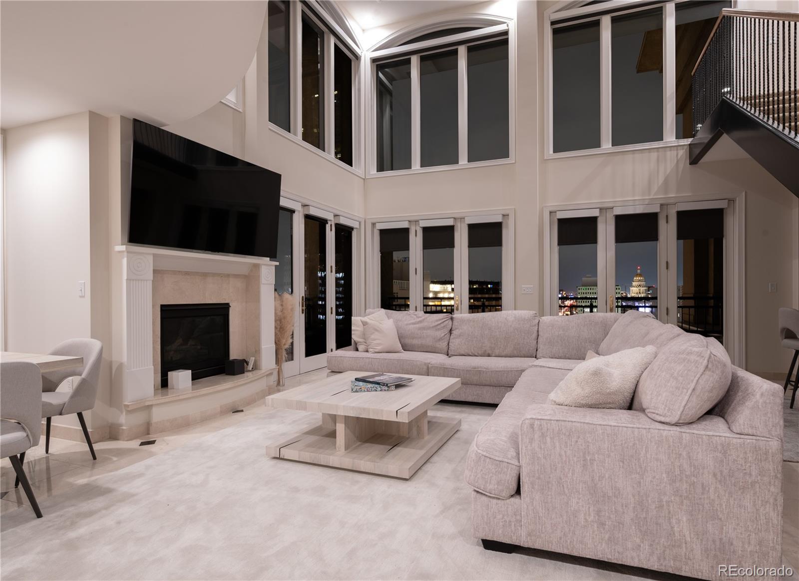 CITY VIEWS FROM PRESTIGOUS PORTOFINO PENTHOUSE TO LIVE AND ENJOY! The Portofino Tower in Denver is offering a unique opportunity to own a luxurious two-story, 2-bedroom, 2.5-bathroom penthouse. This residence offers an upscale, yet relaxed, atmosphere, featuring striking 20-foot-high ceilings and views towards the State Capitol building in the southeast. Abundant natural light permeates the open and airy layout. The main level includes a generous living area with an emphasis on open-concept design, a cozy fireplace, a dedicated dining space, remote-operated window coverings, and marble floors throughout. The kitchen is fully equipped with granite slab countertops, a breakfast bar, stainless steel appliances, and opens onto a spacious terrace, perfect for quiet mornings or social evenings. The expansive primary suite is a true retreat, complete with a sitting area, a large walk-in closet with an included washer and dryer, and a luxurious five-piece bathroom featuring a deep jetted soaking tub. A private terrace is accessible directly from the primary suite. The main level also houses a powder room and a second roomy bedroom with a five-piece en-suite bathroom and walk-in closet. The open loft space is versatile, perfect for a home office or a quiet library. Building Amenities The Portofino Tower provides residents with first-class facilities, including: Concierge services, a fitness center, Steam room and sauna Secure parking Wine storage lockers A guest suite for visitors (available for a nightly fee) This exceptional penthouse stands out in the competitive Denver real estate market, appealing to discerning buyers seeking both prestige and comfortable, high-end living. Close to all cultural, sports venues, restaurants, and all downtown Denver has to offer.