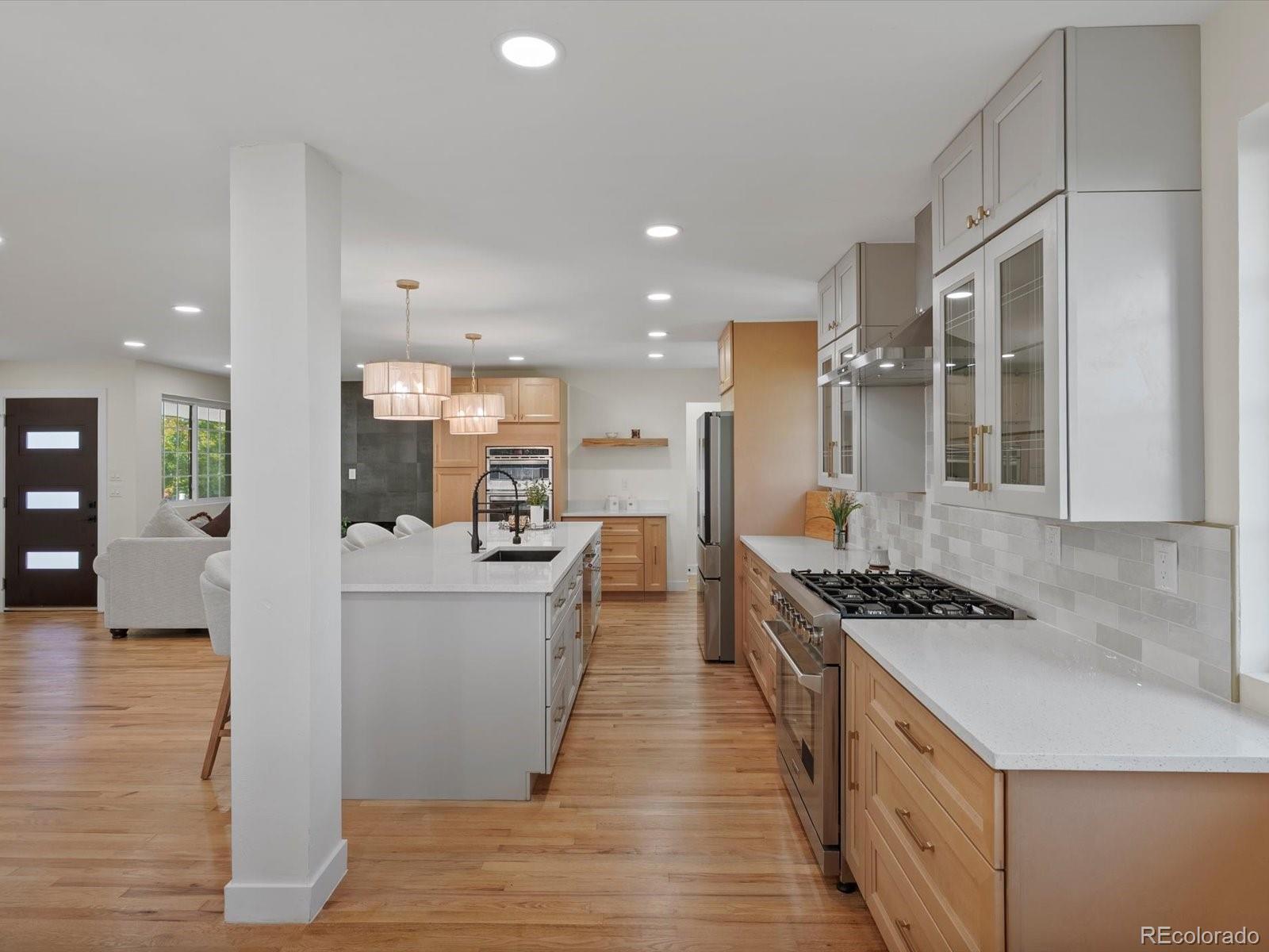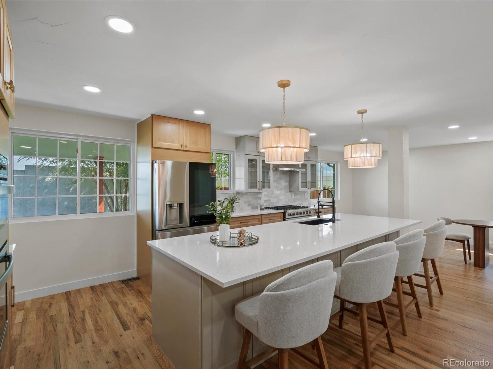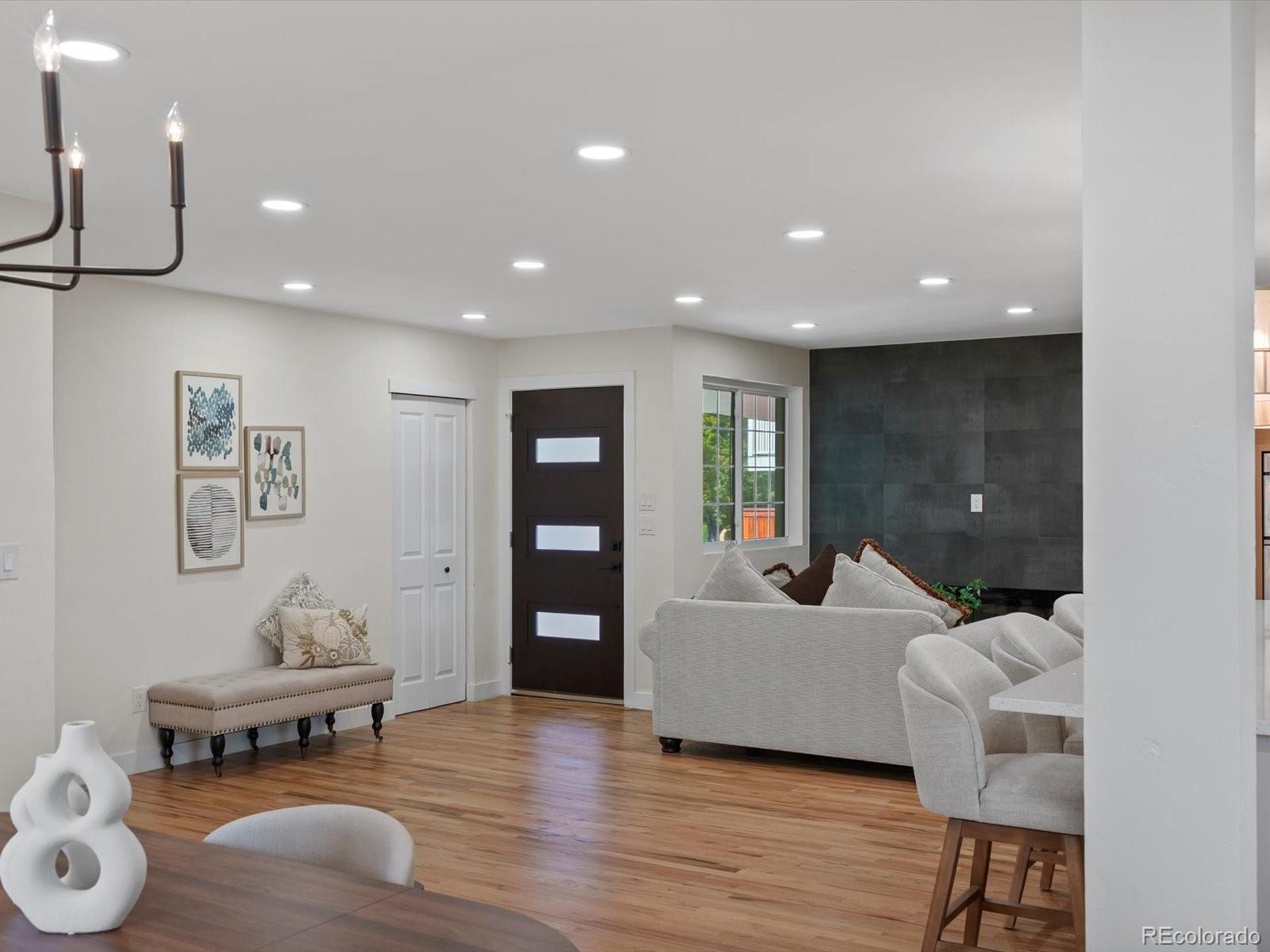 Stunning, Fully Remodeled Ranch in Southmoor Park – 3630 S Hillcrest Drive Welcome to this spectacular, move-in ready home located in the highly sought-after Southmoor Park neighborhood. Situated on a generous 10,019 sq ft lot, this completely renovated ranch has been thoughtfully redesigned with high-end finishes throughout. Every update is fully permitted and inspected, offering peace of mind for the new owner. From the moment you walk in, you'll be captivated by the open-concept floor plan, abundant natural light, and luxurious touches at every turn. The gourmet kitchen is a true centerpiece, featuring custom cabinetry, quartz countertops, a large island, and commercial-grade appliances—perfect for cooking enthusiasts or families who love to gather in the kitchen. A cozy fireplace adds warmth and charm, seamlessly connecting the kitchen to a flexible dining space, ideal for intimate dinners or larger gatherings. The main-level primary suite is a true retreat, offering a spa-like en-suite bathroom and a spacious walk-in closet. An additional bedroom and a beautifully appointed full bathroom complete the main level. Downstairs, the fully finished basement provides even more living space with a custom wet bar, an expansive family room/media center, a large guest suite with a ¾ bath and ample closet space, plus two more bedrooms and a stunning full bathroom. Every inch of this home showcases custom finishes and attention to detail. Located in a prime central location with easy access to I-25, the Denver Tech Center, Cherry Creek, and Downtown Denver, this home offers the perfect blend of luxury, convenience, and style. Features Include: New HVAC system, water heater, electrical system and lighting throughout the house, fencing, landscaping design, interior design, paint, refinished floors, exterior and interior doors, and totally finished garage. Don't miss this opportunity, schedule your private showing today.