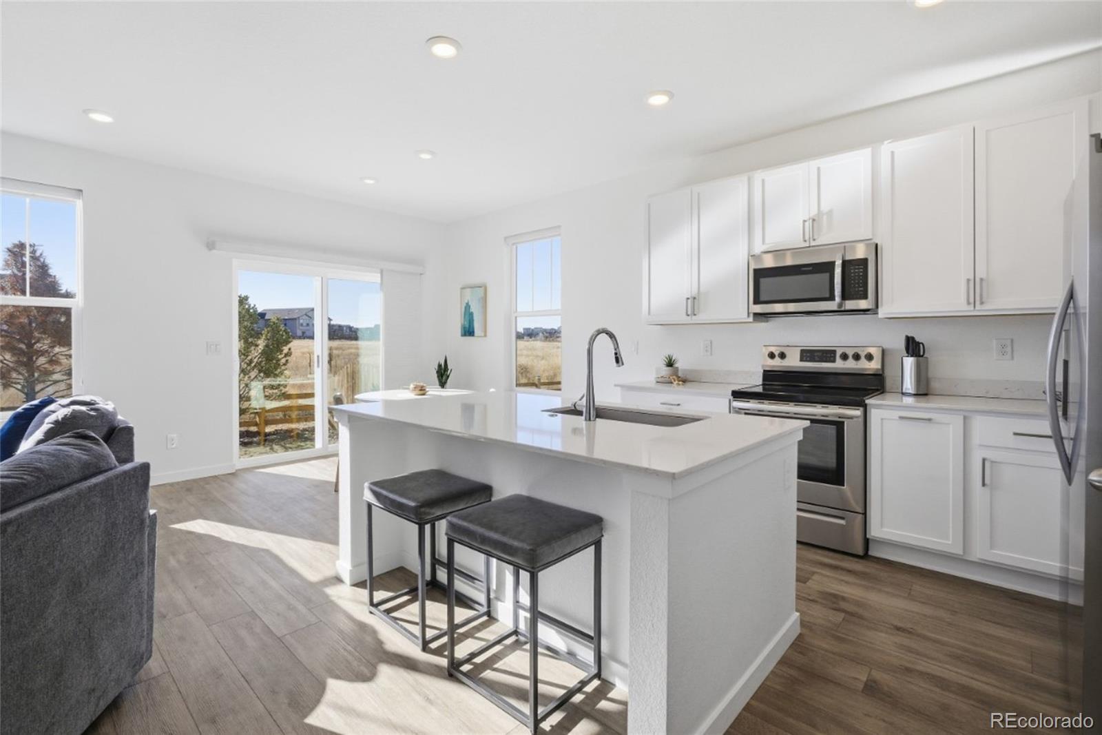 Nearly New Ranch Home in Legacy Village | 3 Beds | 2 Baths | 2-Car Garage Welcome to this 2023-built ranch home in Legacy Village! A well-maintained, move-in ready property backing to open space with no rear neighbors and plenty of room to enjoy Colorado evenings and sunset views. Step inside to an open-concept living area with abundant natural light, vinyl flooring, and a kitchen complete with stainless steel appliances, generous cabinetry, and a center island that connects seamlessly to the living and dining spaces. The primary suite includes a private full bathroom, and two additional bedrooms, plus a second full bathroom offer practical and flexible living space. Additional features include: - Fully fenced, professionally landscaped backyard - Window coverings already installed - Attached 2-car garage - Crawlspace for additional storage - Backs to open space This ranch-style home combines quality construction with a desirable location and outdoor views. Schedule your private tour today!
