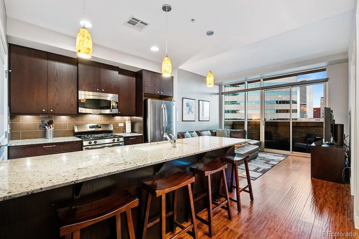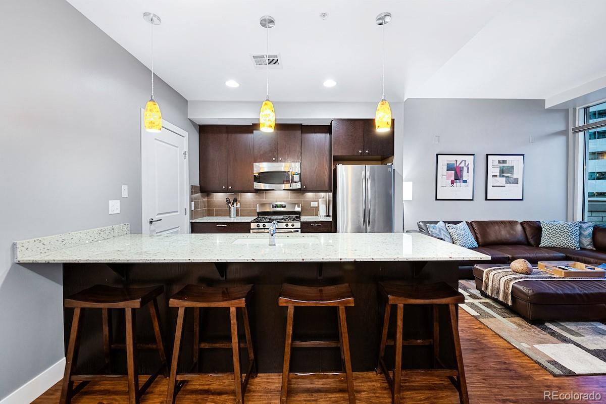 Indulge in the ultimate Downtown Denver lifestyle with this luxurious 1-bedroom, 2-bath residence featuring truly ALL-INCLUSIVE living—no separate utility bills and no extra fees for electricity. Step inside to soaring floor-to-ceiling windows that flood the home with natural light, showcasing a sleek, modern design. The open-concept layout seamlessly connects the living, dining, and kitchen areas, creating an expansive and inviting space ideal for entertaining or unwinding in style. A rare half bath off the main living area adds everyday convenience, while the spacious primary suite offers generous closet space and a beautifully appointed 5-piece ensuite. Enjoy Colorado’s sunshine from your private 100-square-foot balcony, perfect for morning coffee or evening relaxation with city views. Additional highlights include first-level covered parking for easy, secure access and exceptional walkability to public transportation, premier restaurants, nightlife, and Denver’s renowned bike trails. For one simple, predictable monthly cost, covers all utilities, HOA fees, internet, DirecTV, and parking—making this a genuinely hassle-free rental with no surprise expenses. This is a rare opportunity to enjoy elevated, all-inclusive living in the heart of Downtown Denver. Don’t miss it.