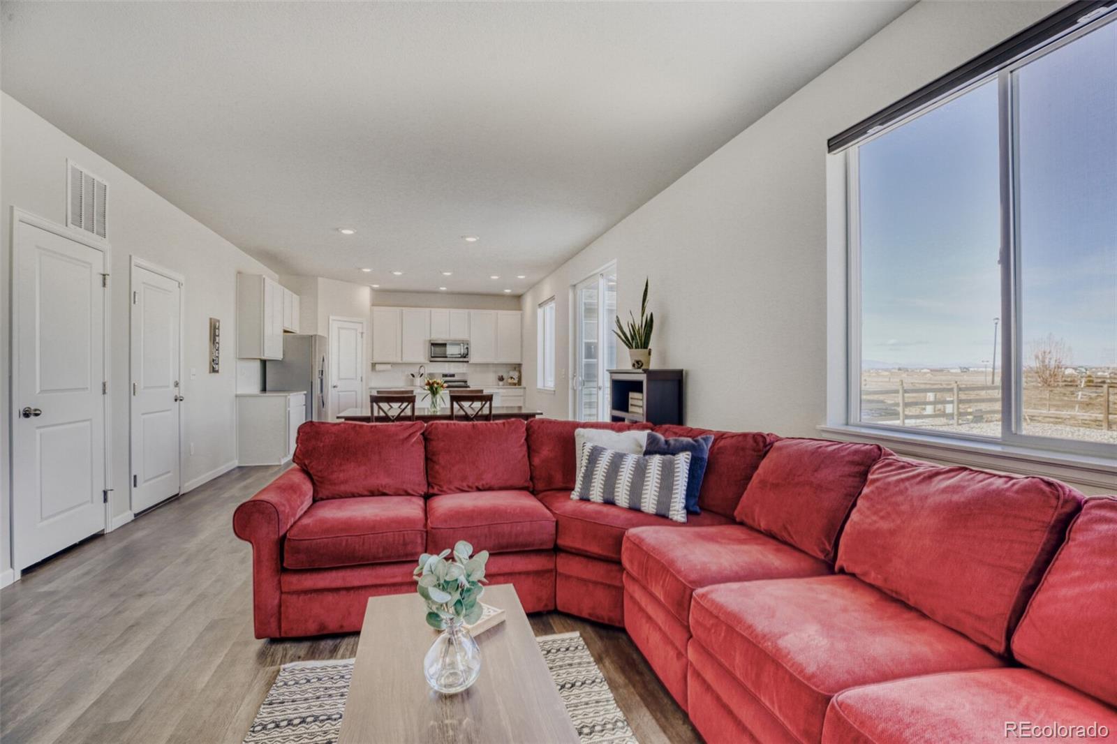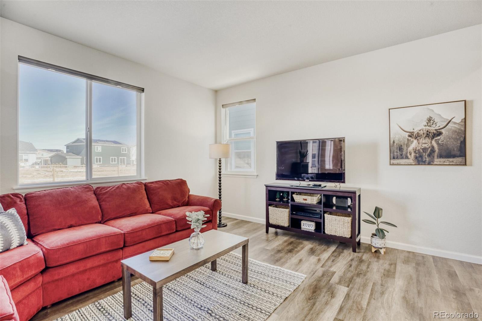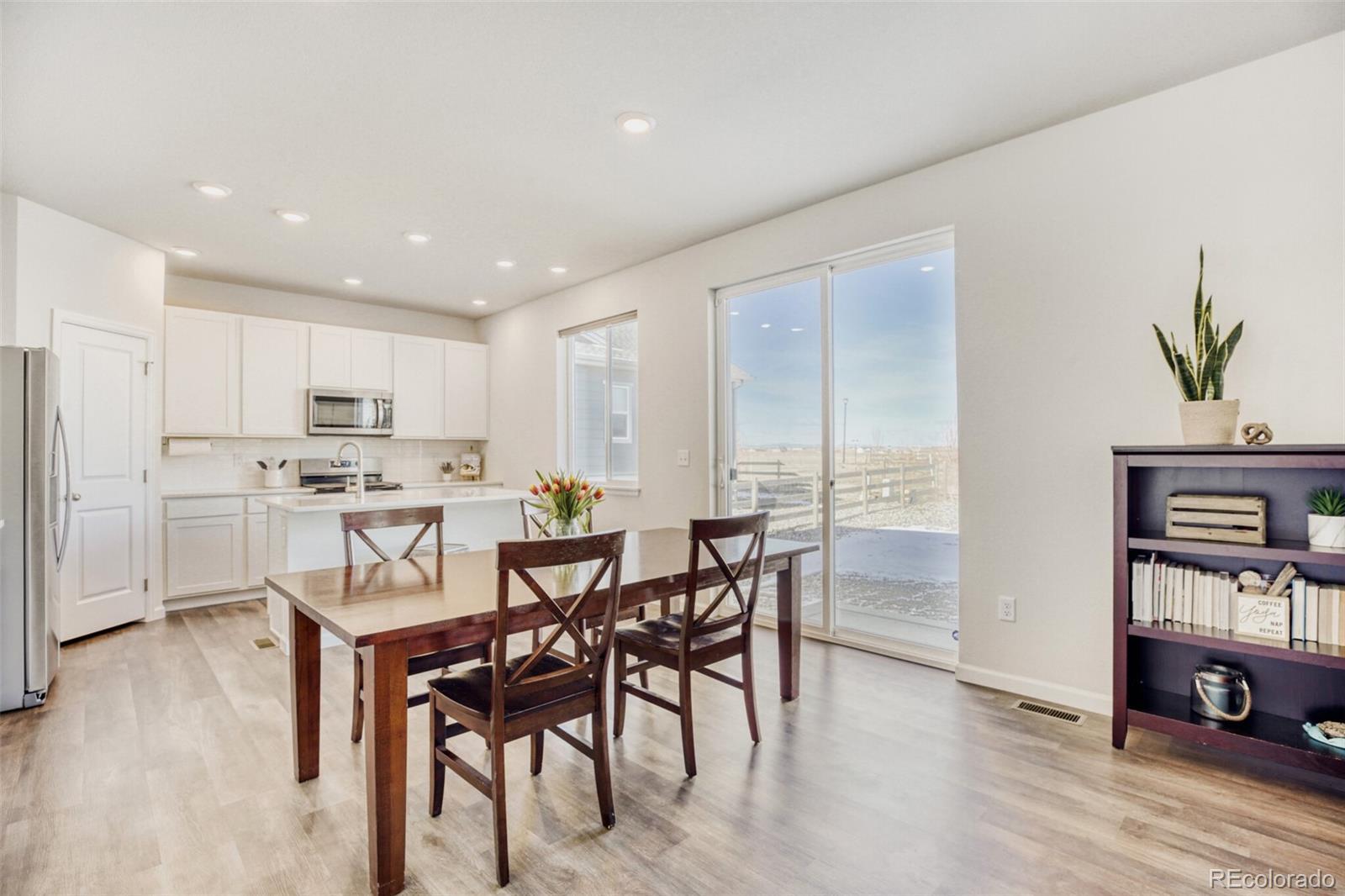 Welcome home to this move-in-ready Powell model in Red Barn Meadows! This home combines thoughtful upgrades with the advantages of an already established home. Save on new construction costs while enjoying a home with completed landscaping, window blinds, and added upgrades already in place. The open-concept layout is filled with natural light, and the kitchen features upgraded Whirlpool stainless steel appliances, including the refrigerator, plus a Whirlpool washer and dryer. The primary suite offers a spacious walk-in closet and private en-suite bath, with ceiling fans throughout for added comfort. Enjoy outdoor living on the custom backyard patio with a full sprinkler system and established landscaping. With no direct neighbors behind, the home backs to a public walking trail and offers open views and mountain scenery. Red Barn Meadows will feature a pool, clubhouse, farmers market, and miles of trails—many already built—creating a growing community designed for connection and outdoor living. Conveniently located near I-25 and within the highly rated St. Vrain Valley School District (Mead Feeder), this is the home you've been waiting for!