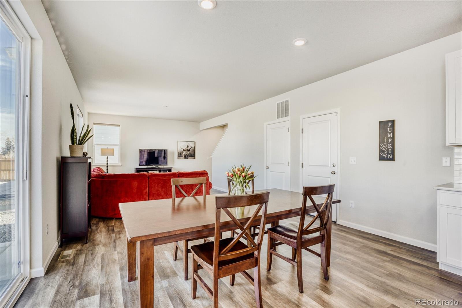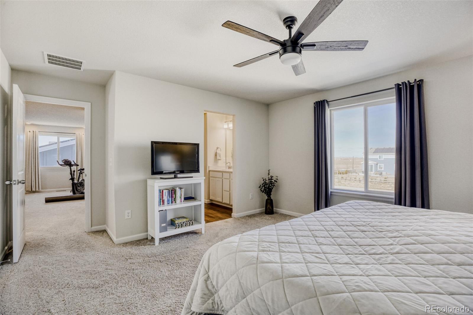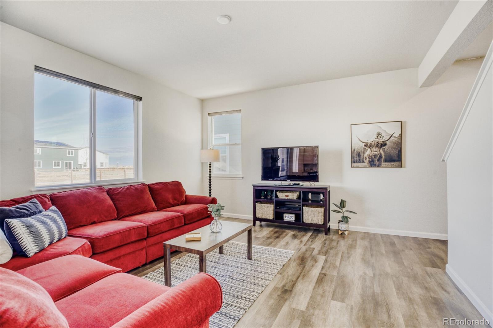 Welcome home to this move-in-ready Powell model in Red Barn Meadows! This home combines thoughtful upgrades with the advantages of an already established home. Save on new construction costs while enjoying a home with completed landscaping, window blinds, and added upgrades already in place. The open-concept layout is filled with natural light, and the kitchen features upgraded Whirlpool stainless steel appliances, including the refrigerator, plus a Whirlpool washer and dryer. The primary suite offers a spacious walk-in closet and private en-suite bath, with ceiling fans throughout for added comfort. Enjoy outdoor living on the custom backyard patio with a full sprinkler system and established landscaping. With no direct neighbors behind, the home backs to a public walking trail and offers open views and mountain scenery. Red Barn Meadows will feature a pool, clubhouse, farmers market, and miles of trails—many already built—creating a growing community designed for connection and outdoor living. Conveniently located near I-25 and within the highly rated St. Vrain Valley School District (Mead Feeder), this is the home you've been waiting for!