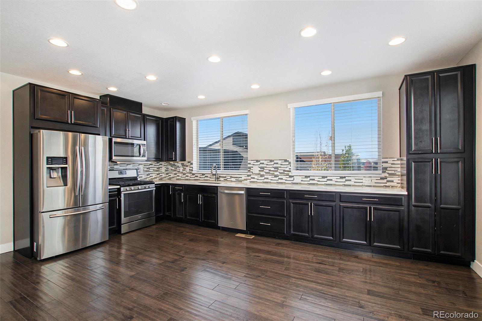Bathed in natural light from sunrise to sunset, this home feels warm, open, and effortlessly inviting. In the heart of the home, a modern kitchen shines with stainless steel appliances and sleek quartz countertops, balancing style with practicality. Large windows frame mountain views, adding a touch of Colorado’s beauty to your daily routine. The open-concept design flows beautifully from room to room, creating a sense of space and connection — perfect for entertaining or simply enjoying everyday life. Set within a quiet, friendly neighborhood, the home offers both peace and convenience. You’re just a short drive from DIA, with easy access to major highways and the light rail, making commutes and travel a breeze. Weekends are filled with options — Central Park’s shops, restaurants, and cafés are only minutes away, while community pools and parks invite you to relax, play, and connect close to home. This is more than just a place to live — it’s a home that captures the perfect balance of comfort, connection, and Colorado lifestyle.