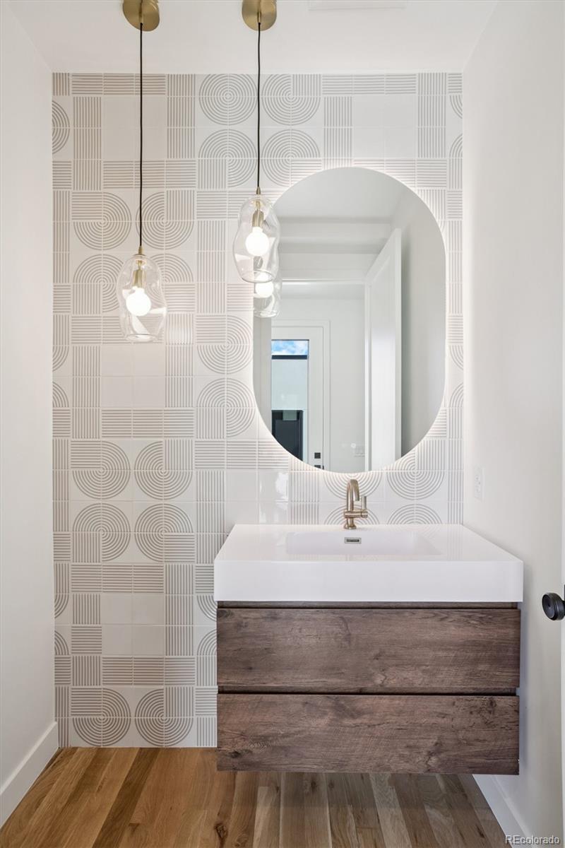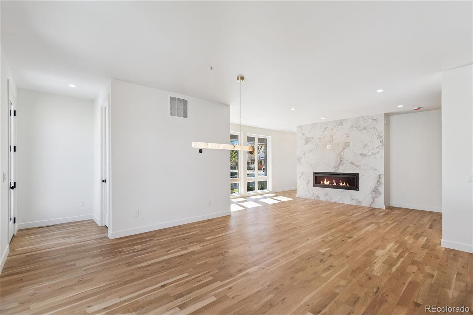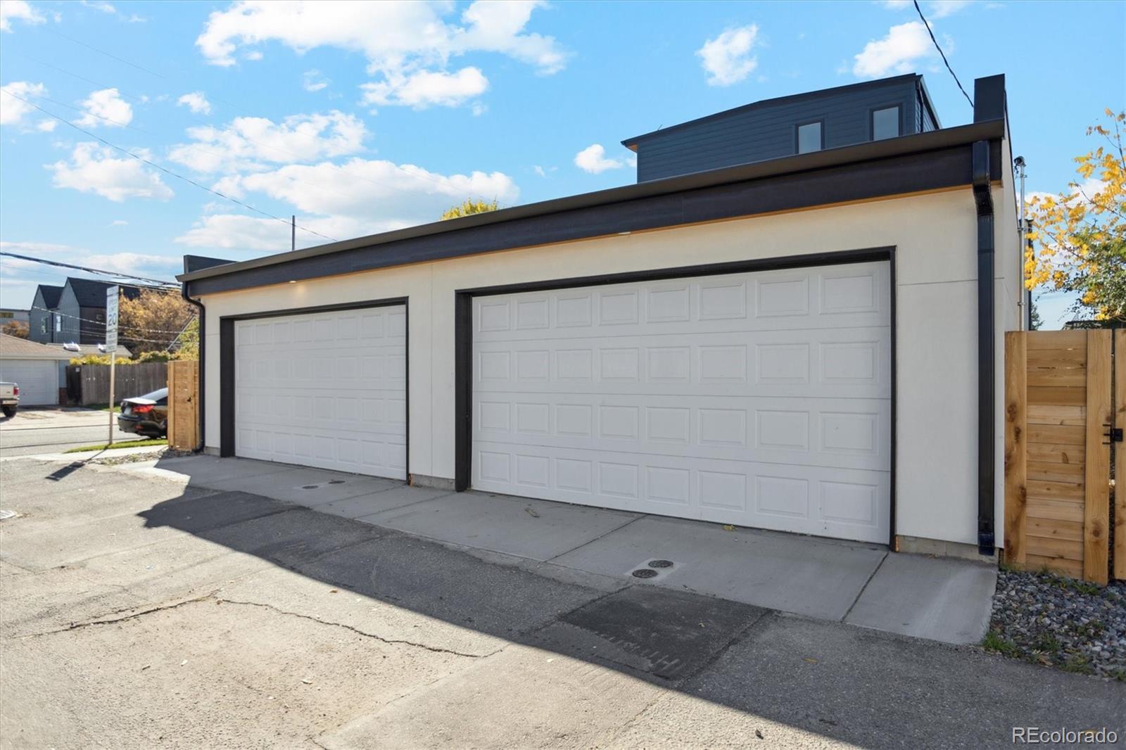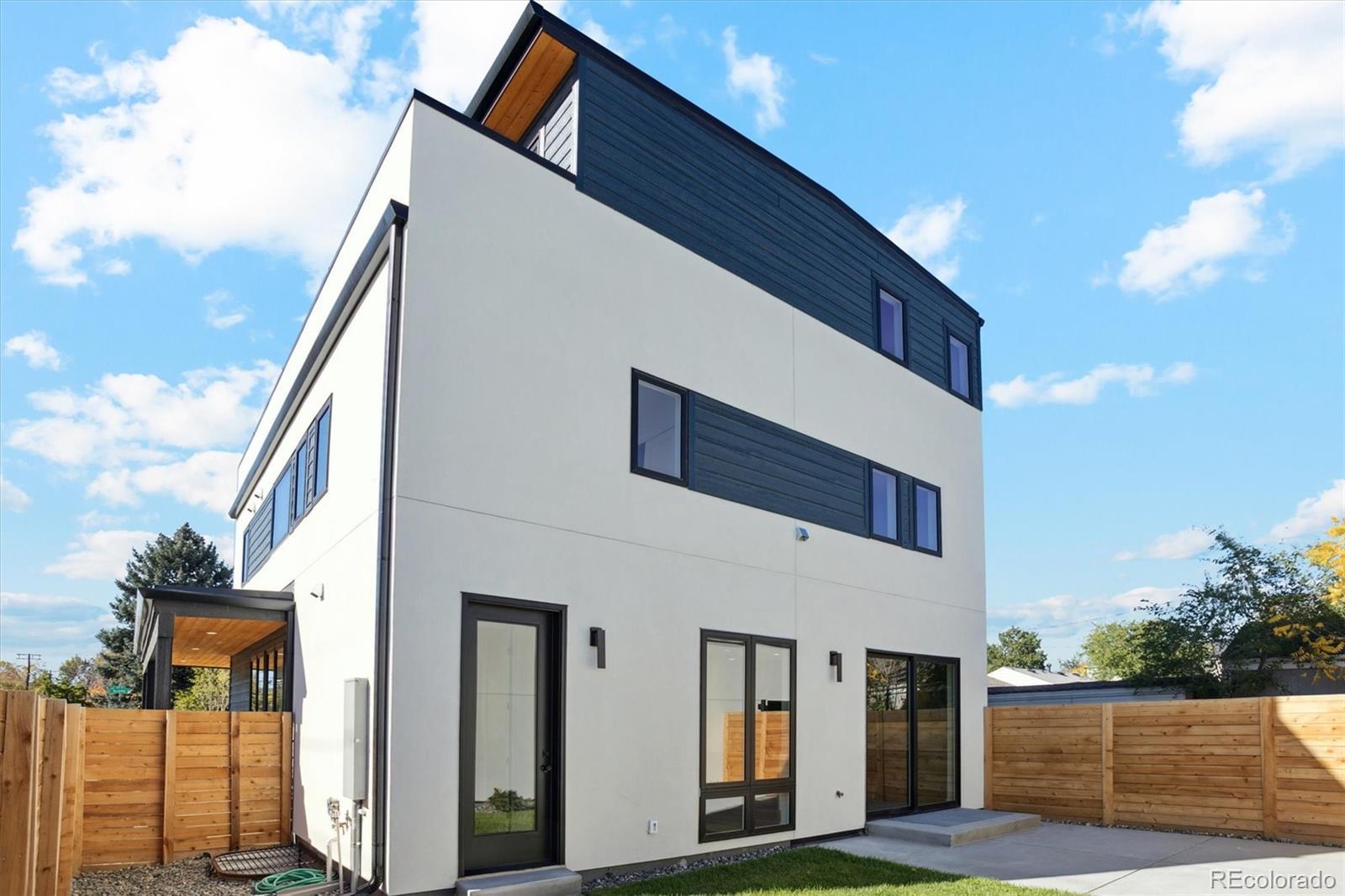 Where contemporary design meets Colorado lifestyle — this home defines elevated urban living. Flowing like a single-family residence, this thoughtfully designed half duplex delivers 3,520 sq ft of sophisticated style. The open-concept main level showcases a designer kitchen with imported stone countertops, moody black-and-gold appliances, walk-in pantry, and sleek slab backsplash. Real hardwood floors set a refined tone while a modern linear fireplace and statement lighting create a warm, inviting space. Every finish feels intentional — blending architectural edge with a softer, designer-curated aesthetic rarely found in new construction. Up the striking steel-and-wood monorail staircase, three of the five bedrooms sit on one level, including a primary suite with a spa-inspired bath featuring heated floors, a fluted soaking tub and dual vanity. The third level offers incredible flexibility with an additional private bedroom, extra-large bonus room, wet bar w beverage fridge, full bath, and rooftop deck. The finished basement impresses with 9-ft ceilings, a spacious recreation room, custom wet bar, and private guest suite with full bath. Outdoor living shines with a large, private backyard with south sun exposure. Direct access to the 2-car garage, EV-ready (220 V). Built to Denver’s newest Green Code, this all-electric home offers lower bills, cleaner air, and superior efficiency. Eco features - EcoBee thermostat, Ring doorbell, WiFi-enabled heat pumps, programmable lighting & fireplace, UV Windows. No HOA. Party Wall Agreement. Buyer to verify taxes & square footage. Schedule your private showing today — exceptional homes like this are rare.