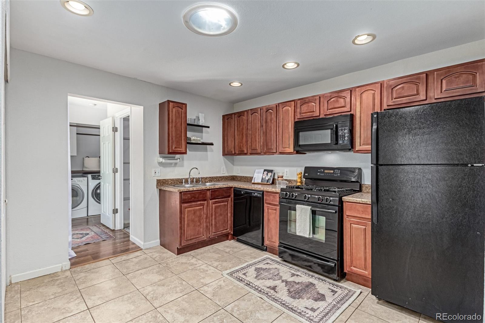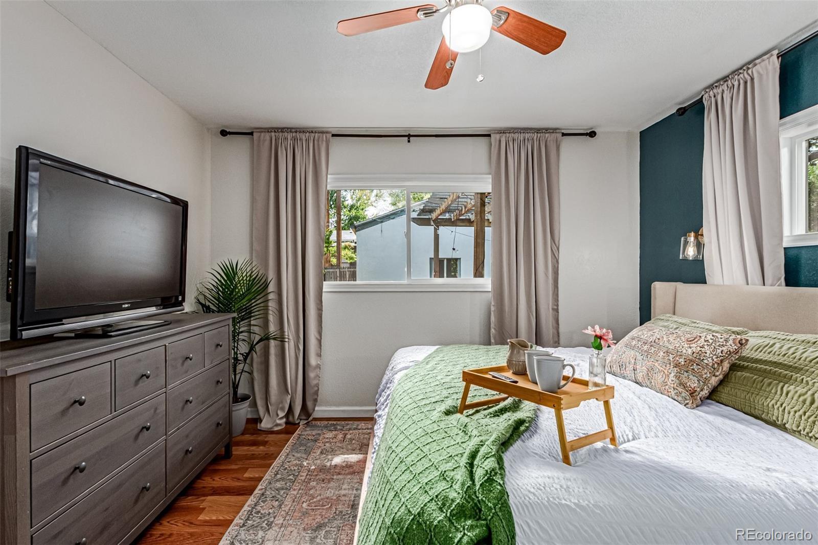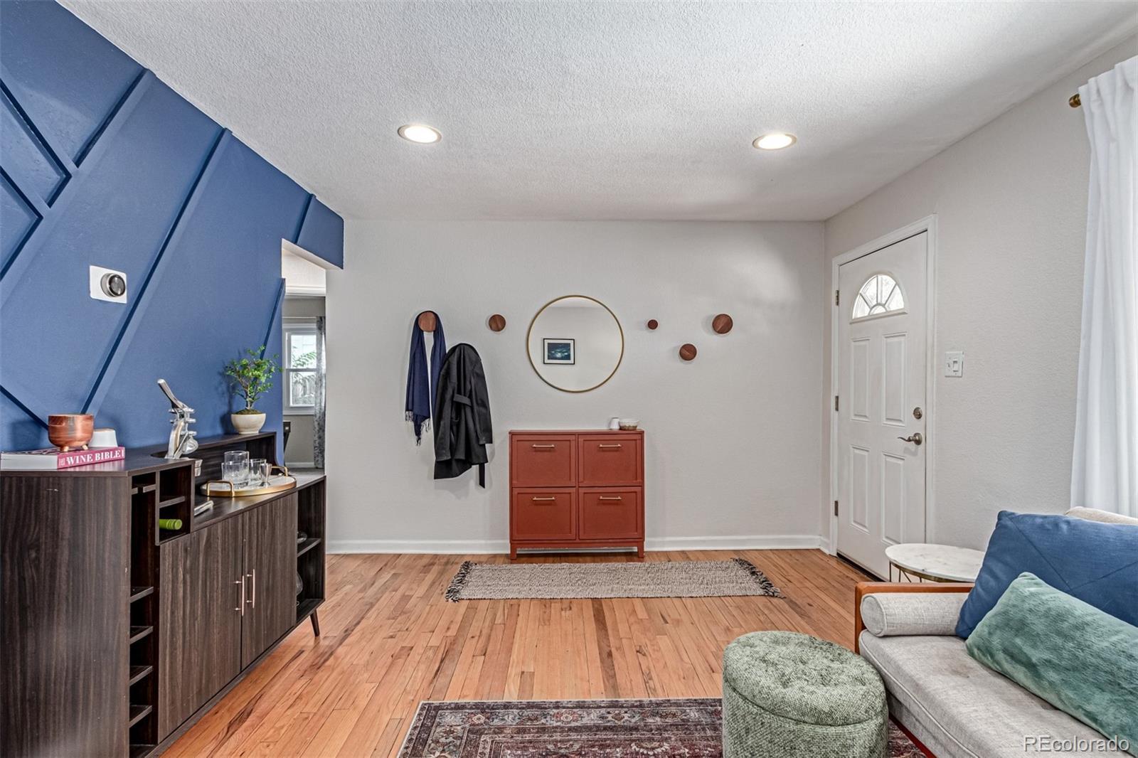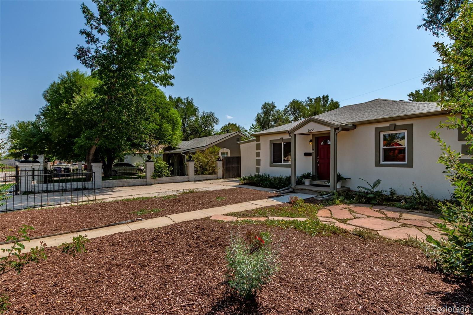 Beautifully updated 4-bedroom ranch with owned Tesla solar, a private backyard retreat, and rare single-level living — all for under $500K in central Denver. Set on a quiet, tree-lined block just minutes from downtown, this light-filled home delivers more space, style, and comfort than anything else in its price range. The thoughtfully expanded layout offers four true bedrooms and two remodeled baths — including a spa-inspired primary suite with dual sinks, oversized walk-in shower, and a custom-built walk-in closet. The bright, open kitchen features warm wood cabinetry, solid-surface counters, gas range, and two pantries (one walk-in) — a rare find at this price point. Hardwood floors, newer double-pane windows, and abundant natural light flow throughout. French doors open to a private backyard oasis with a pergola, raised garden beds, and a wraparound patio — perfect for outdoor dining or quiet evenings by string lights. Additional highlights include owned Tesla solar panels (no lease), RV parking, a detached garage, and a dedicated laundry nook with built-in storage and folding counter. Recent system upgrades provide added peace of mind and efficiency throughout. Located in Denver’s desirable Valverde neighborhood, this move-in ready home combines energy efficiency, modern design, and effortless access to downtown, I-25, and the mountains. Where character meets comfort — and value meets opportunity.