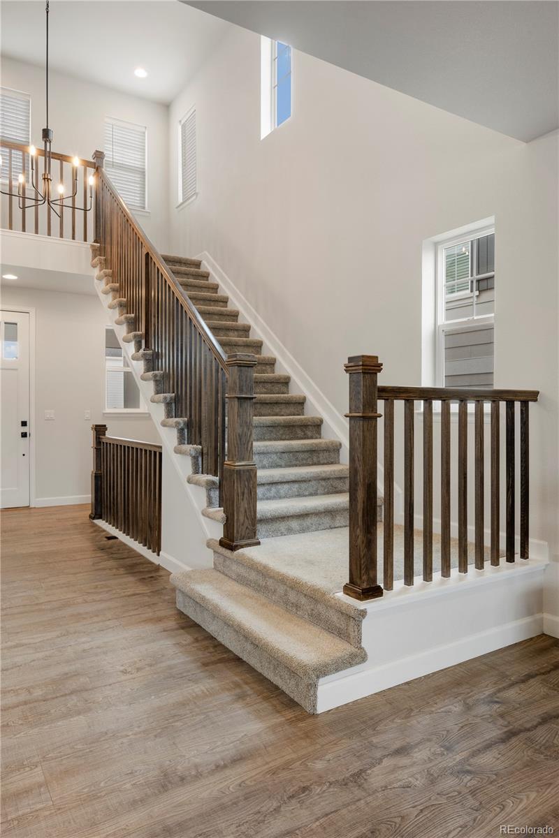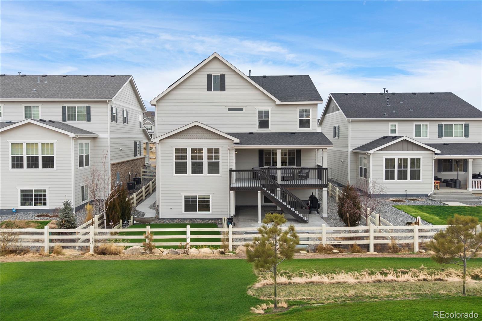 Stunning 6 bedroom, 4 bath home in Southshore with a premium location backing to open space, offering privacy and beautiful views. This thoughtfully designed home features a professionally finished basement, gorgeous upgrades throughout, including a cook's dream kitchen with stainless appliances, double ovens, gas cooktop, quartz counters, an upper-level laundry room, and a main-floor bedroom with a 3/4 bath—perfect for guests or multigenerational living. This lovely home also includes 2 1/2 car garage, solar panels, and app-controlled, color-changing Gemstone outdoor lighting system! Enjoy the Southshore lifestyle with resort-style amenities, including 2 fitness centers, 3 pools, a lakehouse and lighthouse facility, clubhouse, boathouse with pond, parks, playgrounds, and miles of neighborhood trails. Ideally located in the highly desirable Cherry Creek School District, this home combines space, style, and an unbeatable community setting.