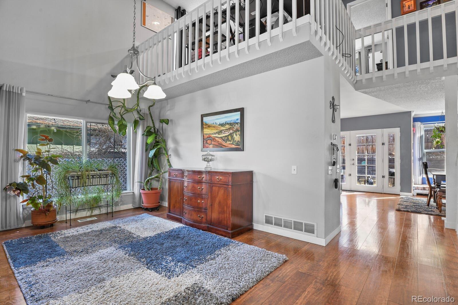 This stunning home seamlessly blends style with comfort in a truly unique community. This is a rare chance to own the large Dennison model home with 3605 square feet in this highly sought-after neighborhood, perfect for hosting gatherings with its open floor plan and generous space. Enjoy the formal living and dining rooms with vaulted ceilings leading to a huge kitchen with a large pantry, an eight-foot island topped with butcher block (including a mini fridge/wine cooler and trash compactor), and abundant cabinet storage. The open layout is ideal for entertaining and family get-togethers, with bright spaces and a cozy brick wood-burning fireplace for winter warmth. Mature landscaping and a private, fenced backyard with a large patio extending your entertaining options with mature rose bushes. Upstairs, the expansive Primary Suite boasts quartz double sinks, an oversized walk-in shower with a glass door, and a large barn door for privacy. The master suite also offers dual walk-in closets and a custom-built window seating area with storage and is accompanied by three additional bedrooms and a versatile loft/office space with built-in shelving, making this the ideal 4 bed/4 bath home you've been searching for. The basement remains unfinished except for the full bathroom, providing plenty of space to customize as you wish and offers great potential for extra living space, a bedroom, and ample storage. As an added bonus, seller will pay off solar system at close. Located less than a block from the lake and trails, fishing or take evening strolls while enjoying mountain sunsets. Residents enjoy year-round community events provided by the HOA and easy access to the park, lake, large pool, tennis courts, pickle ball and clubhouse for private gatherings. Don’t miss this one and schedule your showing today! Guild Mortgage is offering to pay 1% of your interest rate for one year with a lender-paid buydown. Contact Chris Sloan at 720.271.8969 for more information.