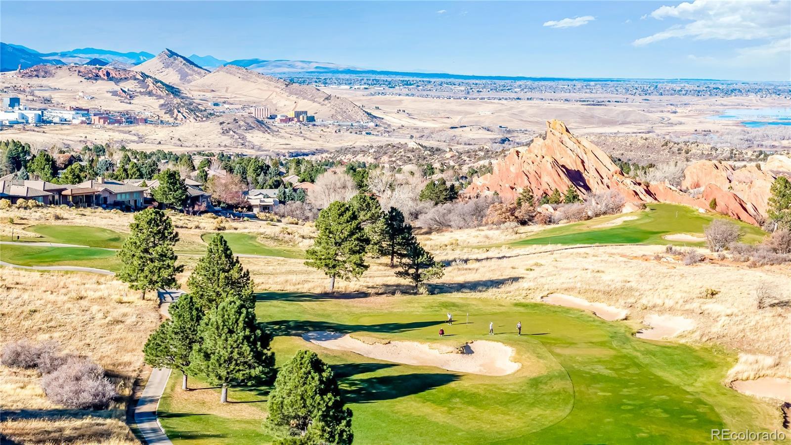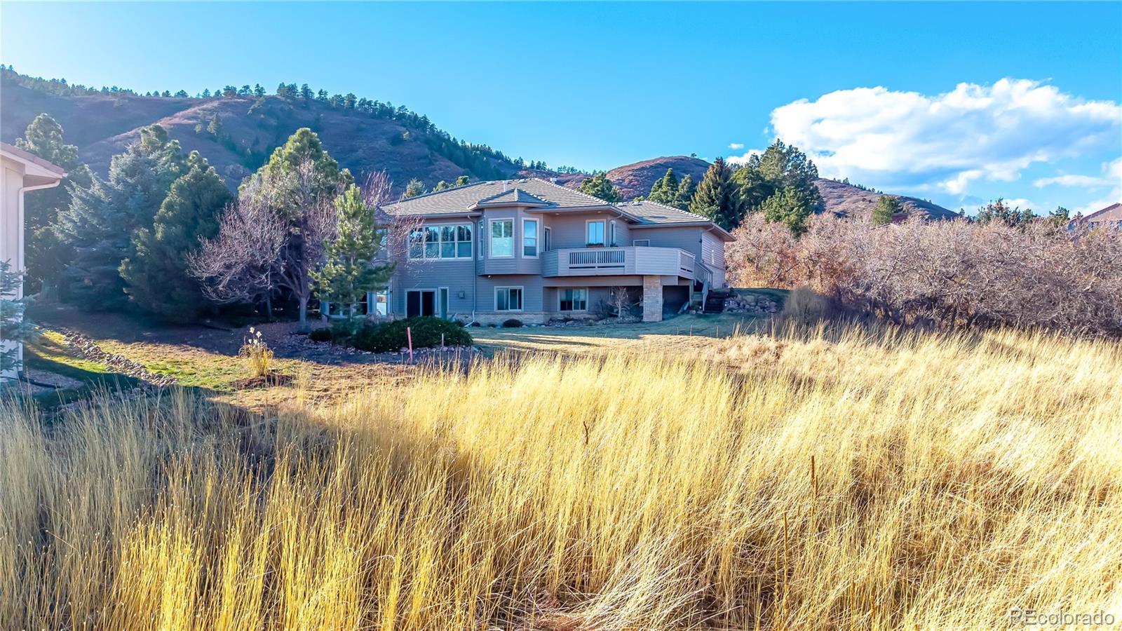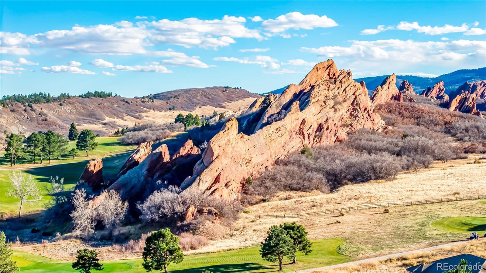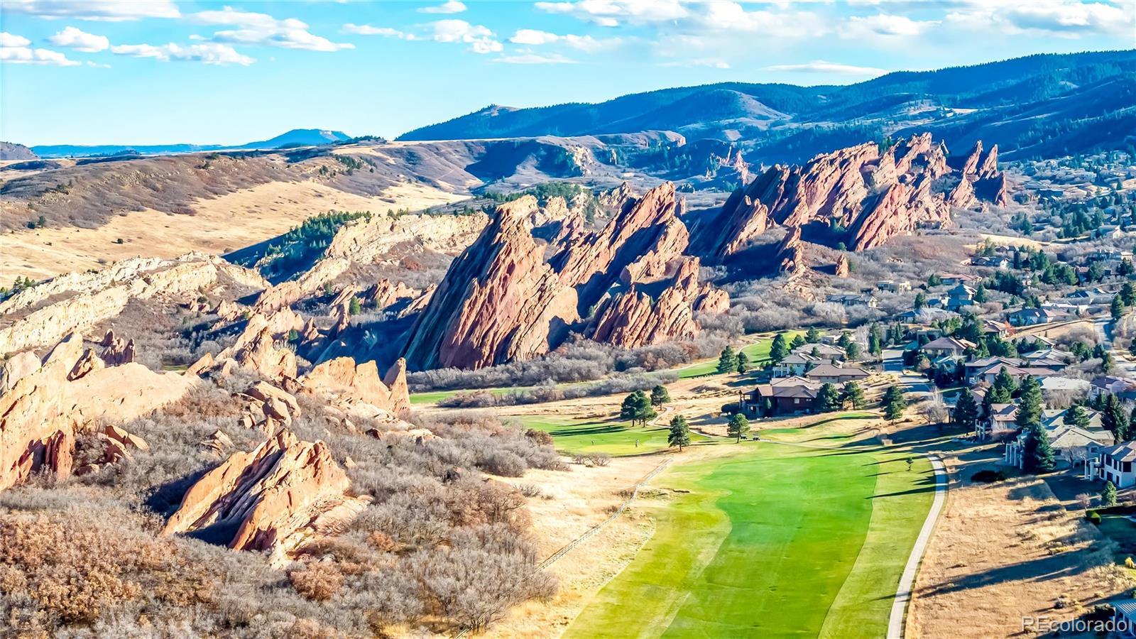 This updated ranch home backs to Arrowhead Golf Course in highly sought-after Roxborough Park, offering sweeping foothill views and exceptional privacy. The light-filled main level showcases natural hickory hardwoods, plantation shutters, and thoughtfully updated kitchen and baths. Upon entry, a stylish study sits to the right, featuring an imported antique fireplace surround from England, custom built-ins, glass French doors, and a closet-allowing flexible use as a bedroom. The elegant formal dining room impresses with raised-panel wainscoting, a coffered ceiling, and a recessed hutch niche for added architectural charm. The inviting great room offers a two-sided fireplace shared with the kitchen, custom built-ins, hardwoods, and tranquil golf course views. The gourmet kitchen is outfitted with slab granite, a center island, stainless appliances, a walk-in pantry, and a sunny breakfast nook. The primary suite is a true retreat, complete with a brand-new 5-piece bath featuring a freestanding soaking tub, frameless glass shower, dual vanities with quartz countertops, and separate walk-in closets. A functional laundry room with sink, hanging space, storage cabinetry, and mudroom, completes the main level. The walk-out lower level offers endless possibilities with a spacious recreation room anchored by a gas fireplace, plus a bonus room ideal as a guest suite or media room (or open the wall to create one expansive entertainment space). Two additional bedrooms, a beautifully updated full bath, and a storage/workshop area round out the lower level. Additional highlights include a 3-car garage with extra-deep bay, a level usable lot, and unparalleled golf course and foothill views from a peaceful cul-de-sac setting. Enjoy the perks of golf-course living—without stray golf ball concerns. Outdoor adventurers will love the miles of nearby trails and unmatched proximity to Roxborough State Park, Waterton Canyon, Chatfield State Park, and access into Pike National Forest.