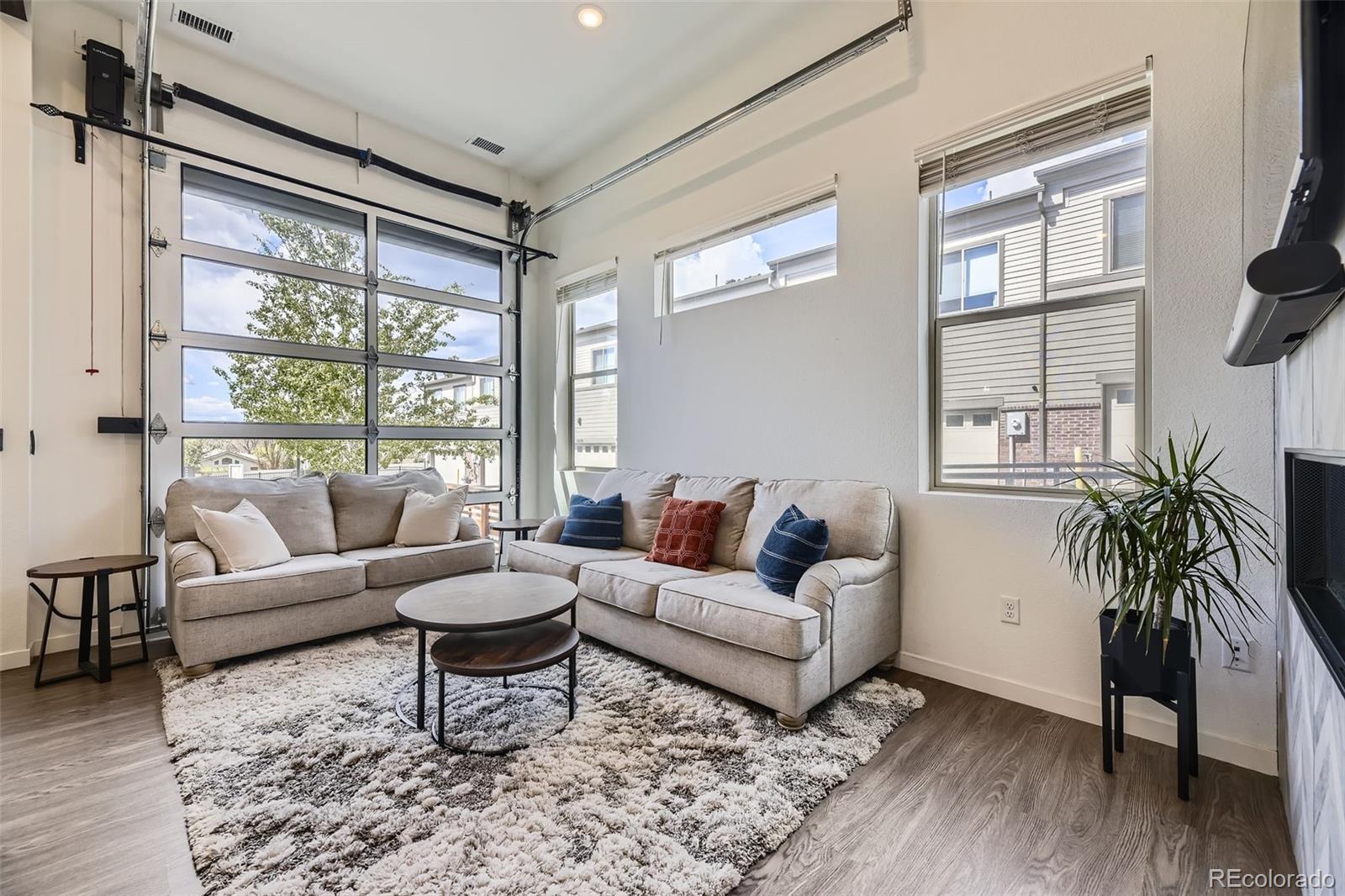 Incredible Mountain Views, Luxury Upgrades, and low HOA! This stunning 3-bed, 3-bath home features 12ft main-level ceilings, luxury vinyl flooring, granite countertops, stainless steel appliances, and a unique urban-style garage door that opens from the living room—perfect for indoor/outdoor Colorado living. Seller-added shade screen provides added comfort and protection. Bright, open layout ideal for entertaining or relaxing by the fireplace. Upstairs offers a spacious primary suite with en-suite bath and mountain views, plus two additional bedrooms, full bath, and a versatile loft/office. 2-car attached garage pre-wired for EV charging. Low-maintenance living just 0.4 miles from Bear Creek Trail and minutes to Red Rocks. Easy access to US-285, C-470, and I-70. HOA covers water, sewer, trash, snow removal, and roof maintenance. Don't miss this great opportunity!