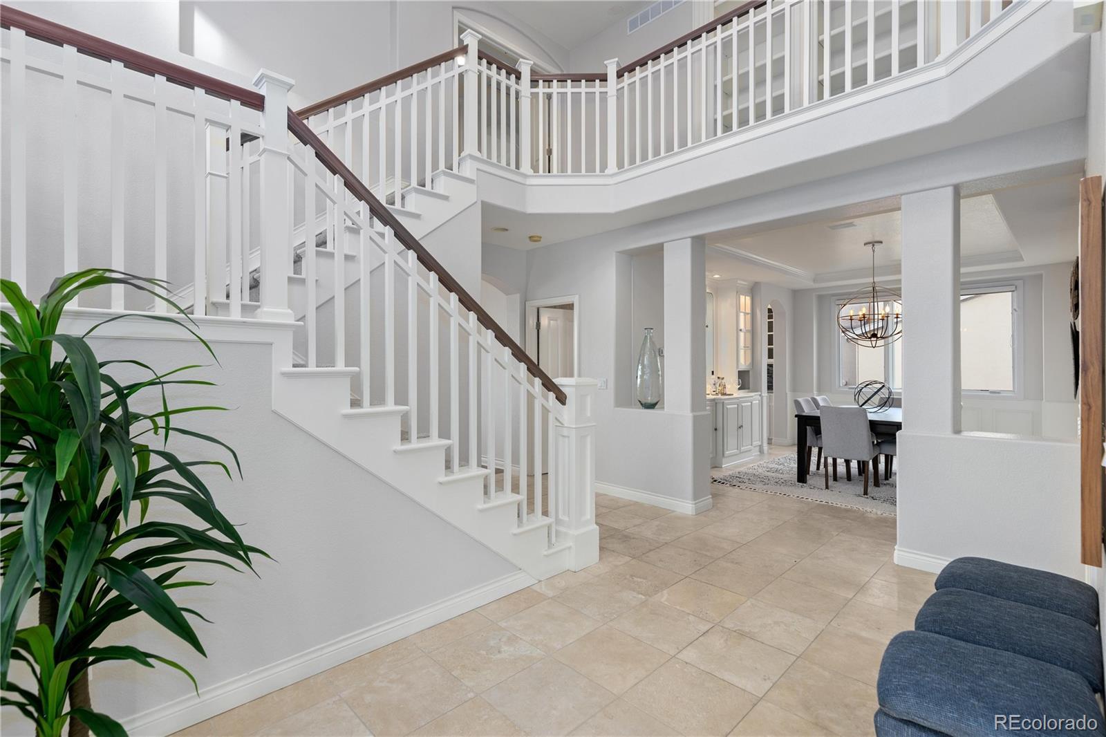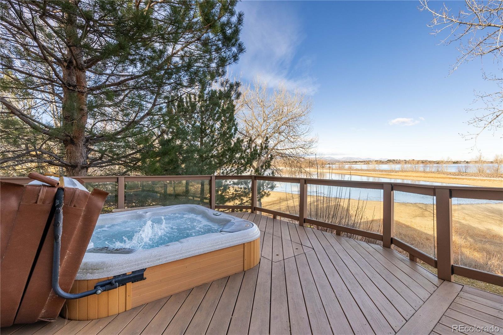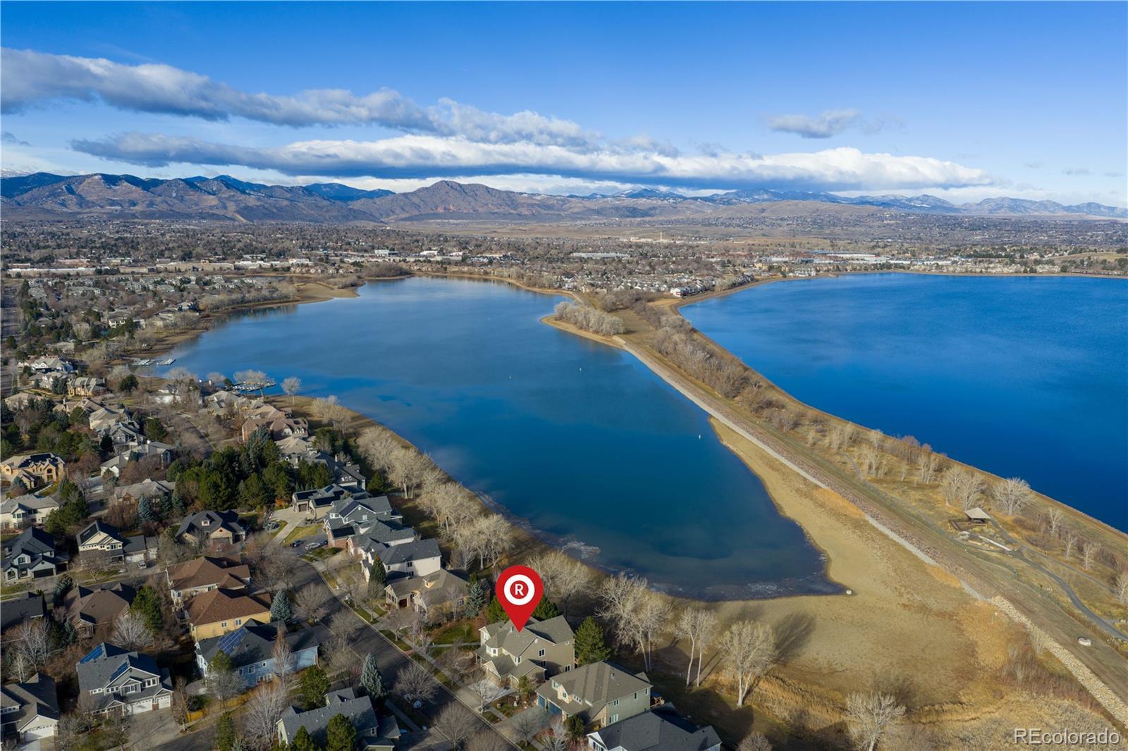 Set directly along Bowles Reservoir with Marston Lake and sweeping mountain views beyond, this exceptional Littleton residence offers lakefront living in a picture-perfect setting. A gorgeous front exterior and welcoming porch lead into a grand foyer. To the right, a formal living room with gas fireplace invites quiet gatherings, while an office with built-in bookshelves provides a refined work-from-home space. A formal dining room creates the perfect space for hosting. The heart of the home opens into a stunning family room and kitchen designed for entertaining. The kitchen features brand new never-used high-end appliances, granite countertops, an island with breakfast bar, eat-in area, and sliding doors to a deck offering stunning lake and mountain views for seamless indoor-outdoor living. The family room offers a second gas fireplace, built-in shelving, and access to an additional deck. A large laundry room and half bath complete the main level. Upstairs, the luxurious primary suite boasts vaulted ceilings, a gas fireplace, custom walk-in closet, attached office/flex room, and spa-like five-piece bath. Four additional bedrooms complete the level—two sharing a Jack-and-Jill bath and two with private en-suites. The walk-out basement with private entrance provides incredible flexibility with a full second kitchen, laundry, living area, bedroom, full bath, and patio access—great for guests or potential multi-generational living. The yard offers exceptional privacy with open space to the north, mature trees to the south, and unbeatable lake and mountain views. Additional features include hail-resistant roof, Pella windows, 2 AC units, 2 water heaters, and an attached three-car garage. Enjoy kayaking, a fantastic community, and the Grant Ranch lifestyle with clubhouse, pool, pickleball, tennis, trails, and a community center overlooking the water. Don't miss out on this rare blend of lakefront serenity, elevated design, and an exceptional luxury lifestyle!