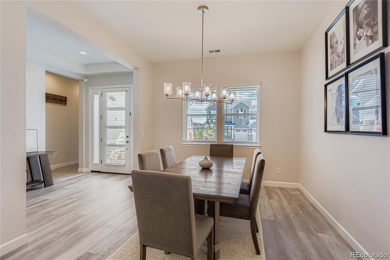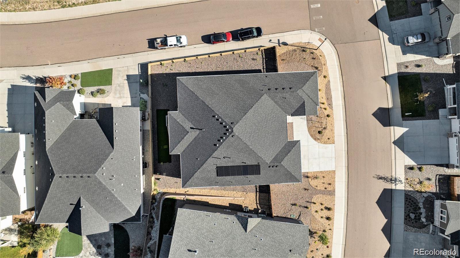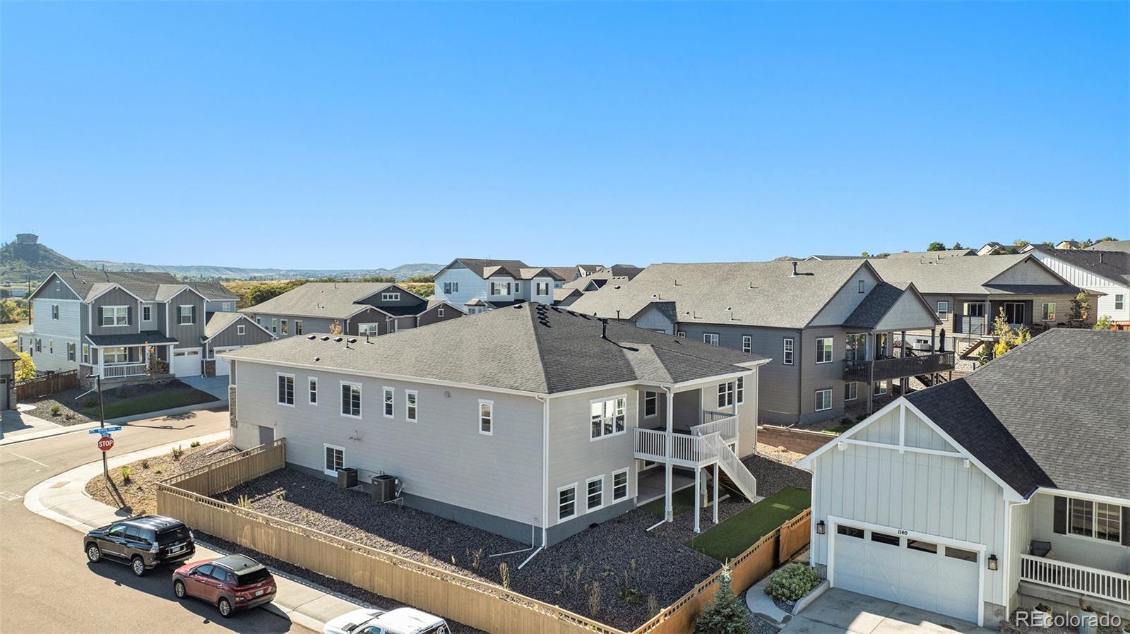 Impressive 2024-built ranch-style home offering 5 bedrooms, 4 bathrooms, 3-car garage and daylight finished basement. The newly installed solar system will be paid off by the seller at closing, providing added value and energy efficiency. A covered front porch welcomes you into an inviting foyer and elegant formal dining room, seamlessly flowing into a spacious great room highlighted by a contemporary fireplace. The gourmet kitchen features a large quartz center island, walk-in pantry, and stainless-steel appliances, including a cooktop, dishwasher, disposal, double electric wall ovens with built-in microwave, range hood, washer and dryer, main kitchen refrigerator, and an additional refrigerator in the basement kitchenette. The generous breakfast nook opens to a covered deck, perfect for outdoor dining and relaxation. The primary suite offers a spacious walk-in closet and a private five-piece bath. The main level also includes two secondary bedrooms with a shared full bath, along with a convenient laundry room, mudroom, and powder room. An open staircase leads to the daylight finished basement, featuring a large recreation room with kitchenette, two additional bedrooms with walk-in closets, a shared bathroom, and an expansive open area ideal for a game room, media space, or home gym. An unfinished room provides ample storage or workshop potential. The home located near shopping, the Castle Rock Outlets, and with easy access to I-25, this home combines modern comfort, thoughtful design, and an exceptional location.