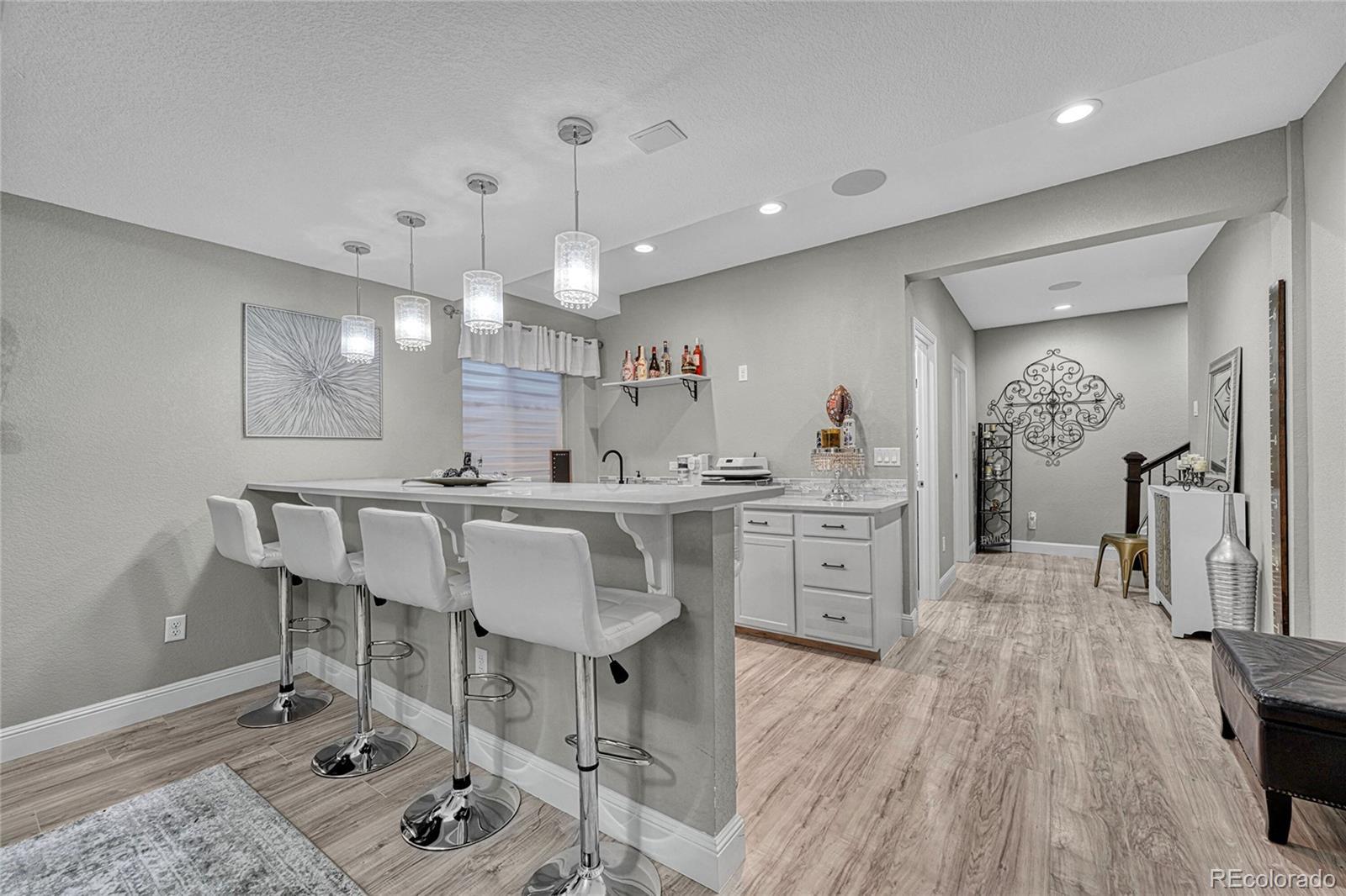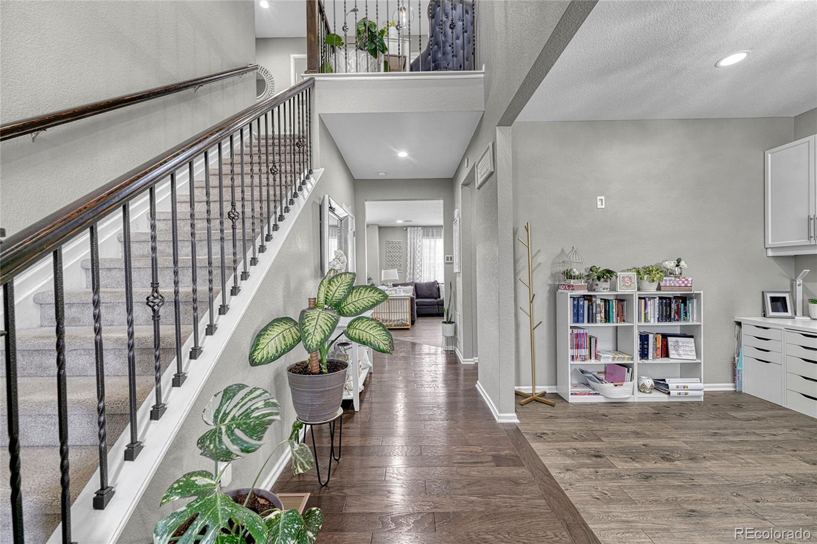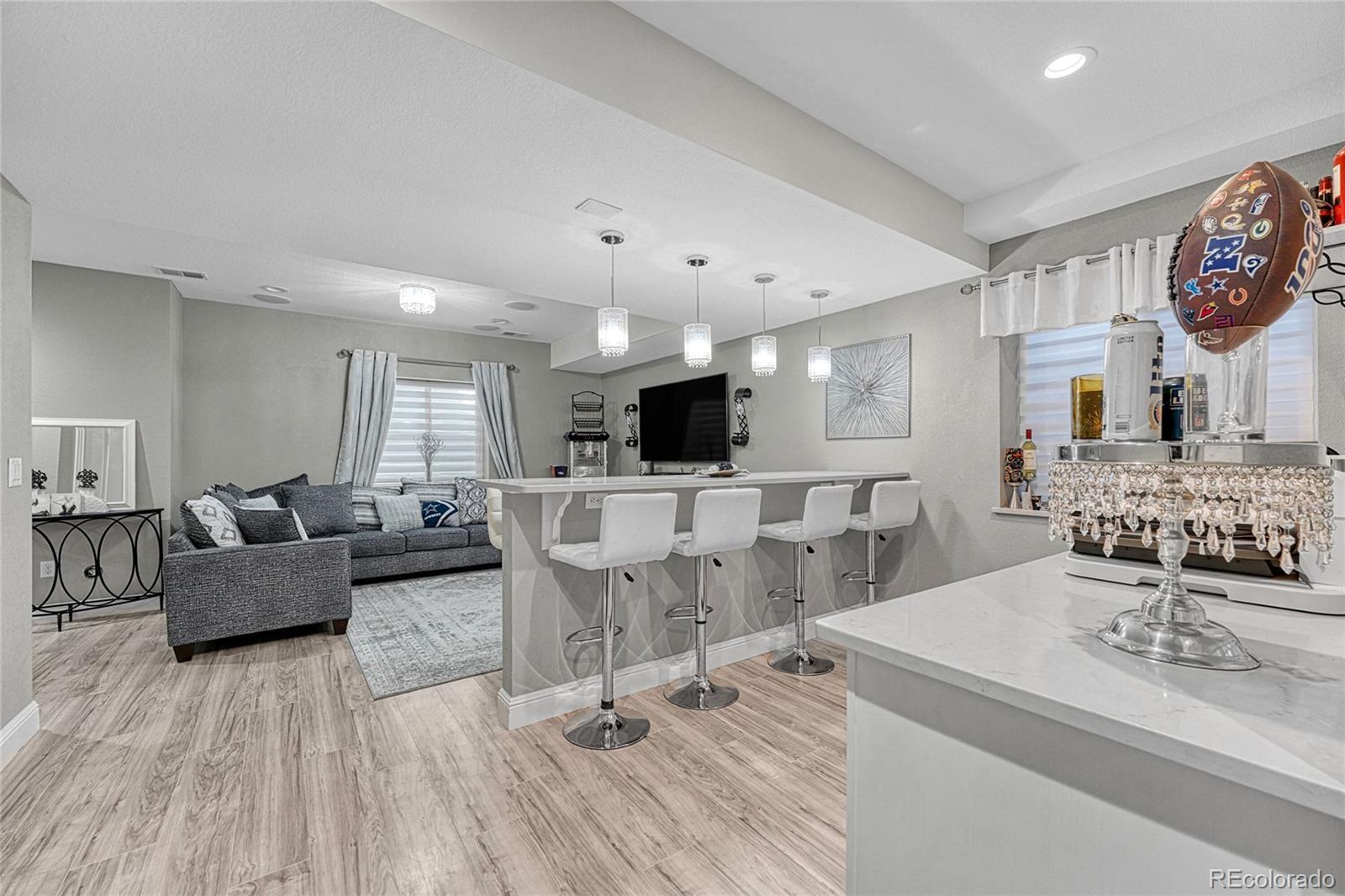 An exceptional home that truly stands out. This stunning two-story residence offers 5 bedrooms and 3.5 bathrooms with a beautiful and functional layout. A grand entryway with stunning stair-rails welcomes you. An office just off the entrance that is perfect for working from home. The main level features a spacious living room and a beautiful kitchen desisgned for everyday living and entertaining. The finished basement includes a living room area, wet bar, bedroom, bathroom and two storage rooms, offering incredible versatility. Enjoy a very large backyard ideal for gatherings and play. Recent upgrades include a new roof and exterior paint (2025) and a remodeled primary bathroom. Seller is a licensed real estate agent in the State of Colorado.