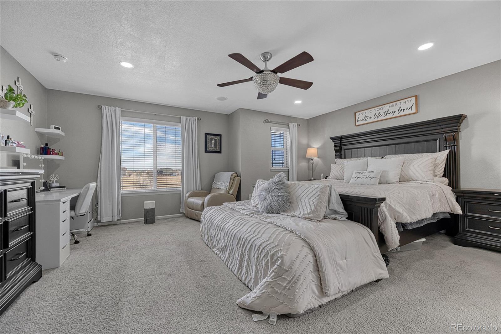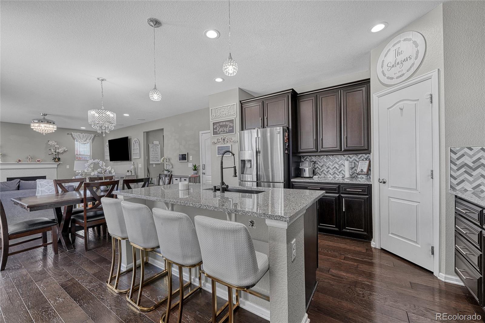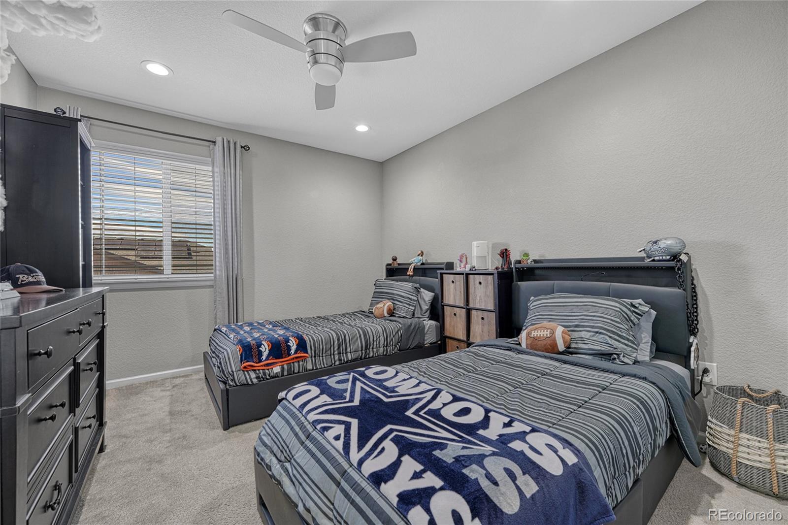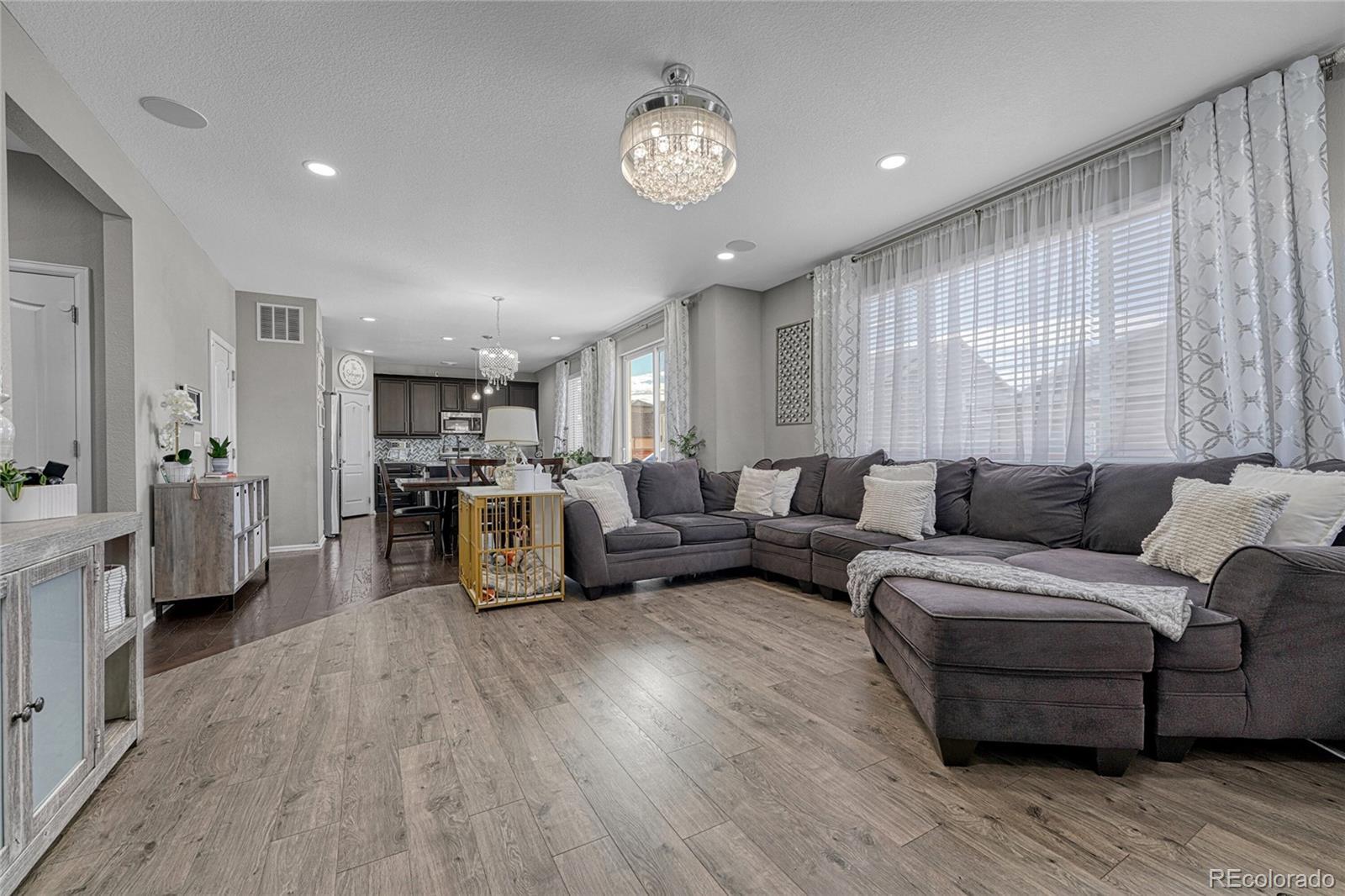 An exceptional home that truly stands out. This stunning two-story residence offers 5 bedrooms and 3.5 bathrooms with a beautiful and functional layout. A grand entryway with stunning stair-rails welcomes you. An office just off the entrance that is perfect for working from home. The main level features a spacious living room and a beautiful kitchen desisgned for everyday living and entertaining. The finished basement includes a living room area, wet bar, bedroom, bathroom and two storage rooms, offering incredible versatility. Enjoy a very large backyard ideal for gatherings and play. Recent upgrades include a new roof and exterior paint (2025) and a remodeled primary bathroom. Seller is a licensed real estate agent in the State of Colorado.