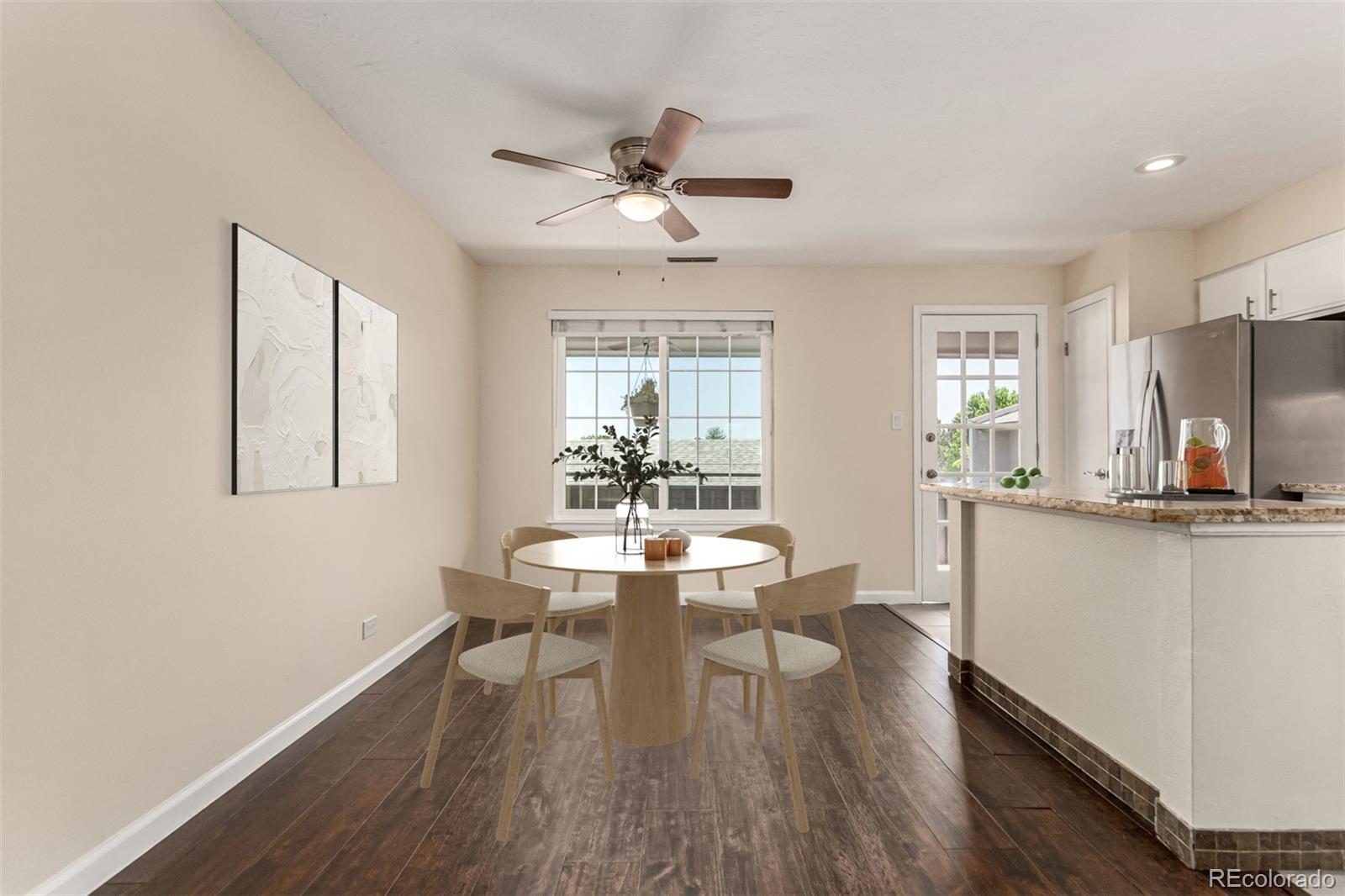 Make this well-appointed top floor corner unit condo, steps from The Streets of SouthGlenn, yours today! Updated, easy to maintain, wide plank flooring in the generously sized living room and dining room. Very open kitchen that most of these units don’t have as the typical setups are two sets of overhead cabinets. The kitchen also features slab granite counter tops and updated stainless steel appliances. All newer energy efficient windows, new roof in June 2025 and a freshly re-finished bathtub. Recessed dimmable lighting installed throughout unlike most units that have no installed lights. New storm door installed in June 2025. The upper floor corner location is perfect for a lack of neighbors, especially those above! Tons of natural light and usable outdoor space featuring a freshly painted porch area and large breezy back balcony. Super convenient in unit stackable washer and dryer and central AC! Secure storage unit included, located in building X, for all of your extra stuff. The reserved parking lot space # 390 is just across from the mail boxes and there is ample off street parking right in front of the building. Numerous desirable amenities and expenses covered by the HOA include the Glenn Oaks Community Center which offers, secure access to the indoor swimming pool, fitness center, billiards and the clubhouse. The expenses that are covered include gas, exterior insurance, irrigation water, maintenance grounds, exterior maintenance including the roof, snow removal, trash, sewer & water. Just a short walk to The Streets at SouthGlenn with all that it offers like Snooze, Whole Foods, Indulge Wine Bar, the movie theater, the library, coffee shops and tons of other shopping and dining options. There is the gorgeous, landscaped, Commons Park as well! Priced to sell!!