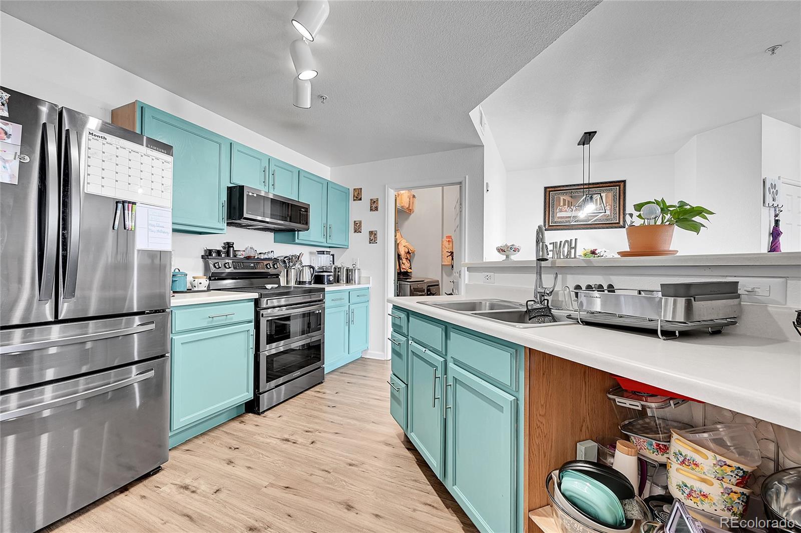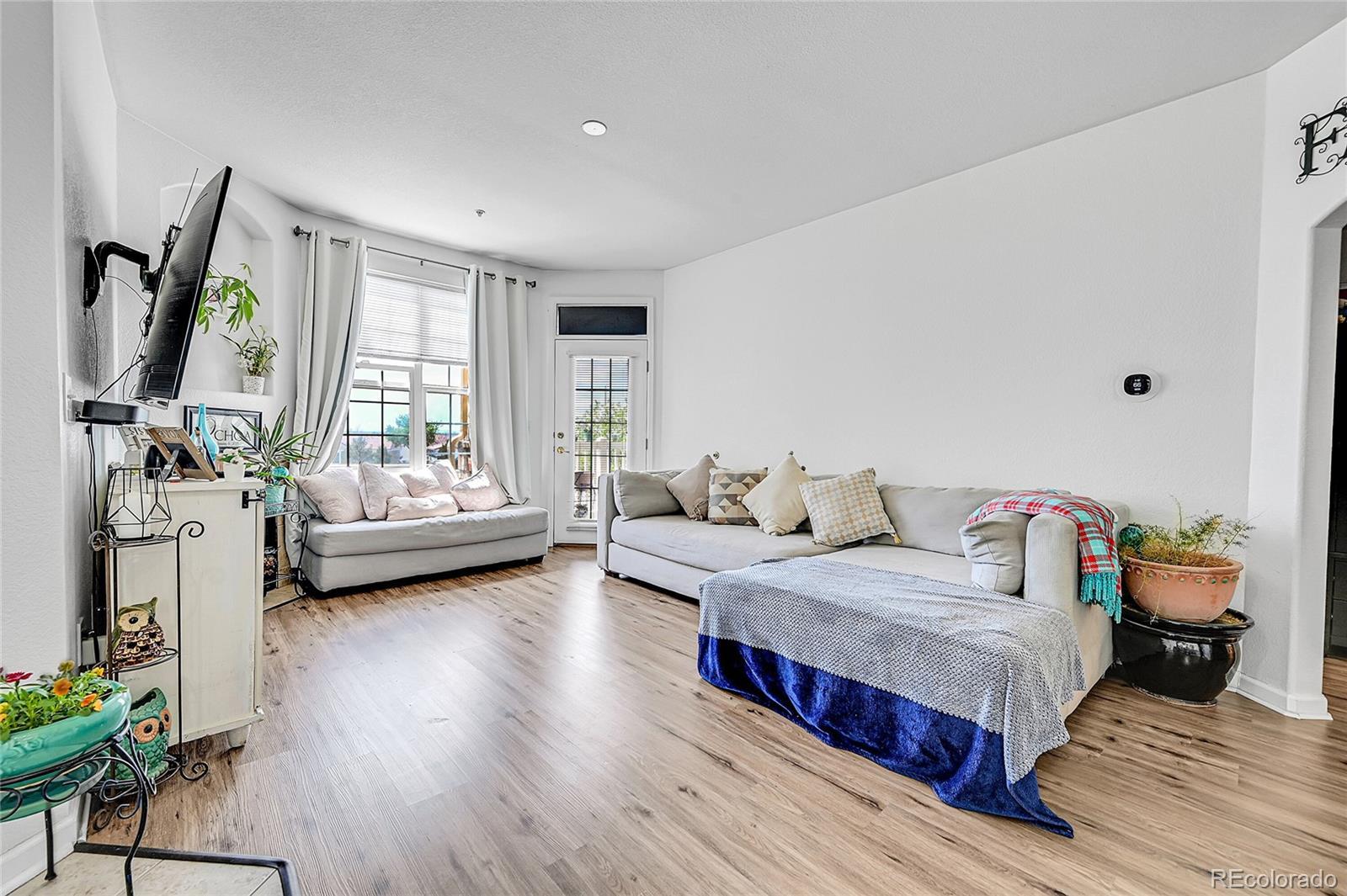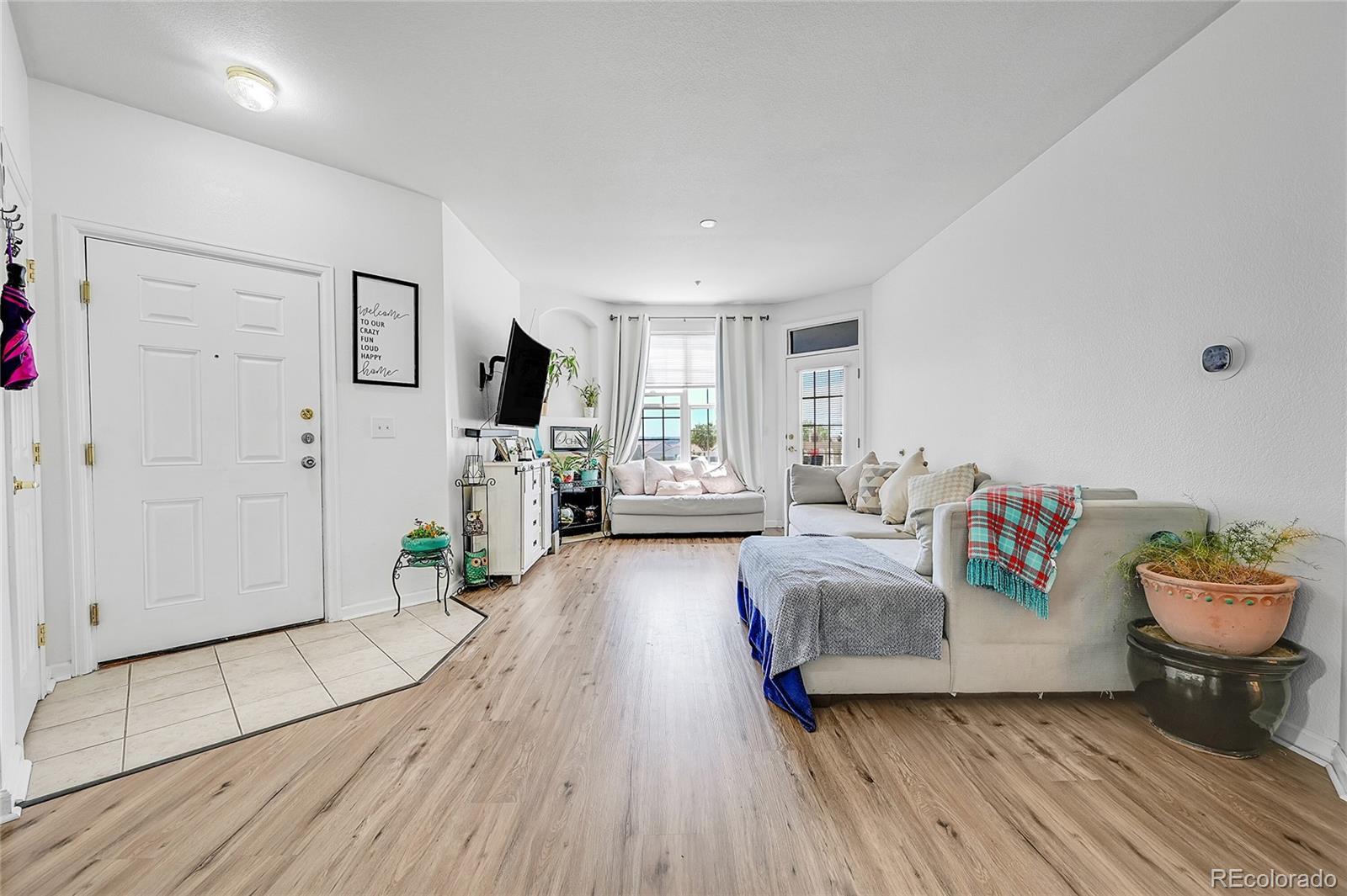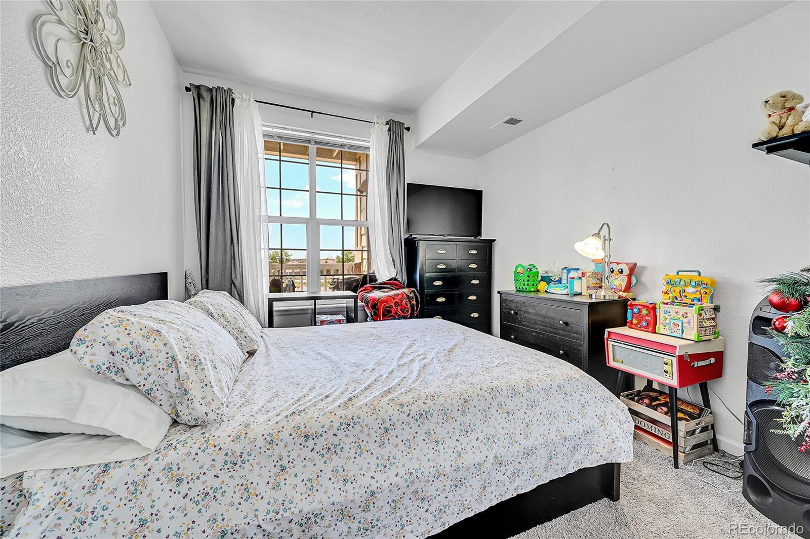 Great 2 bedroom, 2 bathroom condo in Aurora near Green Valley Ranch. This open floor plan home features a bright living room with gas fireplace, dining space and kitchen. Primary bedroom boasts a walk-in closet. Second bedroom with walk-in closet is adjacent to the second full bathroom. In-unit laundry room with washer and dryer included. Relax with your cup of coffee on your private balcony. This gated community has lots of amenities including a clubhouse, 24-hour fitness center, pool, hot tub and playground. Great location with easy access to I-70, E-470, Denver airport, local shops, recreation, public transportation and more! Schedule your private showing today!