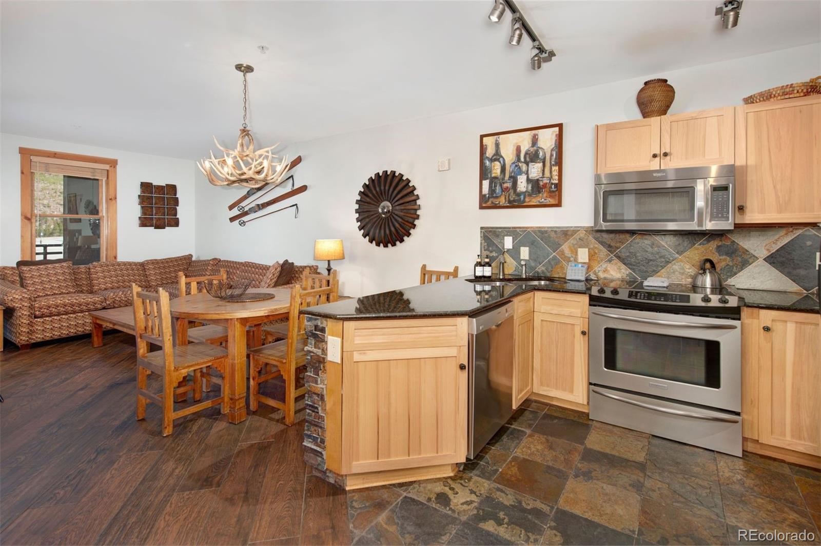 This upgraded corner property offers a large, oversized layout with outstanding westerly (sunset) views as well as beautiful views to the north of the surrounding mountains, covered by fields of aspens. With granite slab counters, stainless steel appliances and slate backsplash in the kitchen, slate surrounds in both baths, custom hand-scraped wood flooring throughout, custom cubbies in the entry as well as dry-stack rock highlights on pop-outs and below the kitchen counters as well as tongue and groove pine walls, no detail has been left out! Furnishings and art work are also all top tier. This condo also offers easy access to the elevator as well as all the amenities Buffalo Lodge has to offer - pool tables in the large lobby area, hot tubs and the pool in Dakota Lodge. Also, since Buffalo Lodge is also just a short 5 minute walk to the ski slopes, this property truly has everything one could want in a ski resort property.